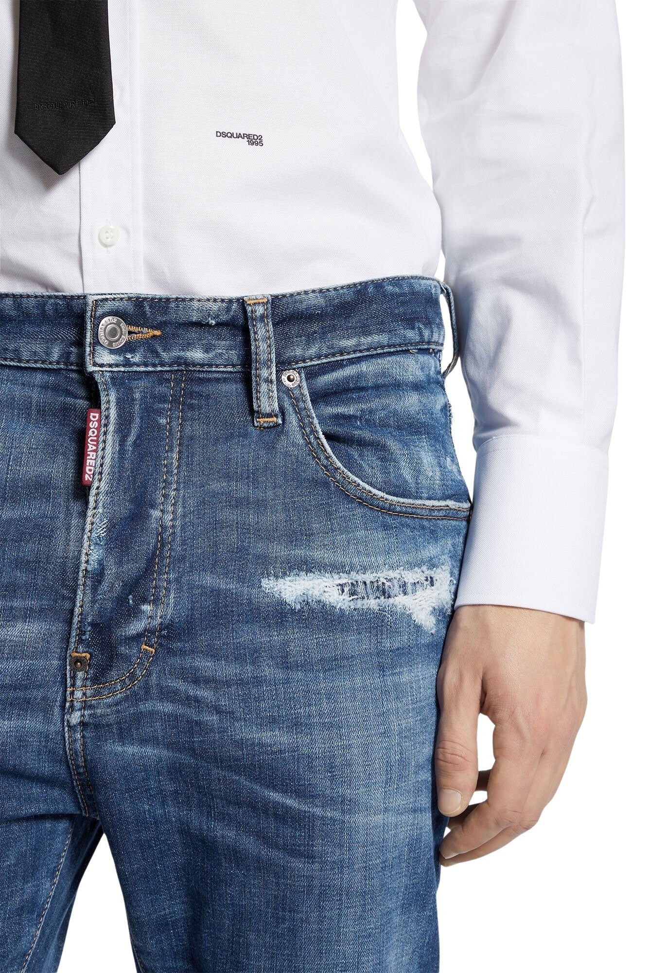 Jeans til herre fra Dsquared2. Laget i behagelig stretch-denim med medium blå vask og rett passform. Jeansen har slitte detaljer og den ikoniske røde Dsquared2-etiketten foran og en logopatch bak fullfører designet. Perfekt for en avslappet, stilfull look.