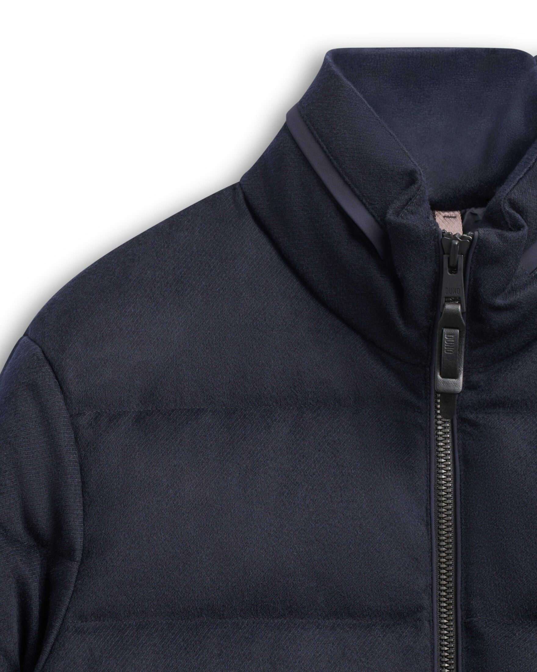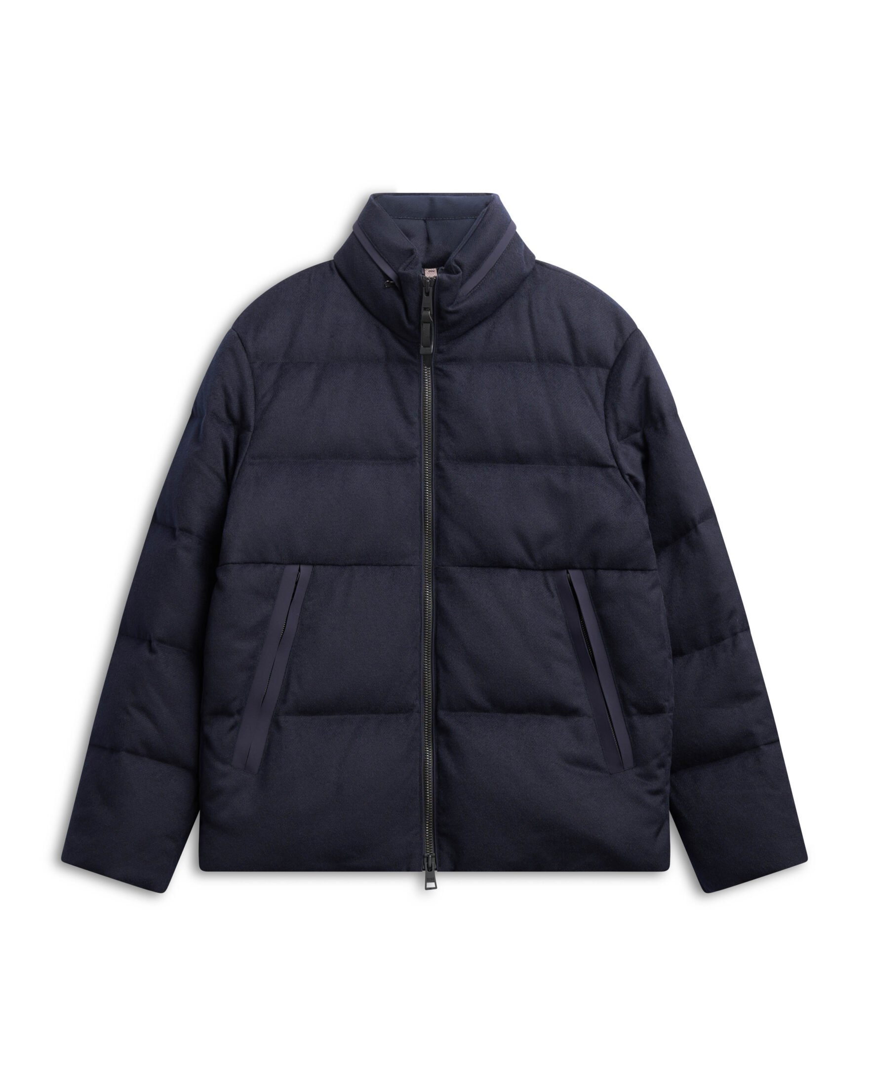 Elegant og funksjonell dunjakke til herre fra Duno i teknisk ull. Lett og myk kvalitet med høy varmeisolasjon. Modellen har stående krage med skjult hette, toveis glidelås og skrålommer med glidelås. Justerbar snøring nederst og innvendige mansjetter i teknisk strikk gir optimal komfort. Praktiske innerlommer fullfører det moderne designet.