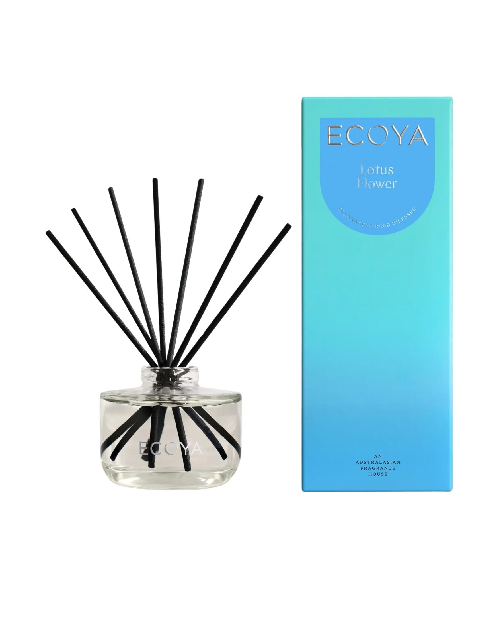 Reed Diffuser Lotus Flower fra Ecoya. En elegant duftspreder som fyller rommet med en ren og sofistikert duft over lang tid. Duften åpner friskt med sitron og bergamott, før den går over i florale noter av lotusblomst og jasmin, avrundet med patchouli, vanilje og musk. Leveres i en stilren glassflaske med sorte duftpinner og passer perfekt som en dekorativ detalj i hjemmet.