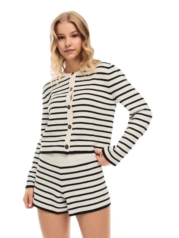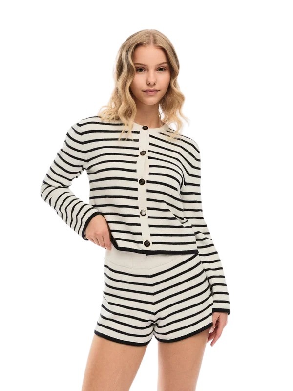 Mari Cotton Shorts fra Ella&il. En tidløs og komfortabel shorts i myk bomull, perfekt for varme sommerdager. Den har en flatterende høy midje og korte ben, kombinert med et klassisk stripemønster som gir et maritimt og stilrent uttrykk. En allsidig bomullsshorts som enkelt styles til både avslappede og mer gjennomførte sommerantrekk.