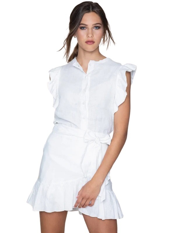 Pauline Linen Shirt fra Ella&il. En feminin og elegant bluse i 100% vevd lin, perfekt til både hverdag og fest. Den har knappelukking hele veien og dekorative volanger på ermene som gir et lett og sofistikert uttrykk. En stilren linbluse som enkelt kan styles med skjørt eller bukser for et gjennomført antrekk.