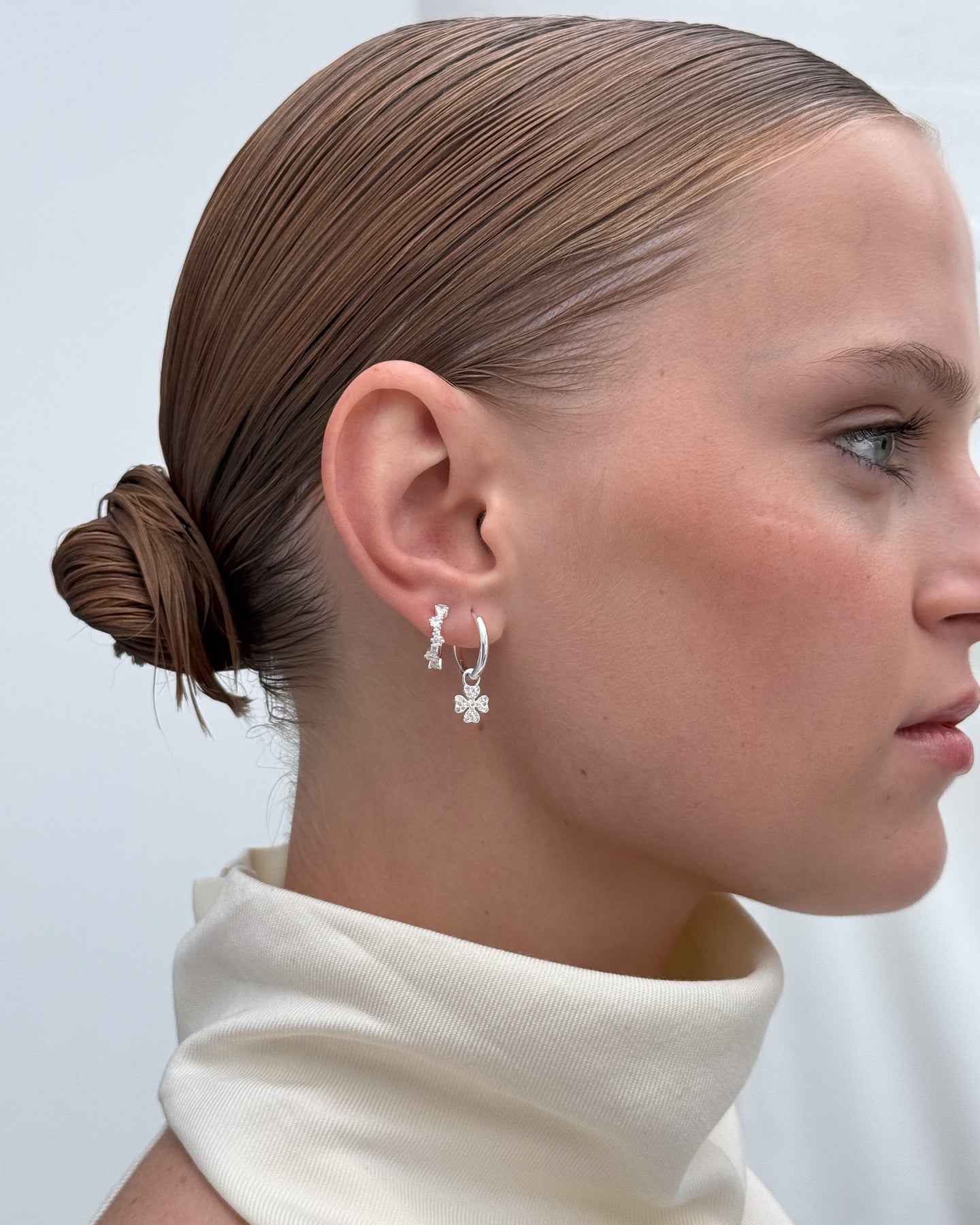 Øreringer i sølv fra Emilia By Bon Dep. Disse elegante øreringene er den perfekte hverdagsfavoritten som gir et tidløst og sofistikert uttrykk til ethvert antrekk. Style den med deres anheng for en fullført look.