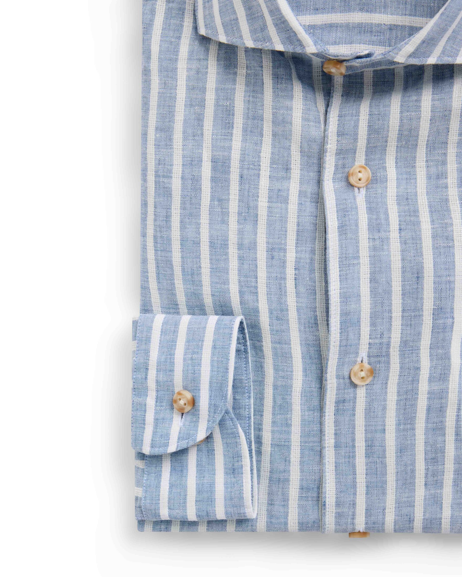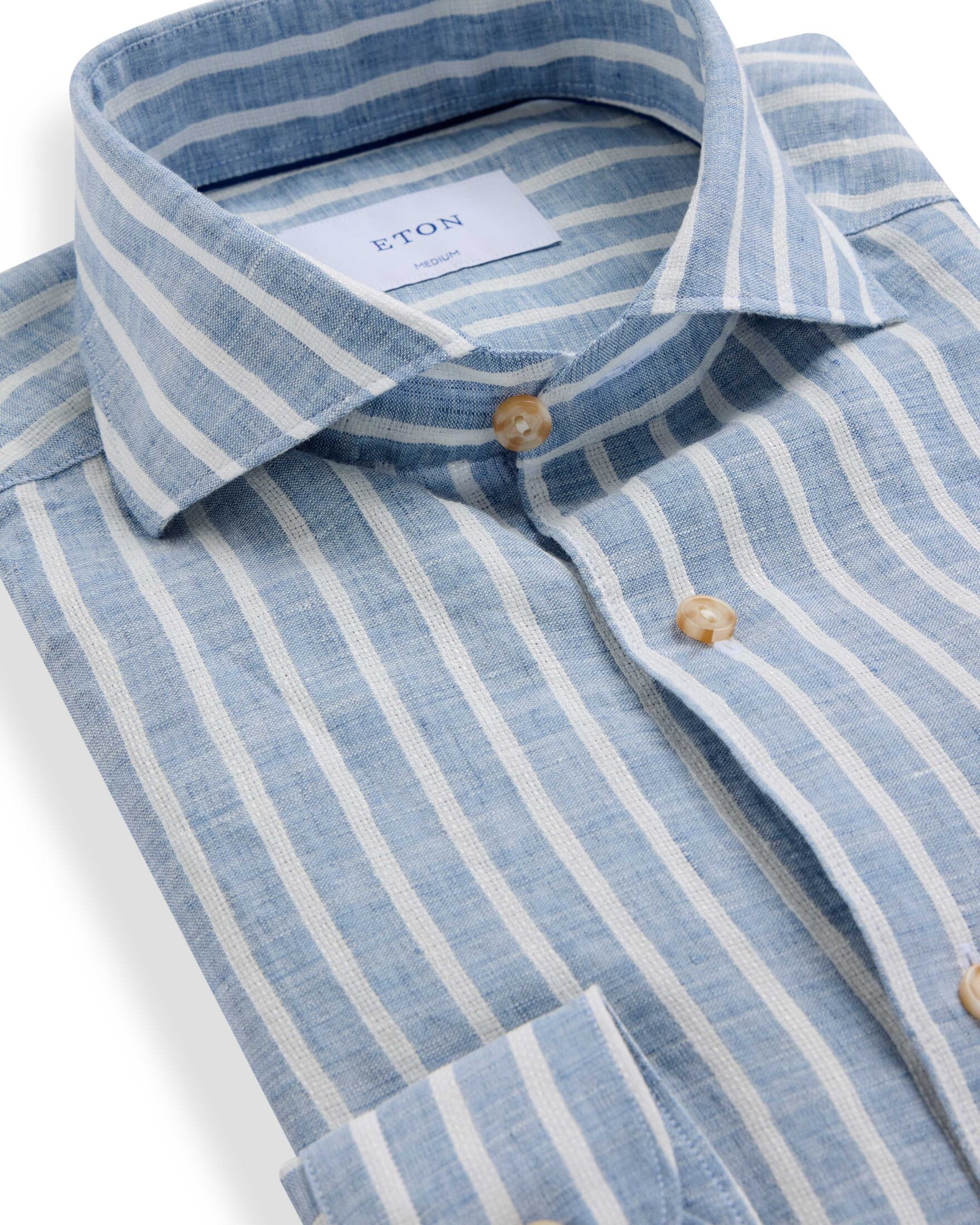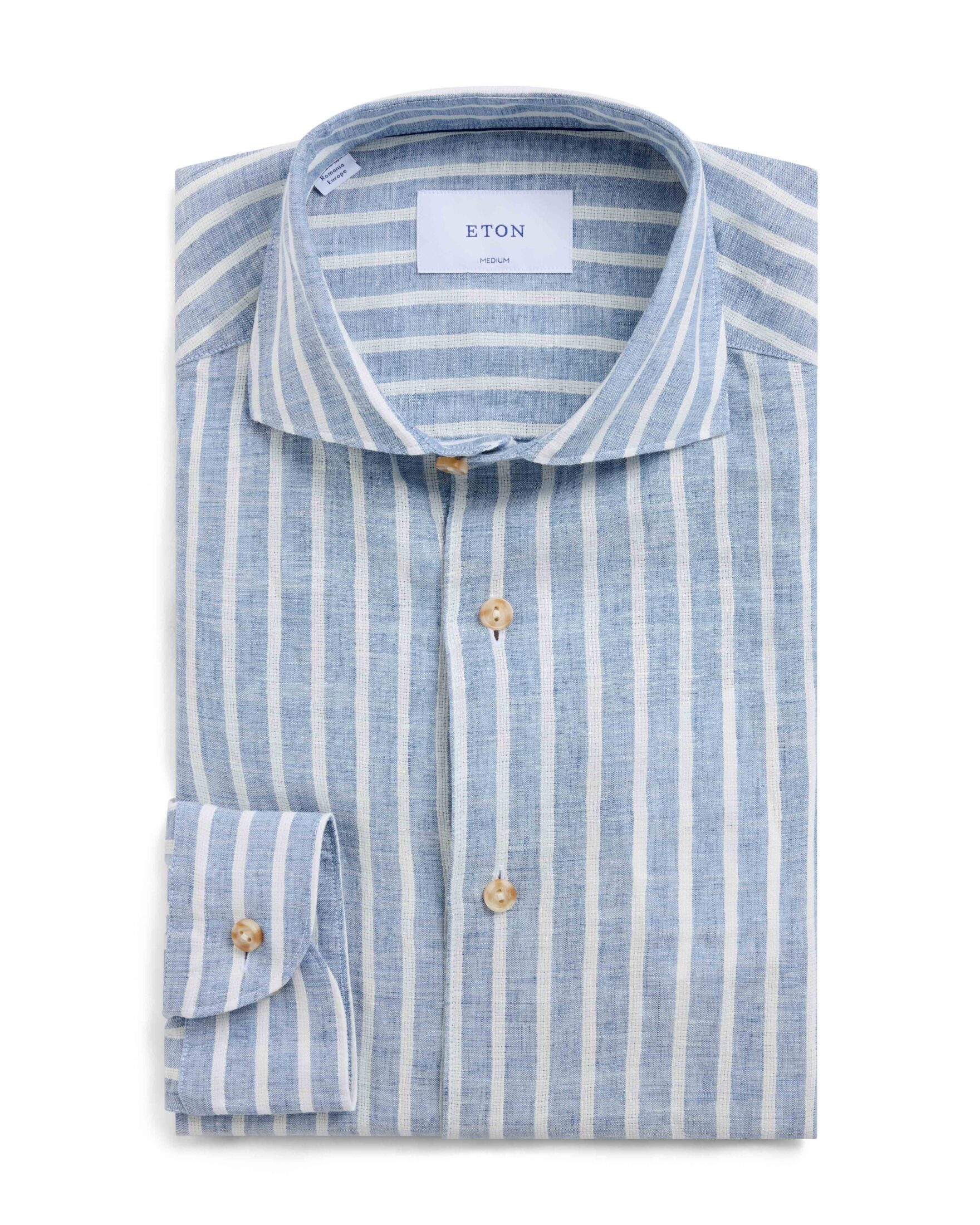Linskjorte til herre fra Eton. En lett og eksklusiv linskjorte vevd hos italienske Albini i 100% premium lin. Det stripemønsteret og strukturerte veven gir et levende og raffinert uttrykk. Stoffet er pustende, temperaturregulerende og vasket for ekstra myk komfort.