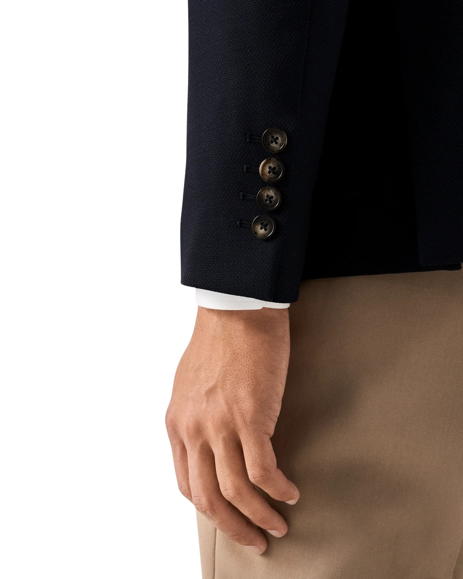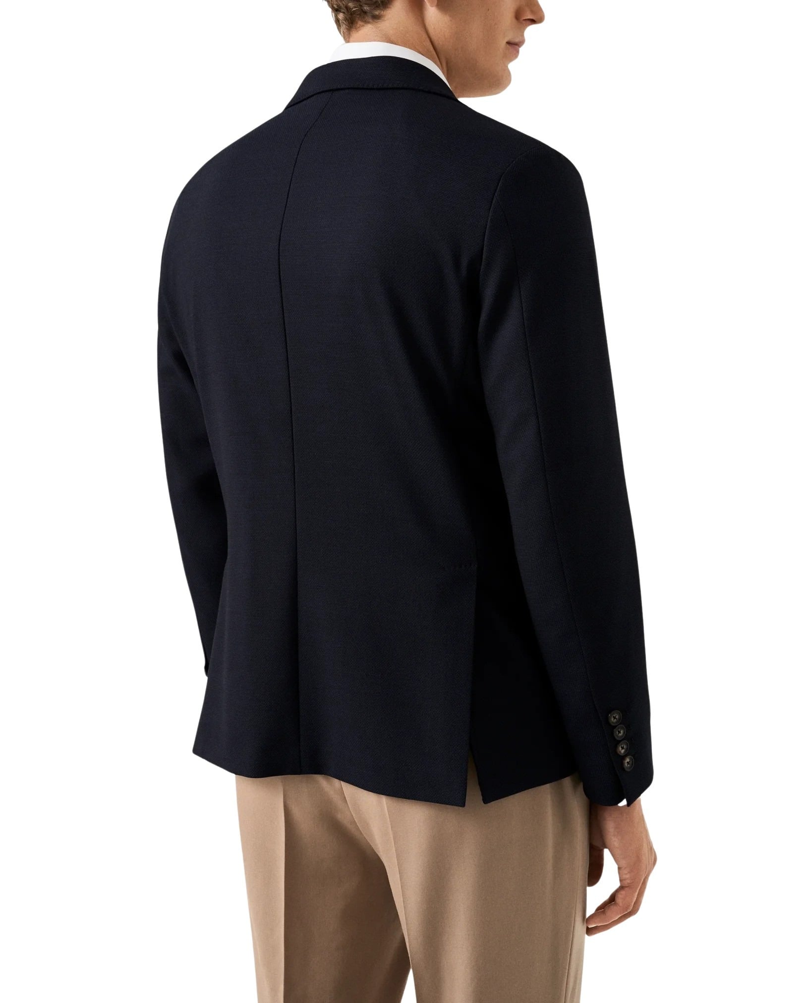Blazer til herre fra Eton. En sofistikert ulljakke som kombinerer komforten fra strikk med et avslappet, men velkledd blazeruttrykk. Det strukturerte hopsack-stoffet i ull med stretch gir god bevegelighet og holder fasongen godt, perfekt for reise og lange dager. Jakken har en elegant, lett innsvinget passform med klassiske slag og er kun fôret i ermene for et naturlig fall.