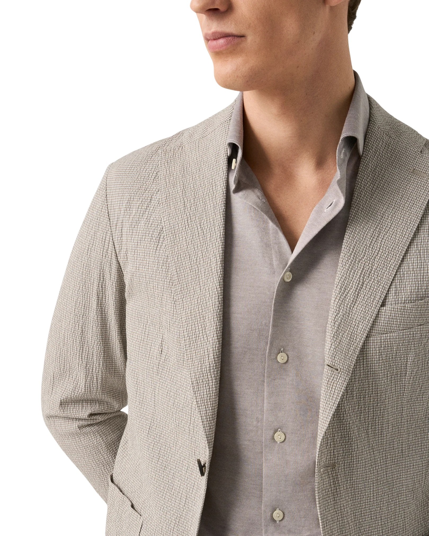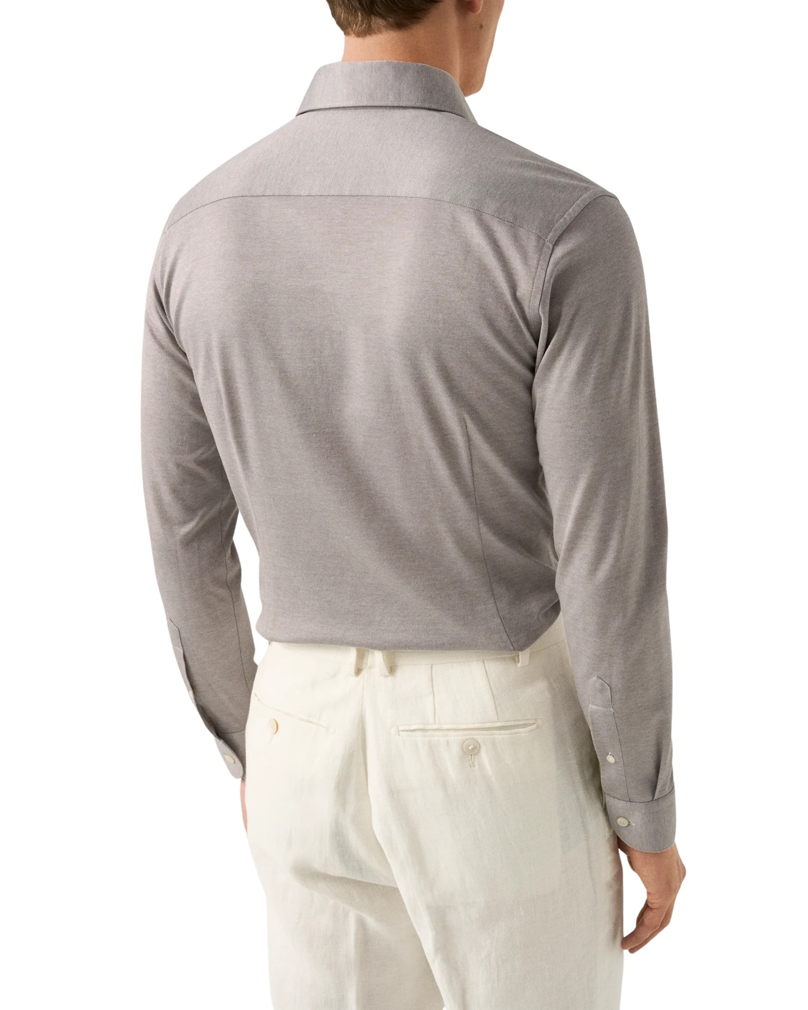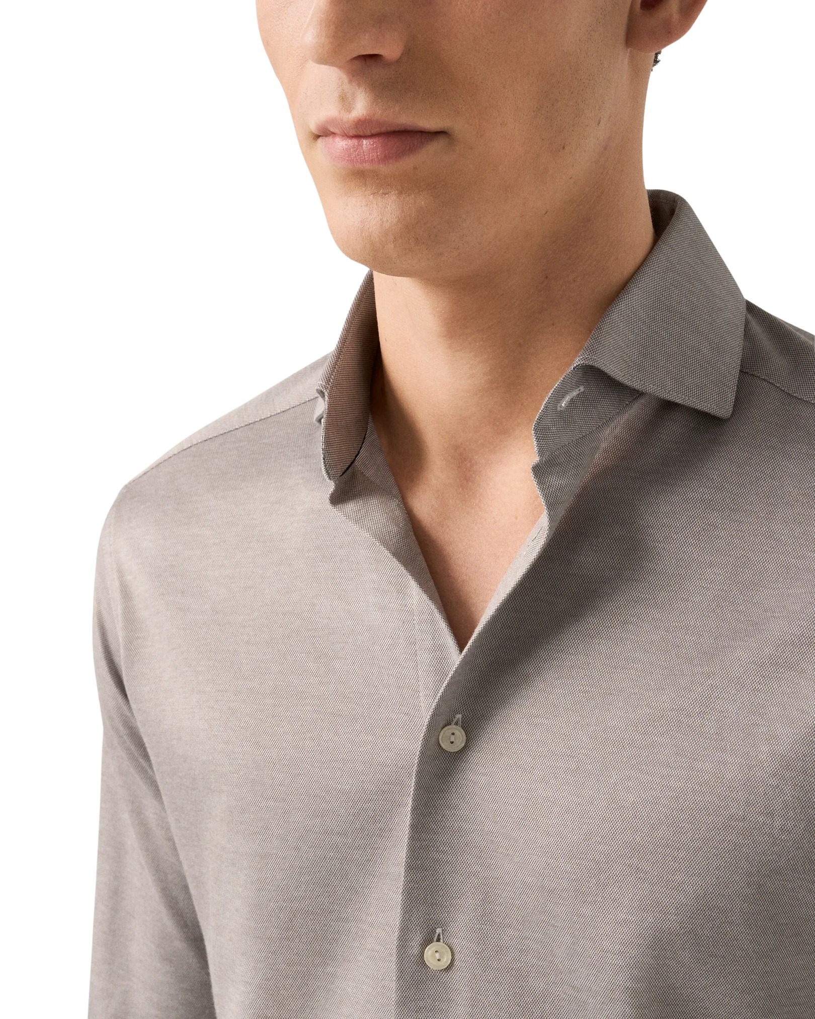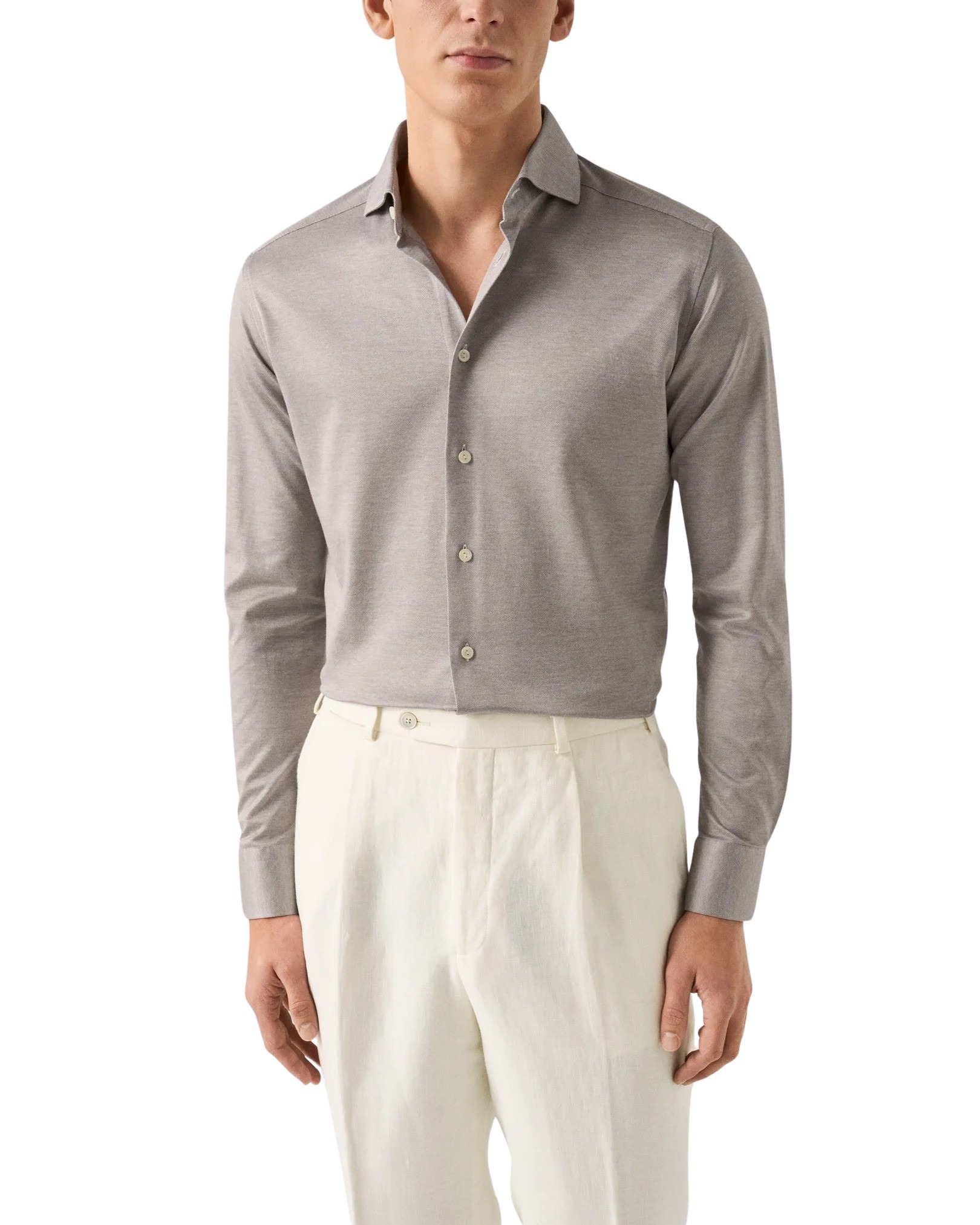 Skjorte til herre fra Eton. En elegant skjorte i eksklusiv Filo di Scozia-bomull som kombinerer komforten fra strikk med det sofistikerte uttrykket til en dresskjorte. Strikket i Italia i en raffinert jacquardstruktur som gir stoffet en silkemyk følelse, flott glans og høy slitestyrke. Et perfekt valg for deg som ønsker maksimal komfort uten å gå på kompromiss med stilen.