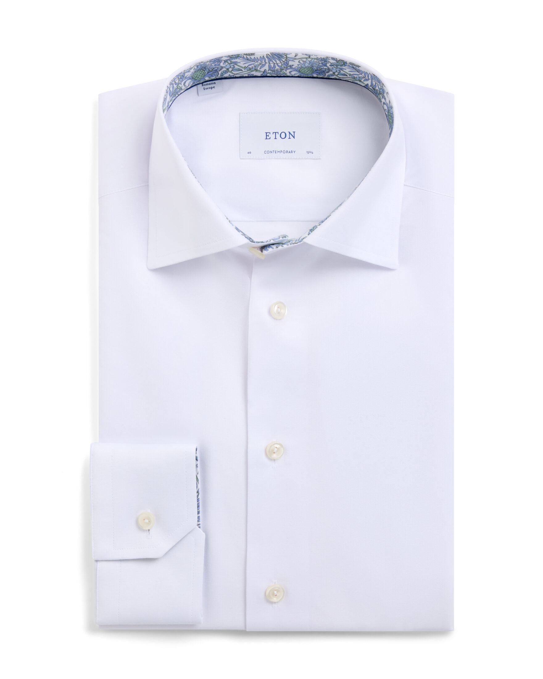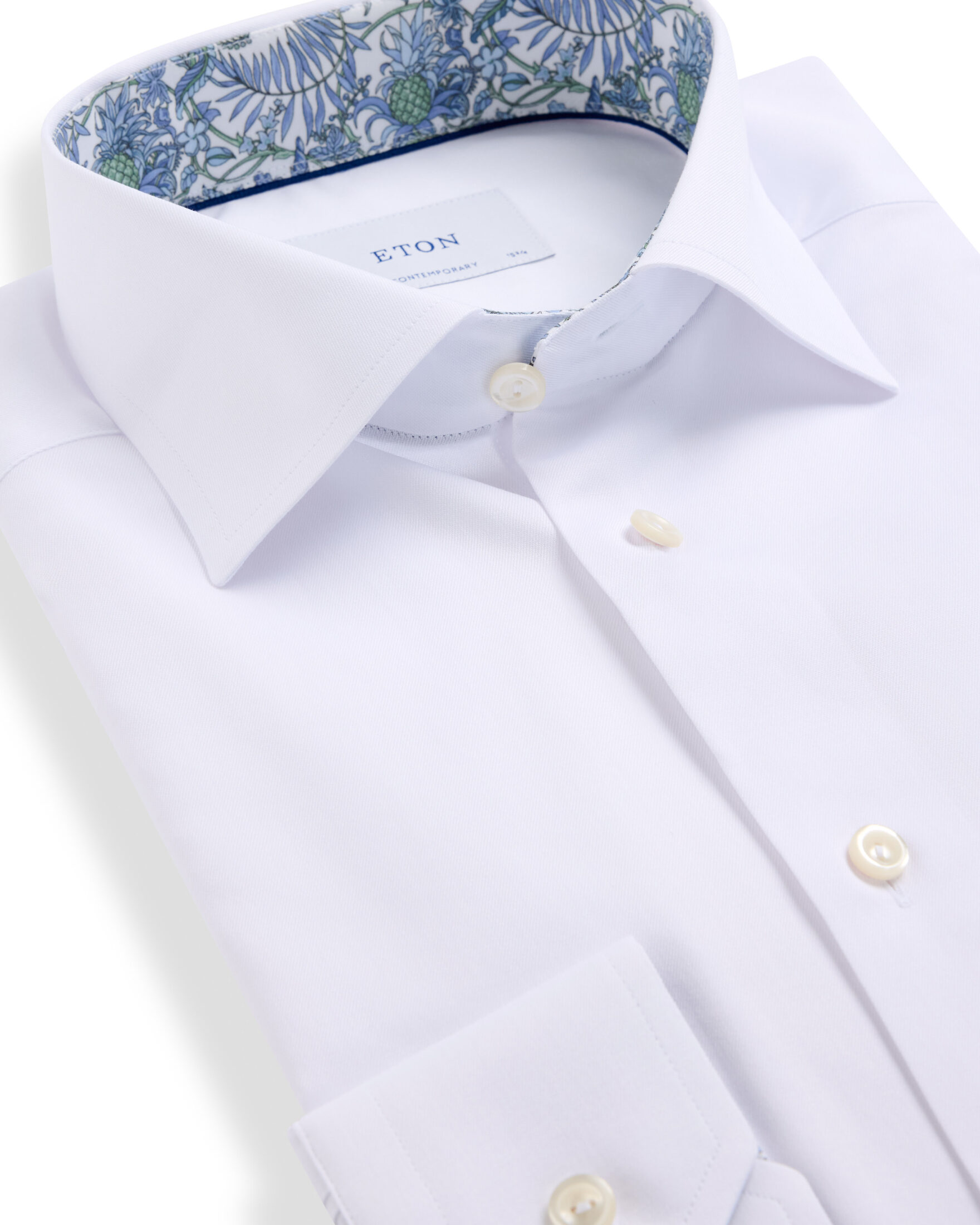 Skjorte til herre fra Eton. Klassisk skjorte i Etons signatur twill, laget av 100% økologisk bomull for en myk og strykefri finish. Diskré blomsterprint på innsiden av krage og mansjetter gir et elegant og personlig preg. En tidløs skjorte med fine detaljer som løfter helheten.