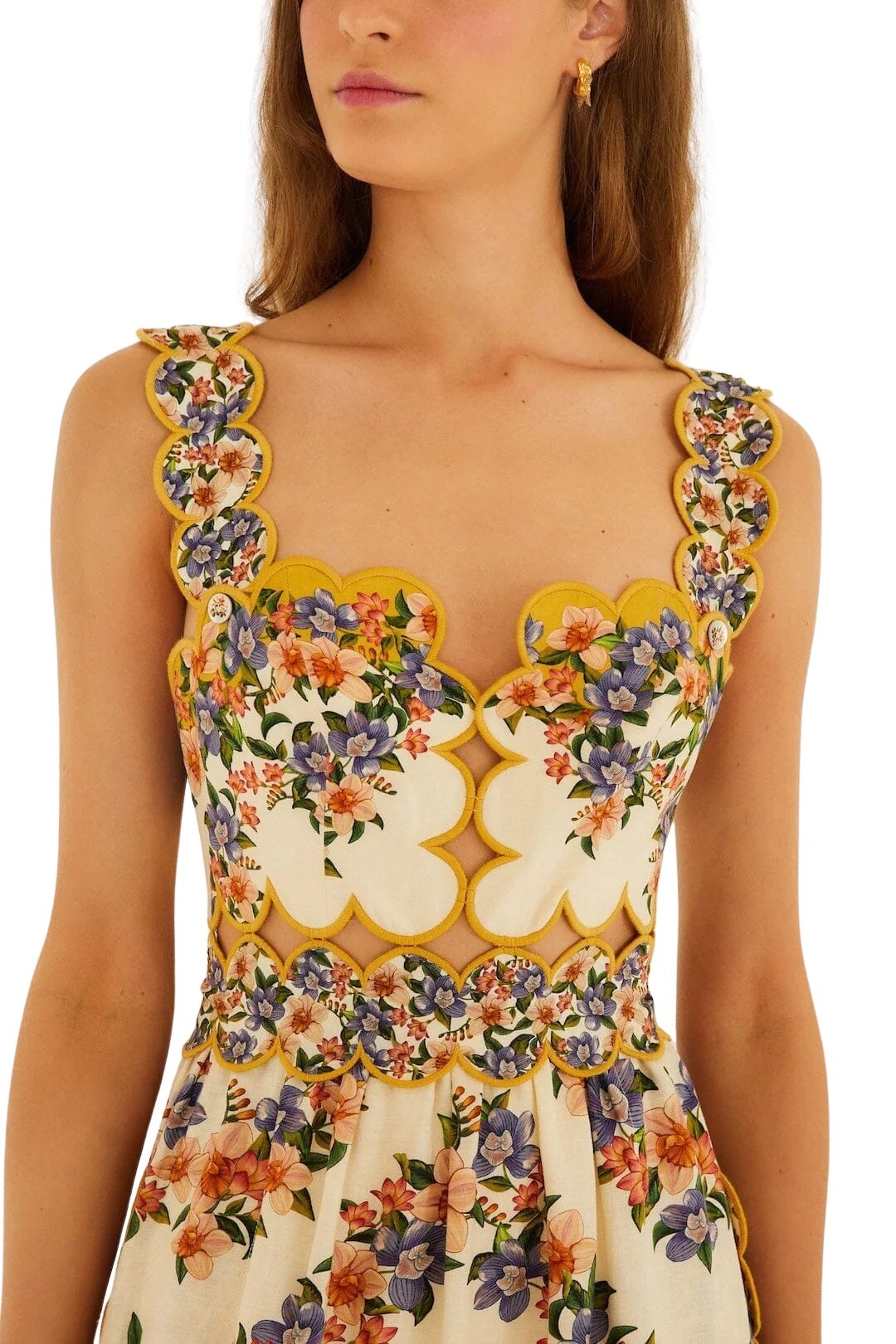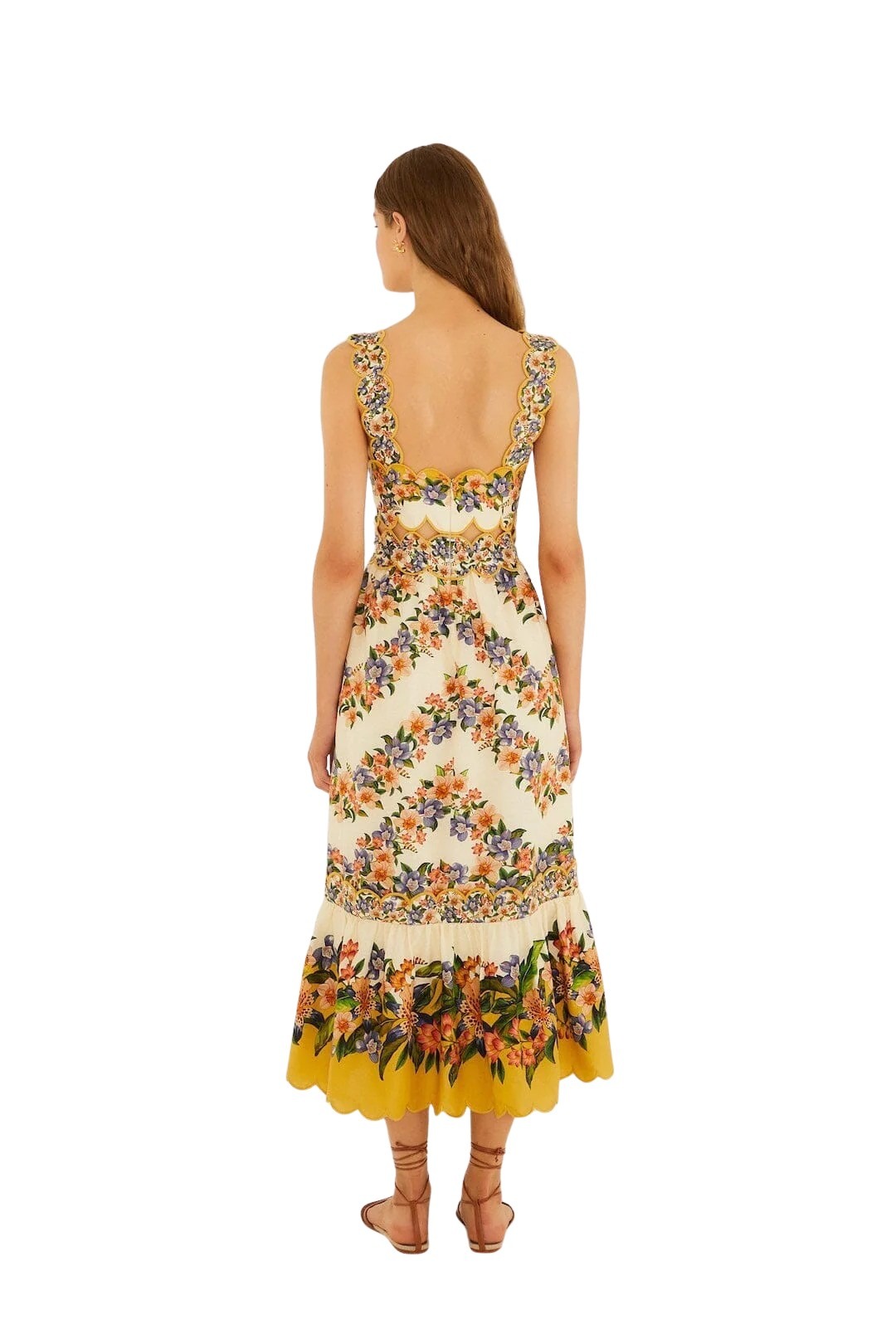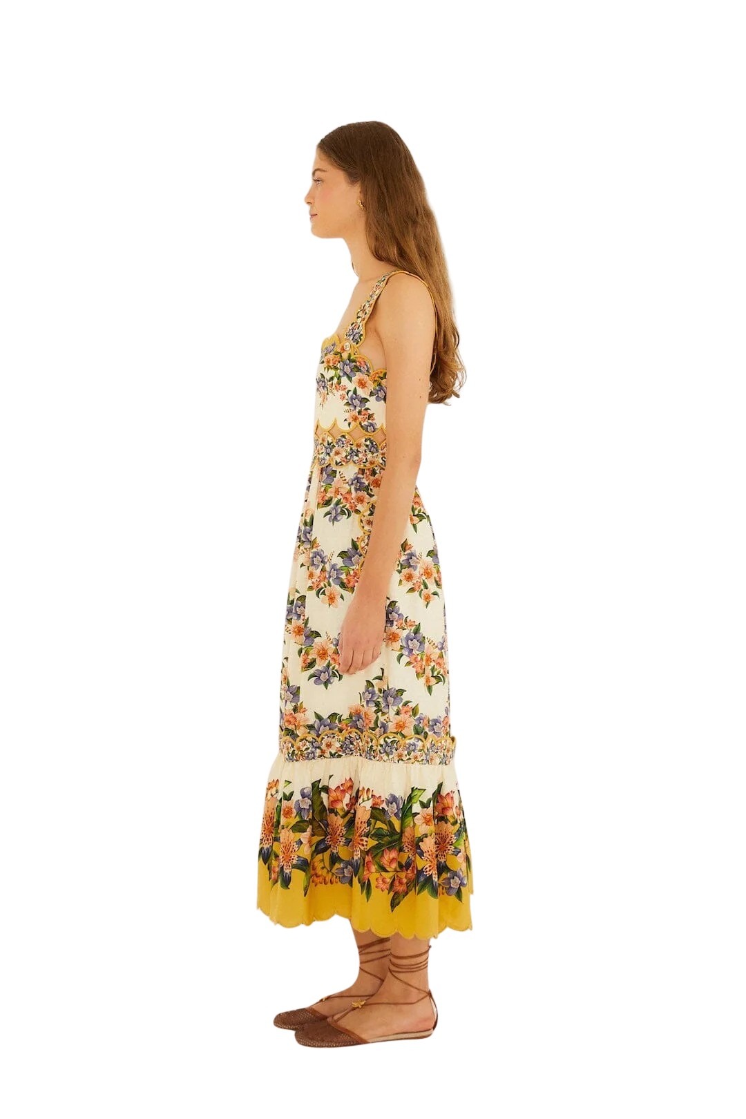 Kjole til dame fra Farm Rio. En feminin midi-kjole med et fargerikt blomsterprint som gir et friskt og sommerlig uttrykk. Den flatterende silhuetten fremhever midjen, mens det luftige skjørtet skaper en lett og elegant bevegelse. Perfekt til solfylte dager. Style med sandaler for en avslappet, men sofistikert look.