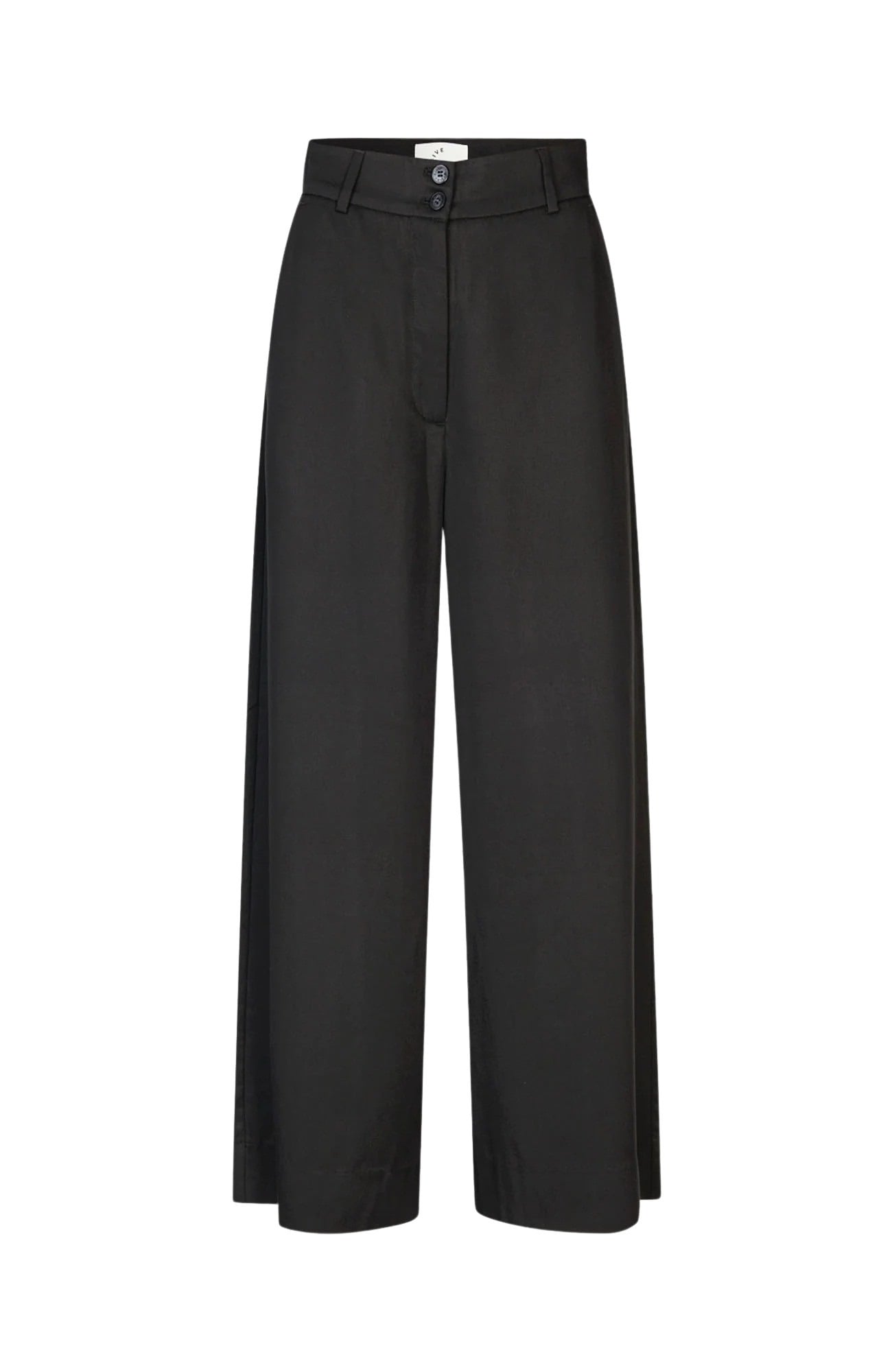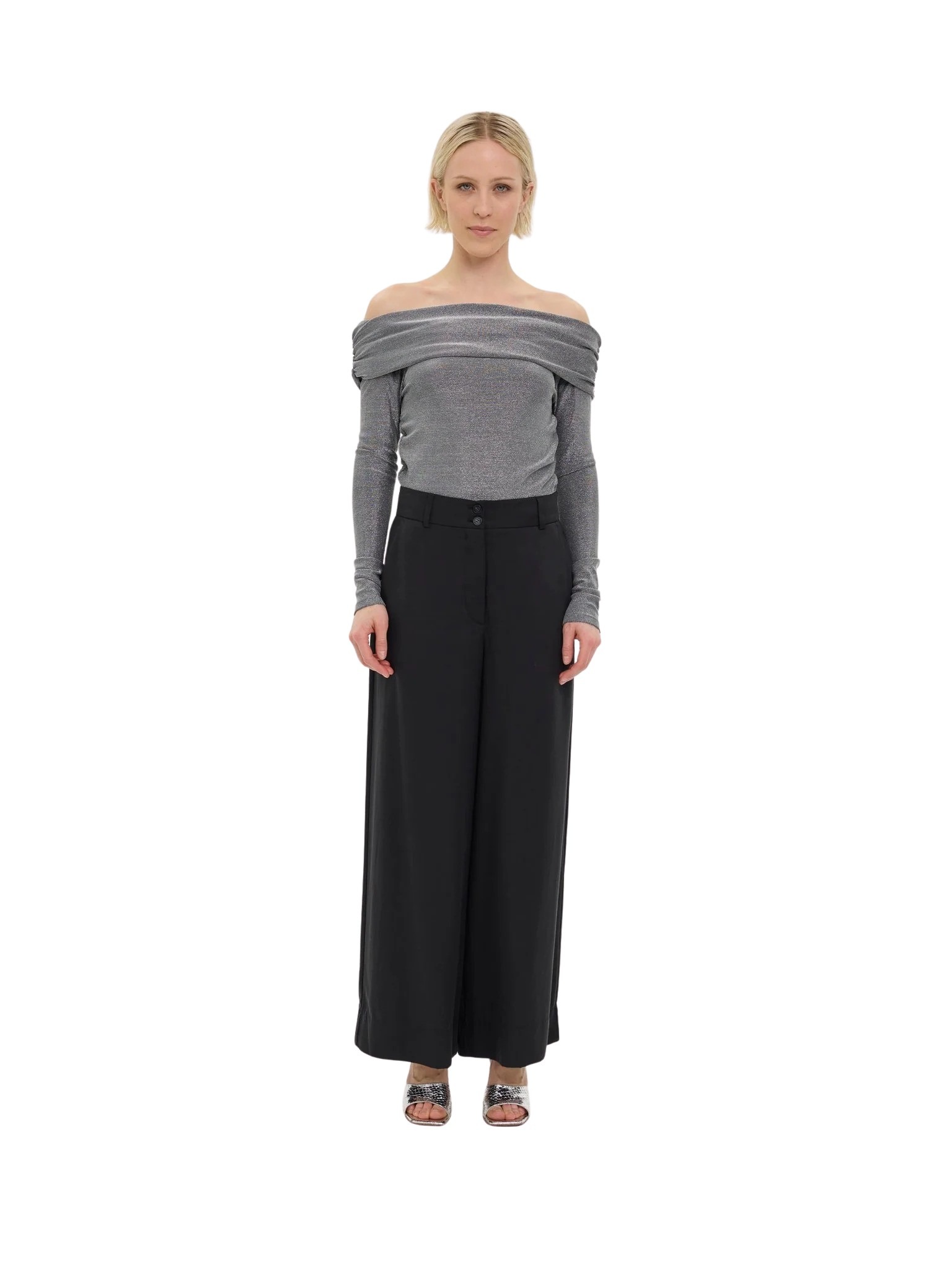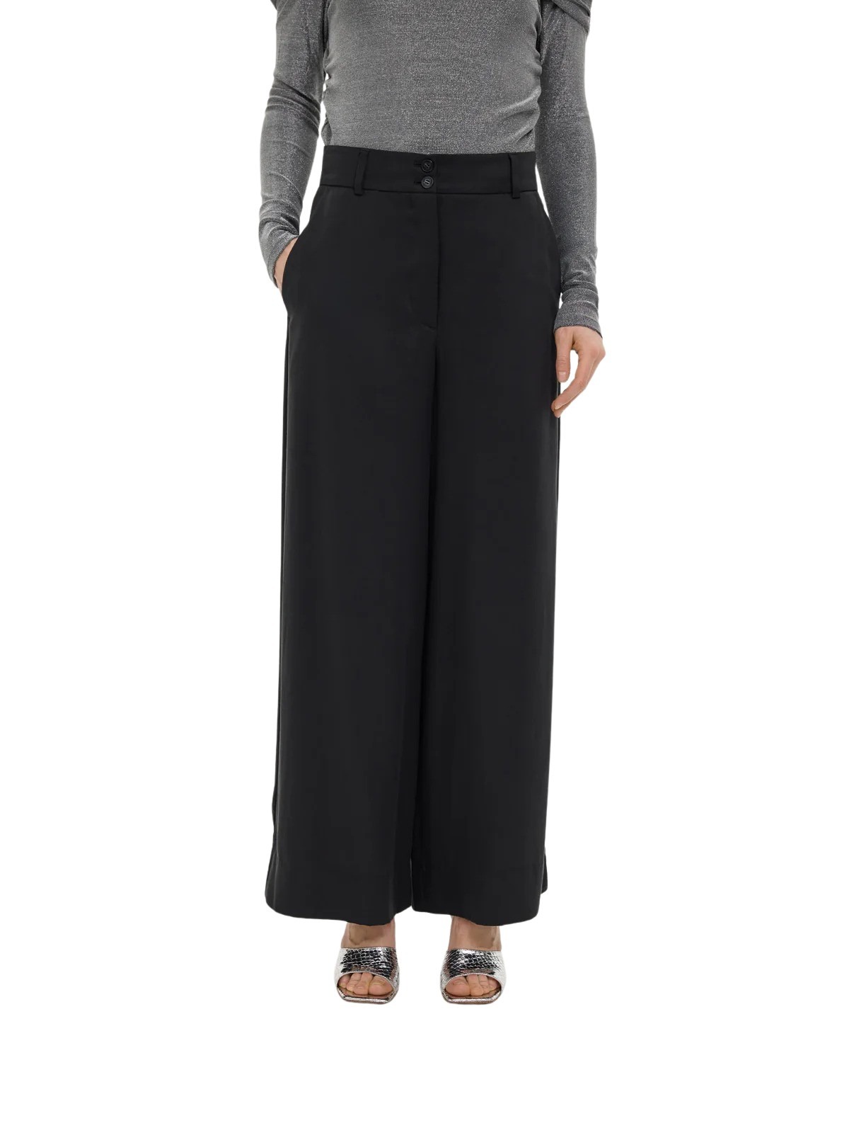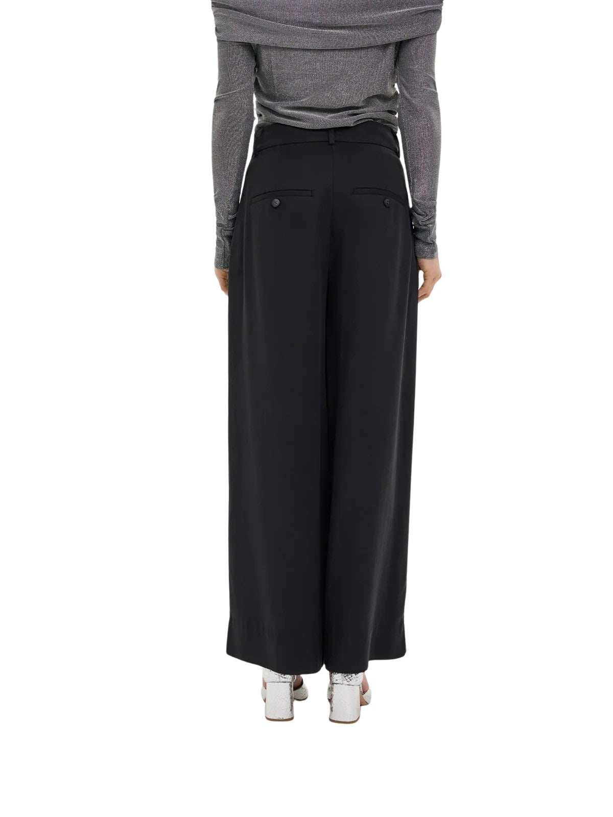 Dressbukser til dame fra Five Units med elegant fall og luksuriøs følelse. Buksen har et høyt liv og vide ben som gir en flatterende silhuett. En allsidig bukse perfekt til jobb, middag og hverdagen.