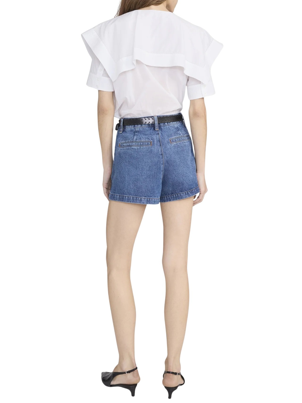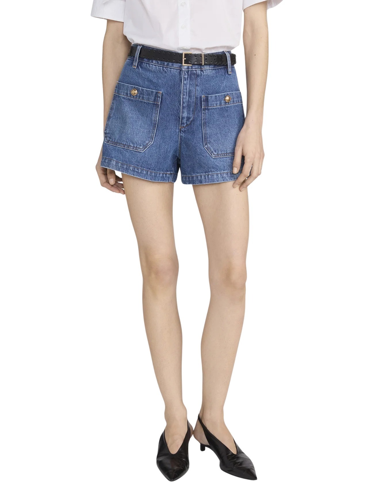 The Cruise Short fra FRAME. Laget i klassisk 100% bomullsdenim og har en ren, sofistikert silhuett. Modellen har stilrene frontlommer som gir et moderne og maritimt inspirert uttrykk. Et sommerlig baseplagg som enkelt kan styles både avslappet og mer elegant.