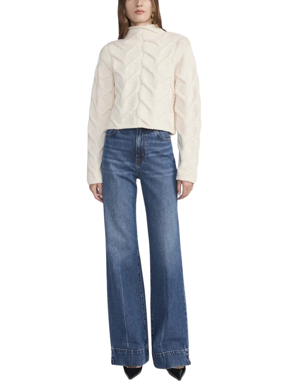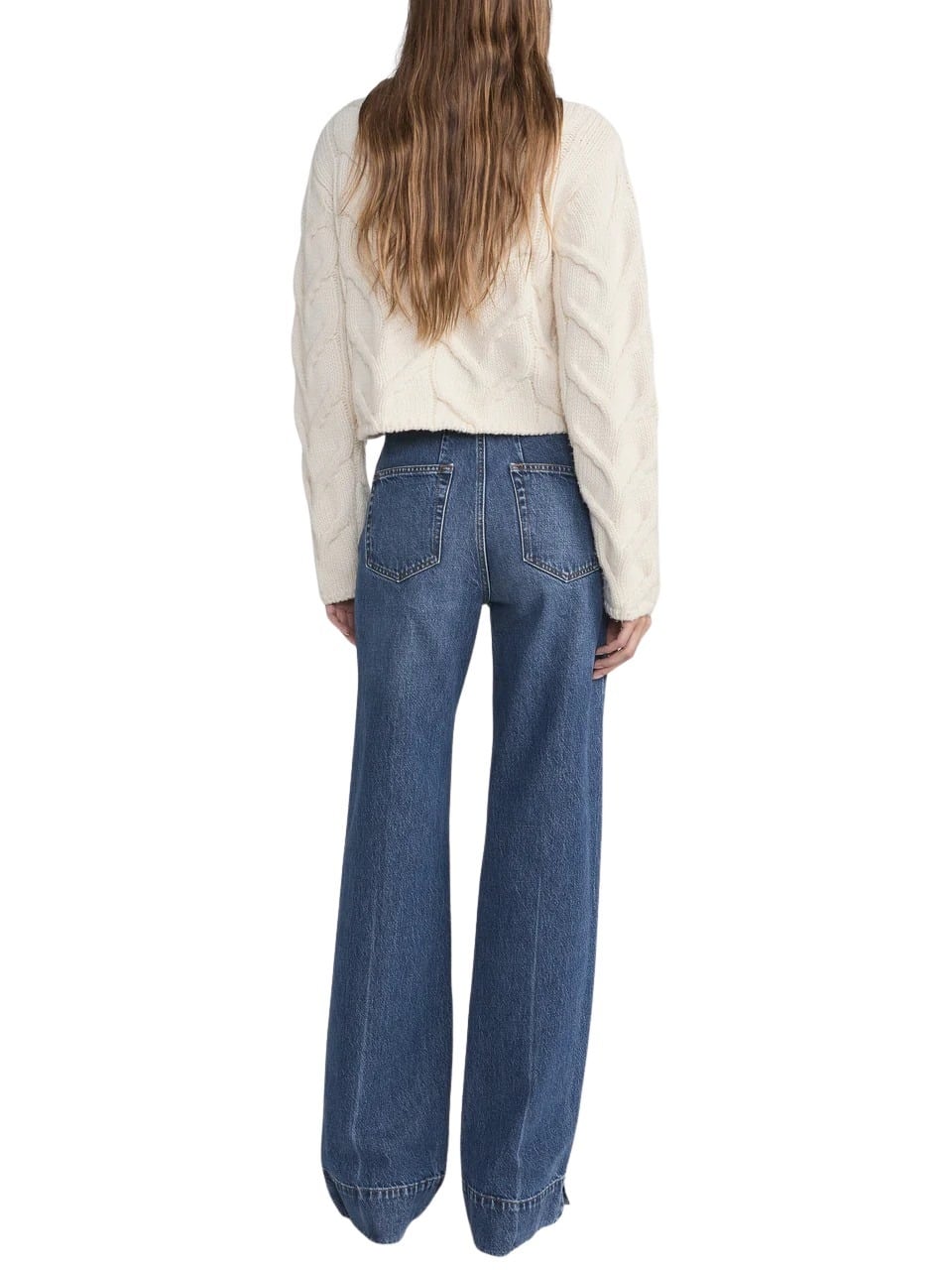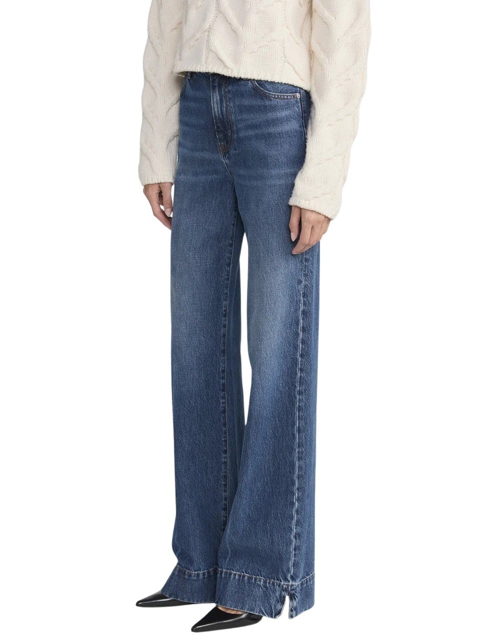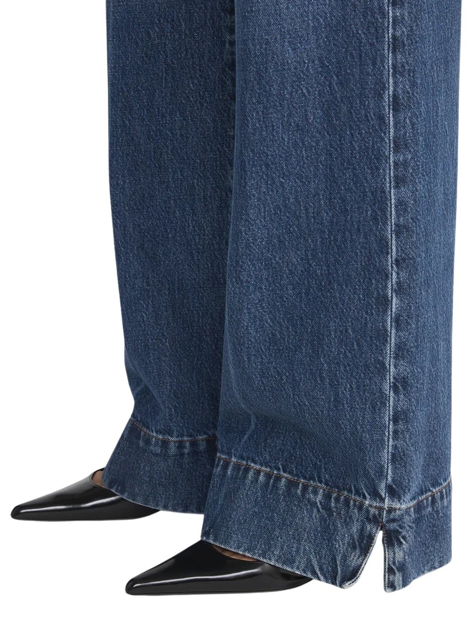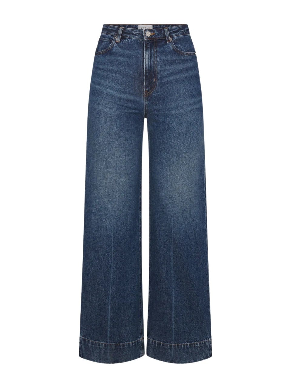 Jeans til dame fra Frame i eksklusiv, rigid denim laget av 100% regenerativ bomull. Modellen har en ultrahøy midje, smal passform over hoftene og en lett utsvingt benfasong med ekstra lengde. Dype falder og splitt i sidene gir et moderne uttrykk med fokus på detaljer.