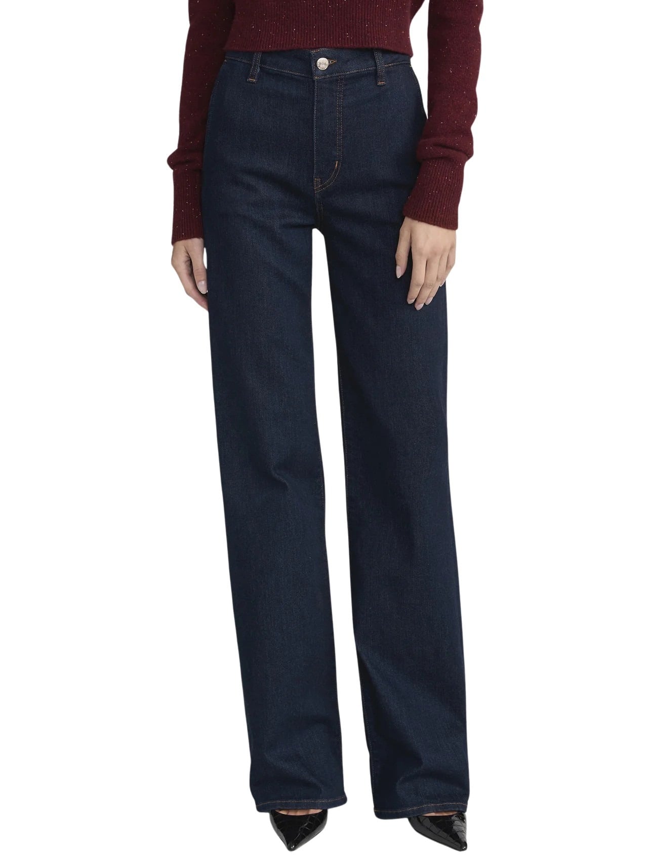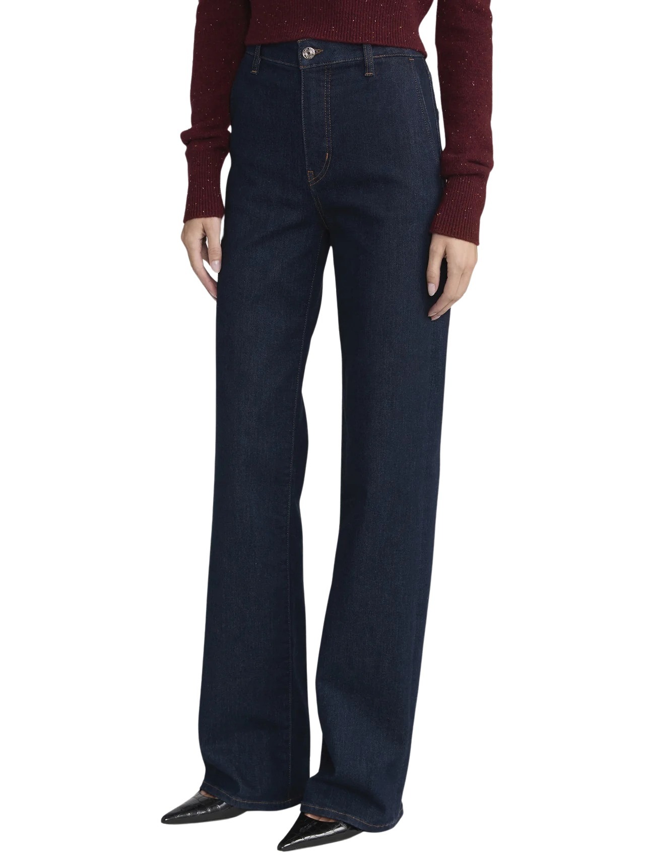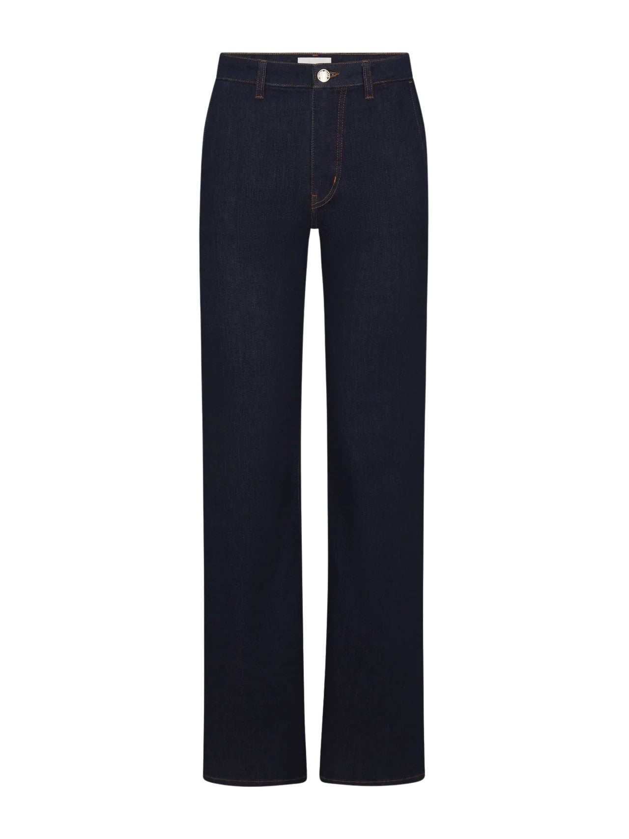 The Straight Trouser fra FRAME. En elegant jeans med høy midje og rett ben som gir et rent, sofistikert uttrykk. Den mørkeblå vasken og den skreddersydde silhuetten gjør den perfekt både til kontor og hverdagsbruk. En tidløs modell som kombinerer klassisk design med moderne komfort.