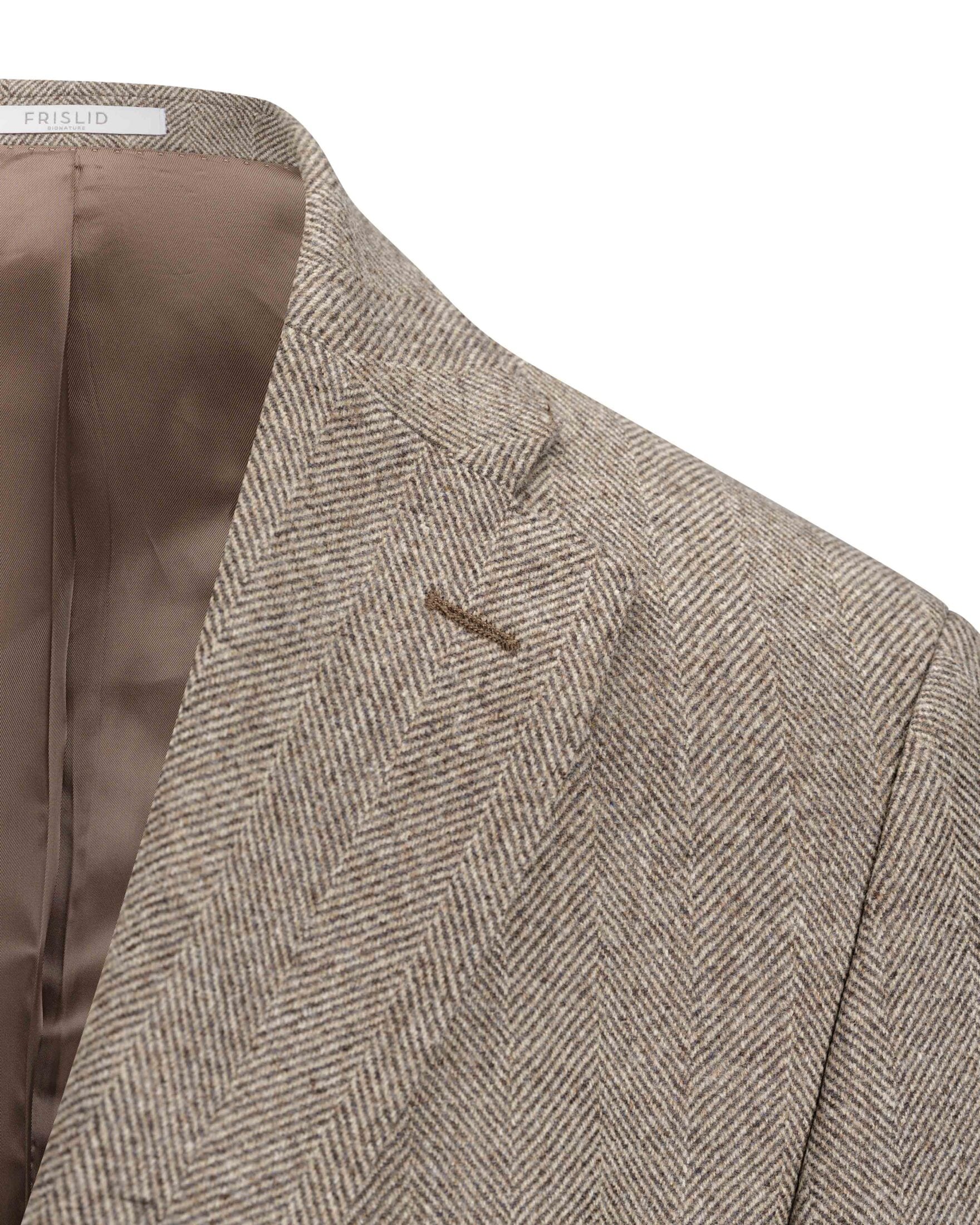 Bilbao fra Frislid. En elegant blazer i 100% ull, med et subtilt fiskebensmønster som gir et raffinert og tidløst uttrykk. Den myke ullkvaliteten sørger for optimal komfort, struktur og et pent fall. Et allsidig plagg som løfter både hverdags- og penantrekk med klassisk skreddersøm og moderne eleganse.