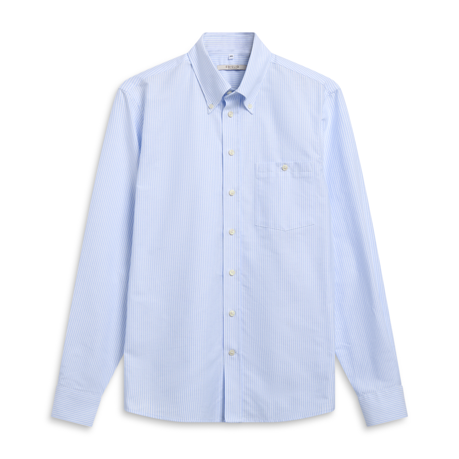 Skjorte til herre fra Frislid, laget i lett og behagelig bomull. Den har et stripete hvitt og brunt design med en brystlomme. Perfekt for både uformelle og formelle anledninger.