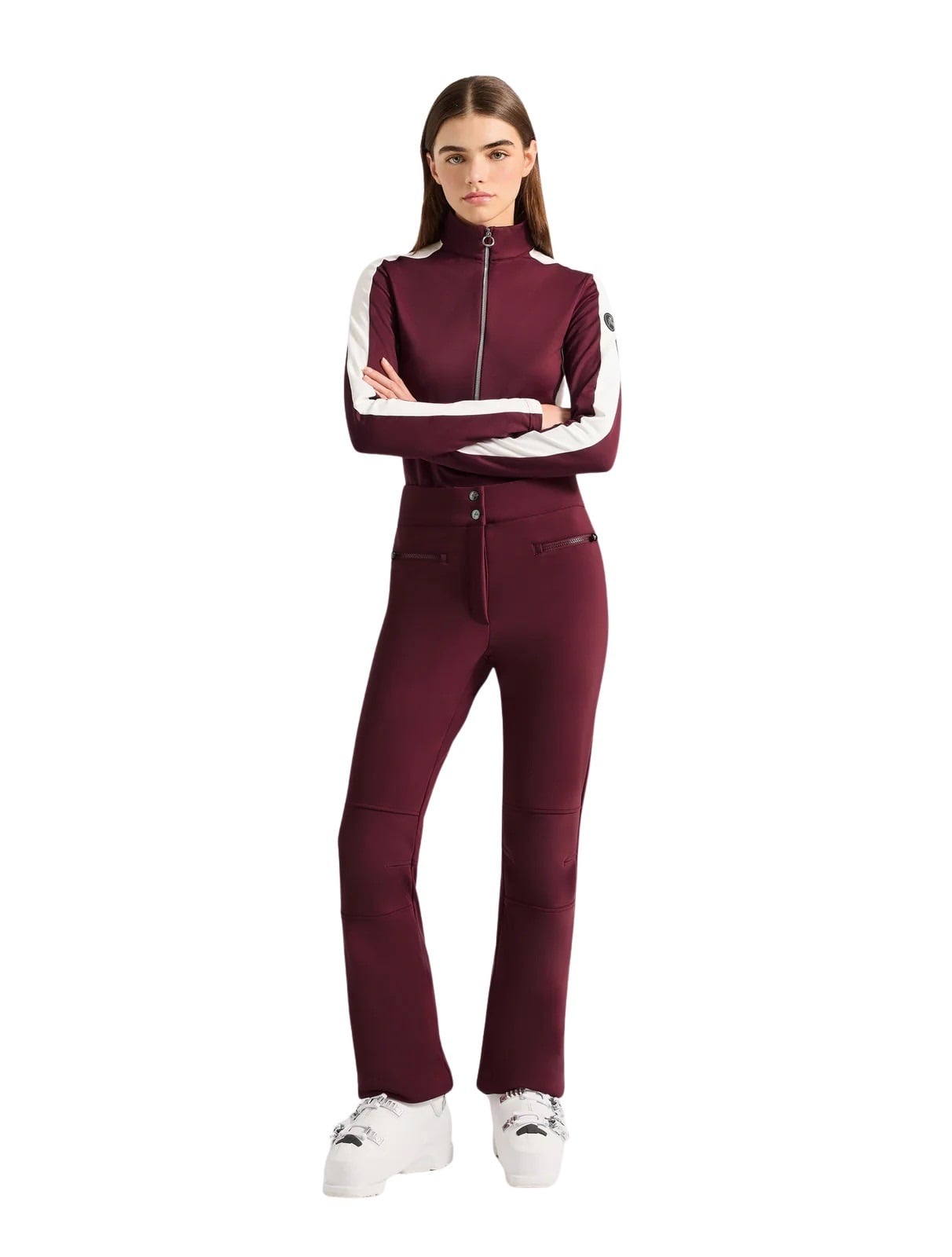 Langermet topp til dame fra Fusalp. Den tekniske stretch-kvaliteten gir optimal bevegelsesfrihet og varme, samtidig som den puster effektivt. Med kontraststriper langs ermene og elegant glidelåslukking får du et sofistikert uttrykk. Perfekt både på og utenfor bakken.