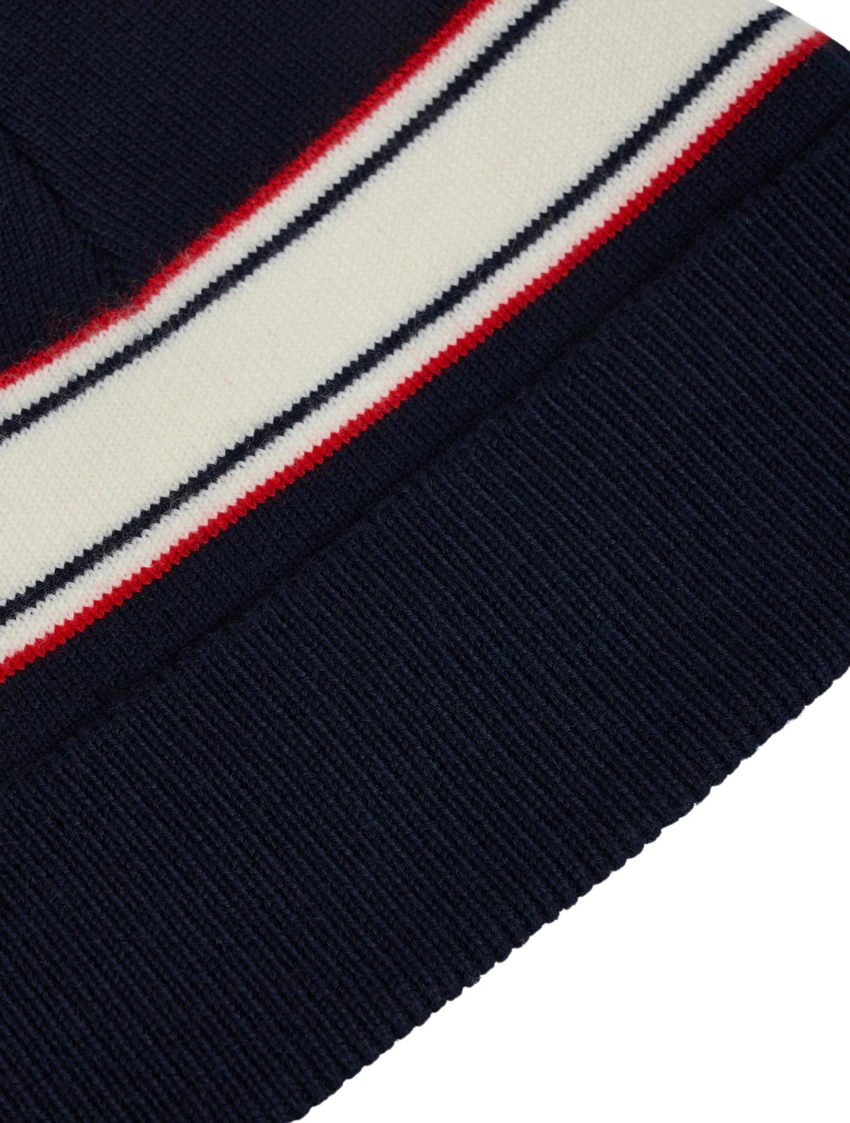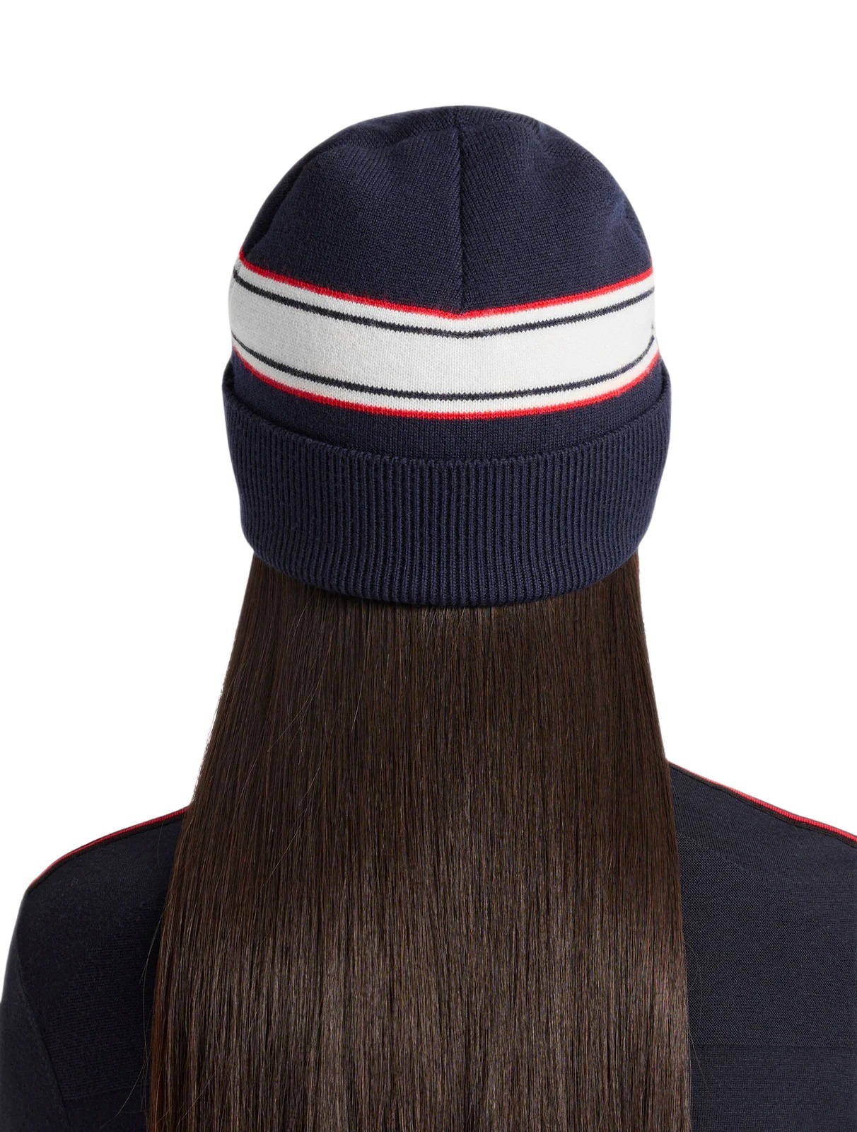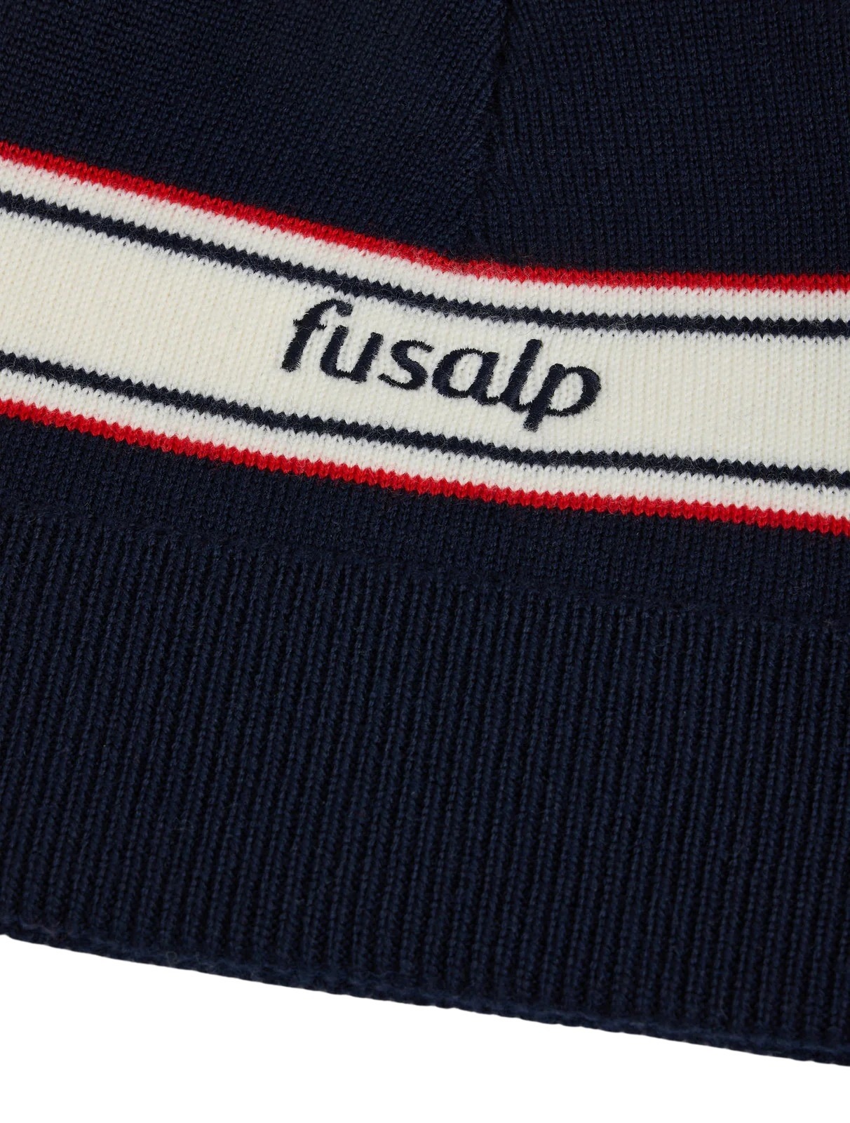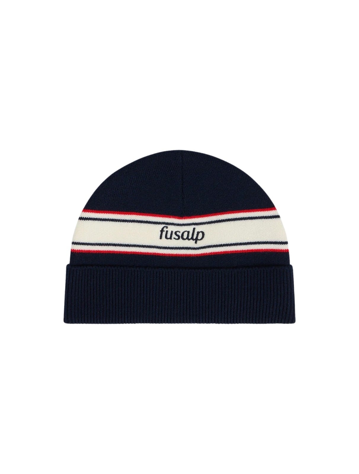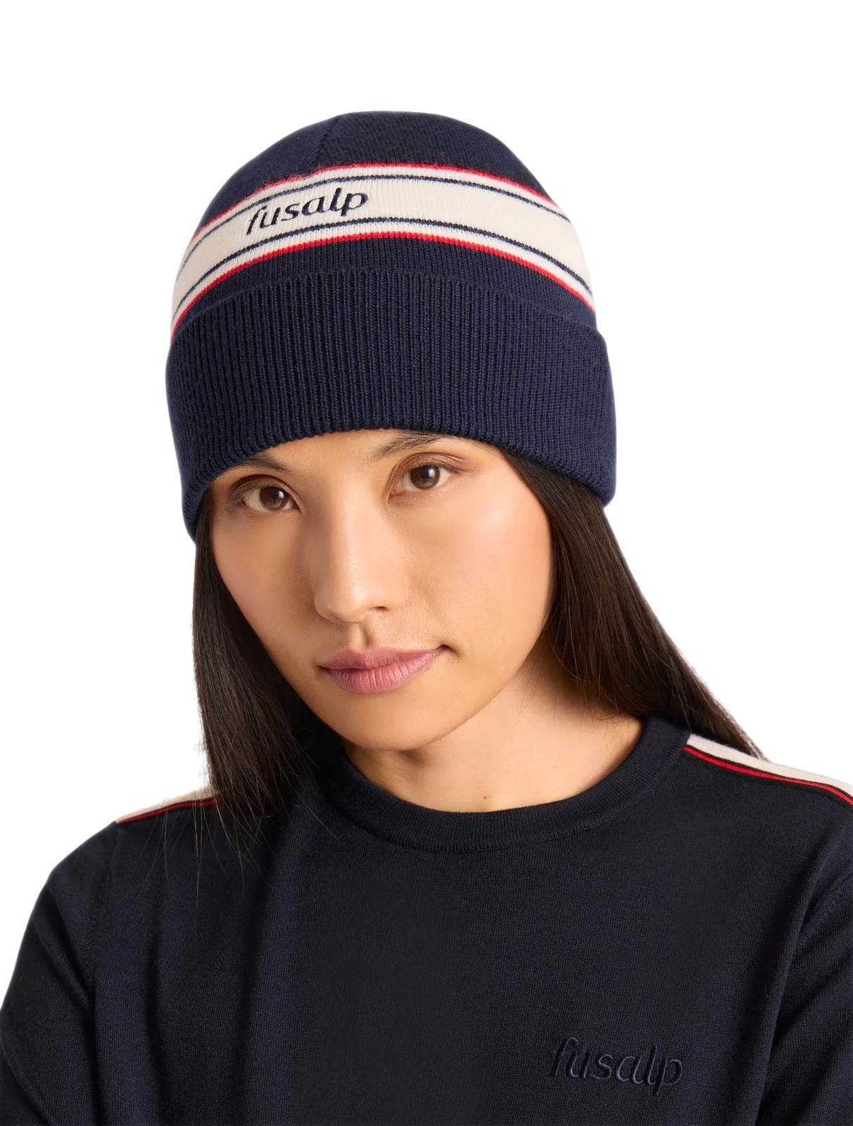 Unisex lue fra Fusalp i myk, varm dobbelstrikket ull. Designet med trikolor-detaljer og brodert Fusalp-logo for et sporty, retro uttrykk. Et stilfullt og funksjonelt tilbehør for kalde dager, både på fjellet og i byen.