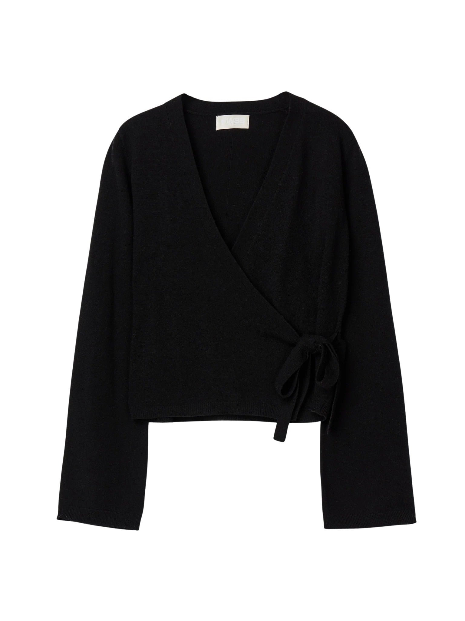 Cardigan til damme fra FWSS. Laget i ekstra fin merinoull som gir et elegant, mykt uttrykk inspirert av klassisk ballettsilhuett. Den har et flatterende omslagssnitt med knyting i midjen, delikate ribbedetaljer og feminine ermer som faller lekkert. En tidløs favoritt som løfter enhver garderobe.
