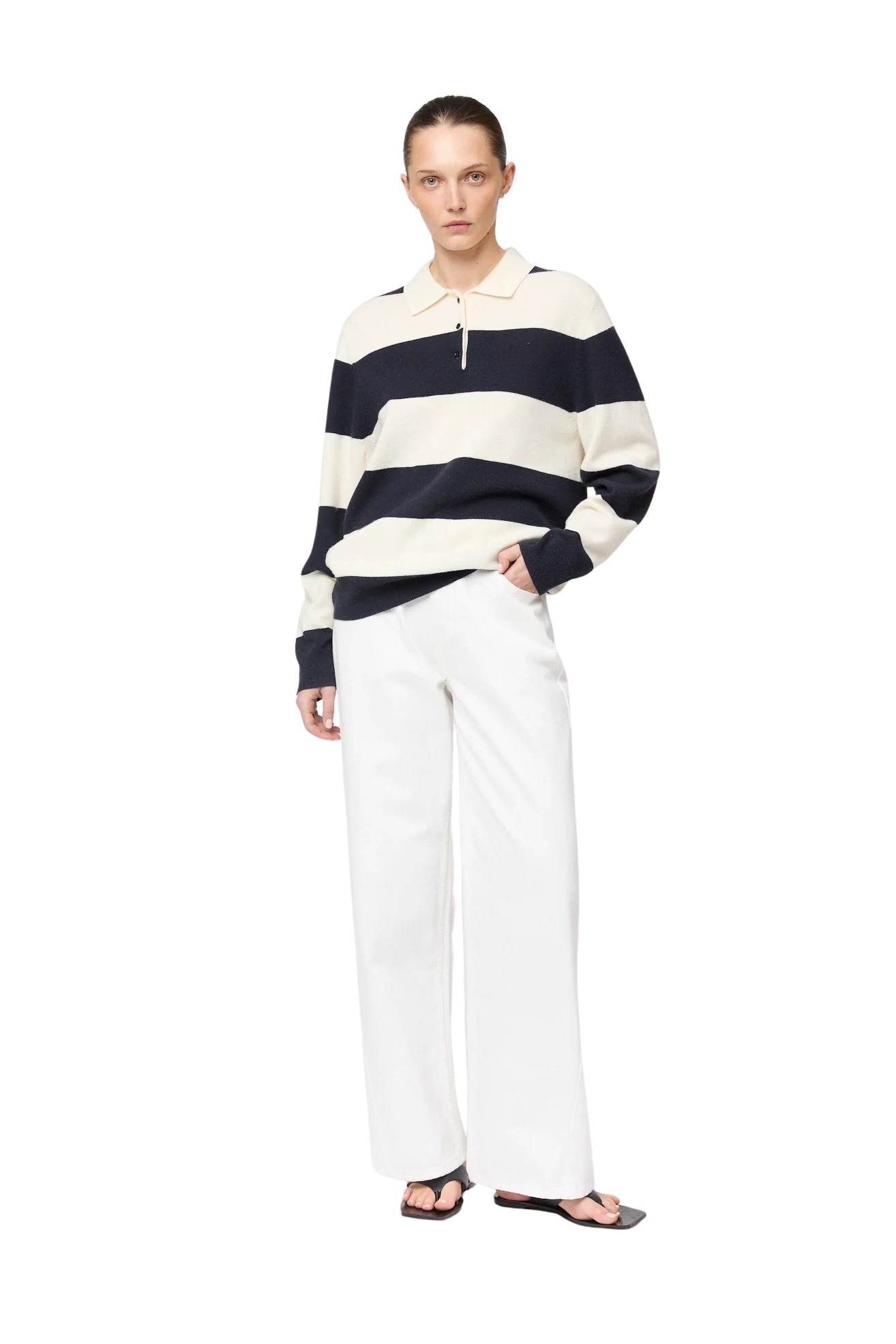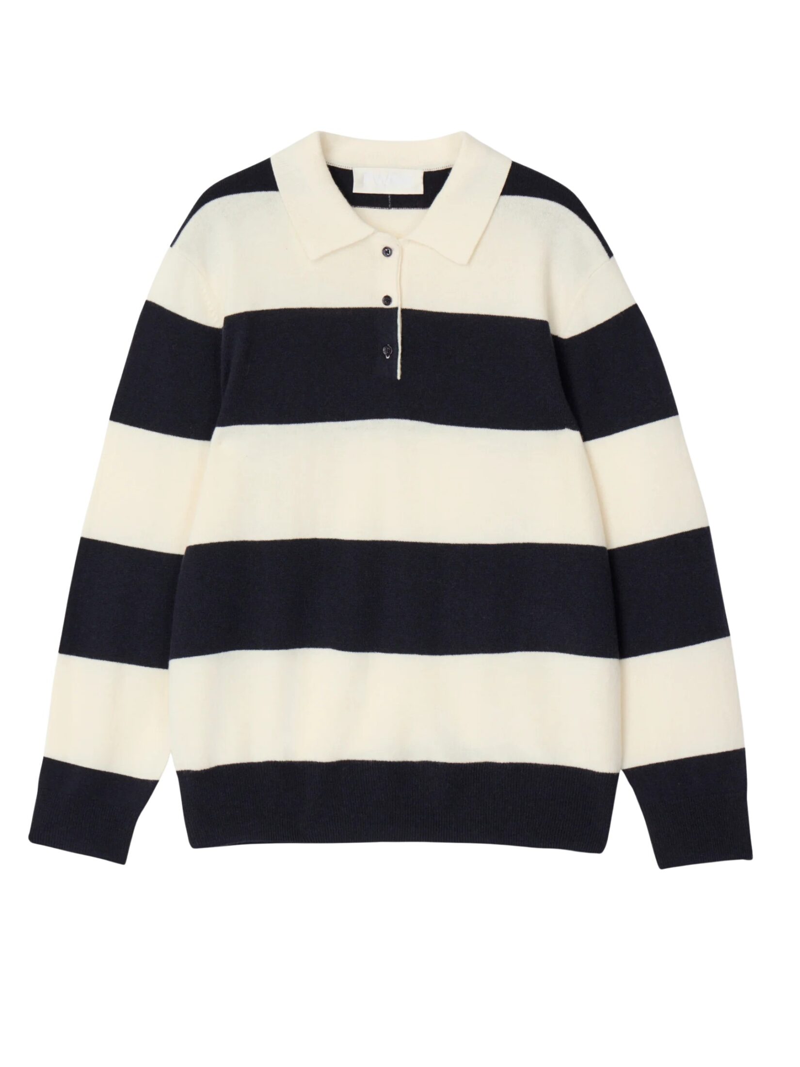 Strikkegenser til dame fra FWSS i børstet, ultrafin merinoull. Designet med avslappet passform, ribbestrikket krage og diskré knappestolpe. Inspirert av klassiske skoleuniformer med et tidløst og preppy uttrykk.