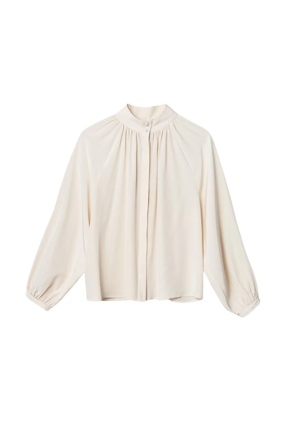 Bluse til dame fra FWSS, laget av ren silke. Blusen utstråler luksus med sin nydelige glans og lette A-form, og den passer perfekt for en rekke anledninger.