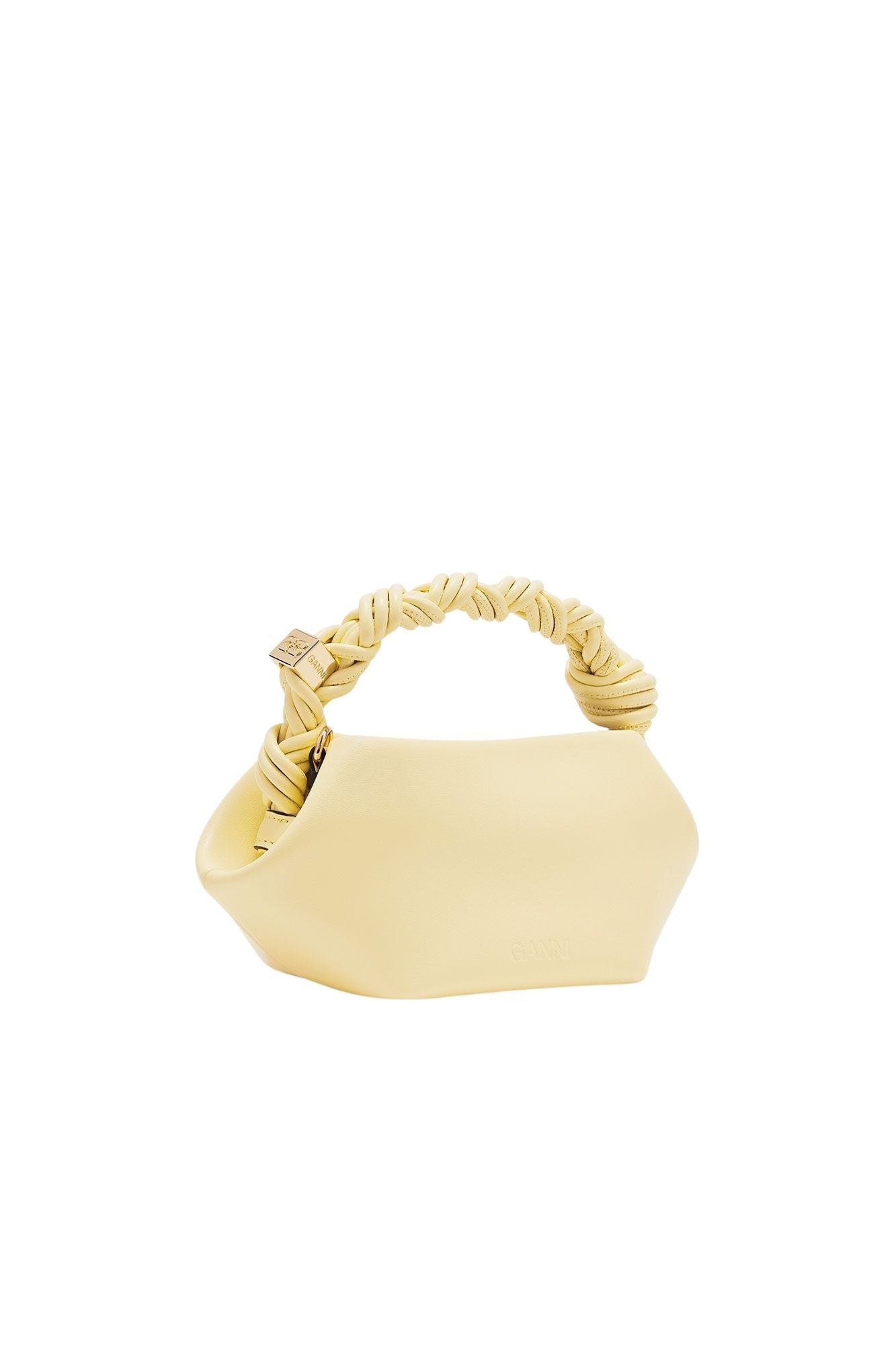 Den ikoniske Bou Bag vesken fra GANNI. Lekker minibag med flettet topphåndtak som gir et moderne, skulpturelt uttrykk. Vesken har avtagbar skulderrem, luksuriøse metall-detaljer og akkurat passe størrelse til det viktigste. Et statement-accessory som løfter enhver look – både til hverdags og fest.