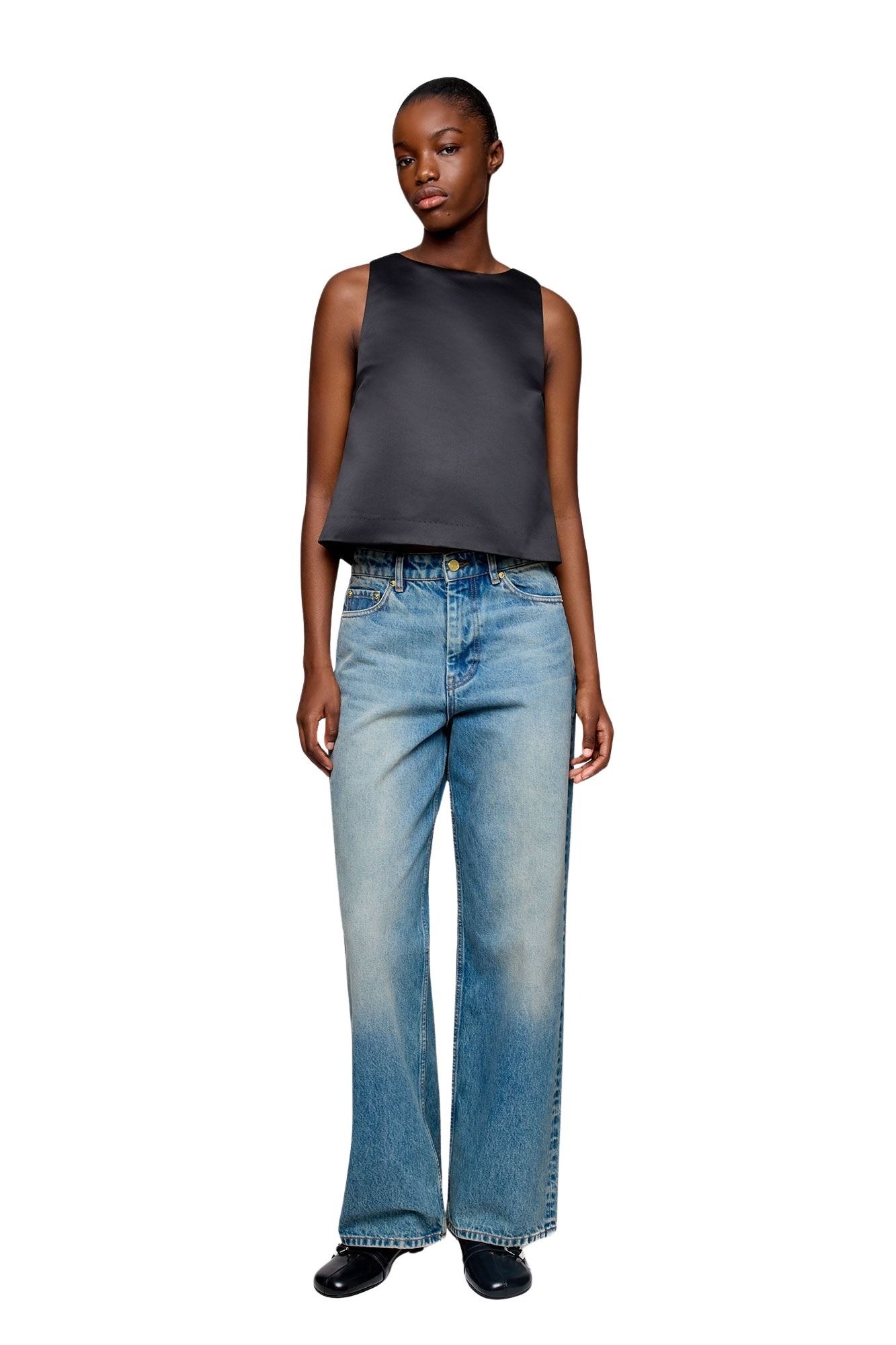 Modellen er 177 cm høy og bruker størrelse 36