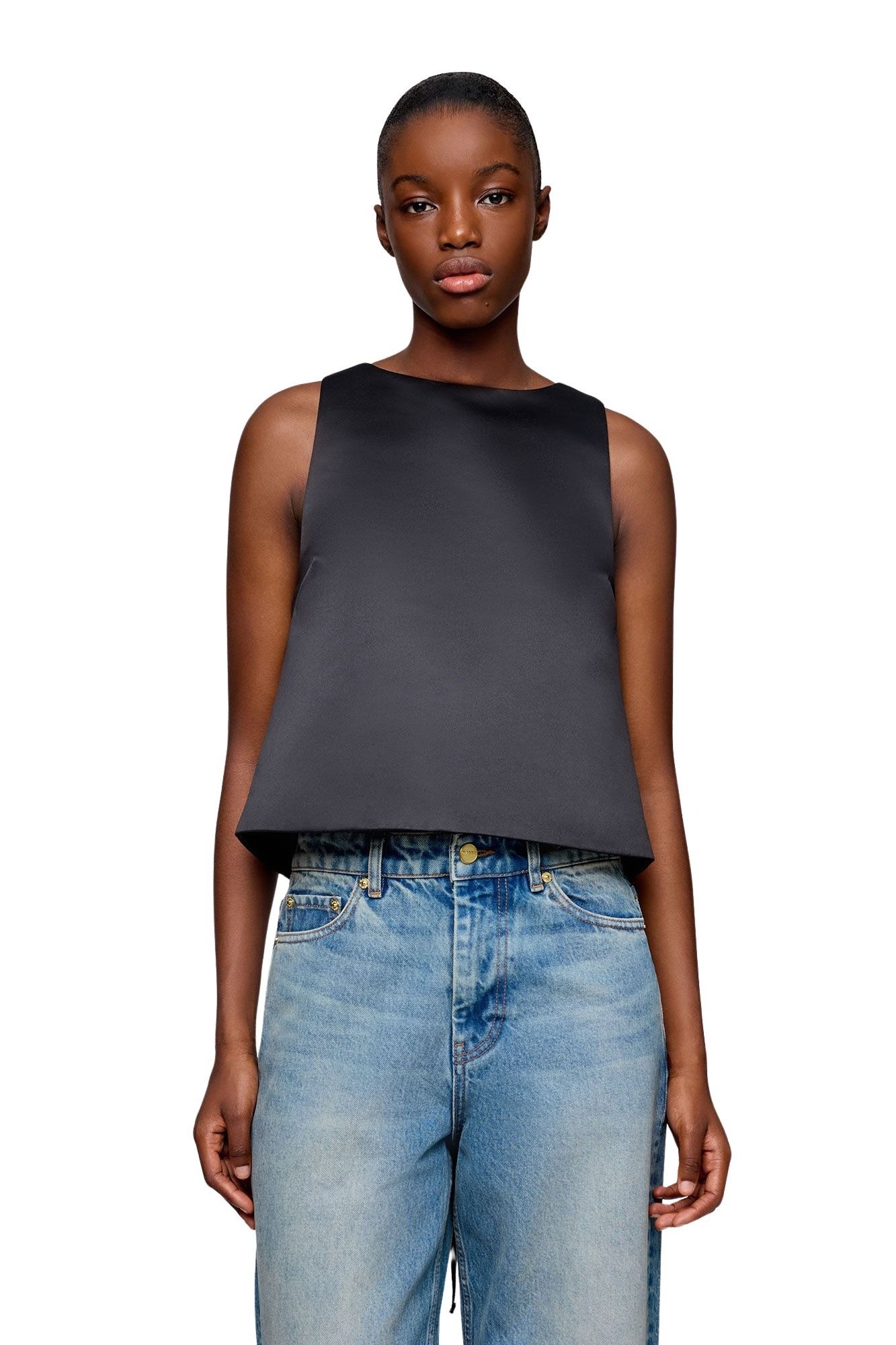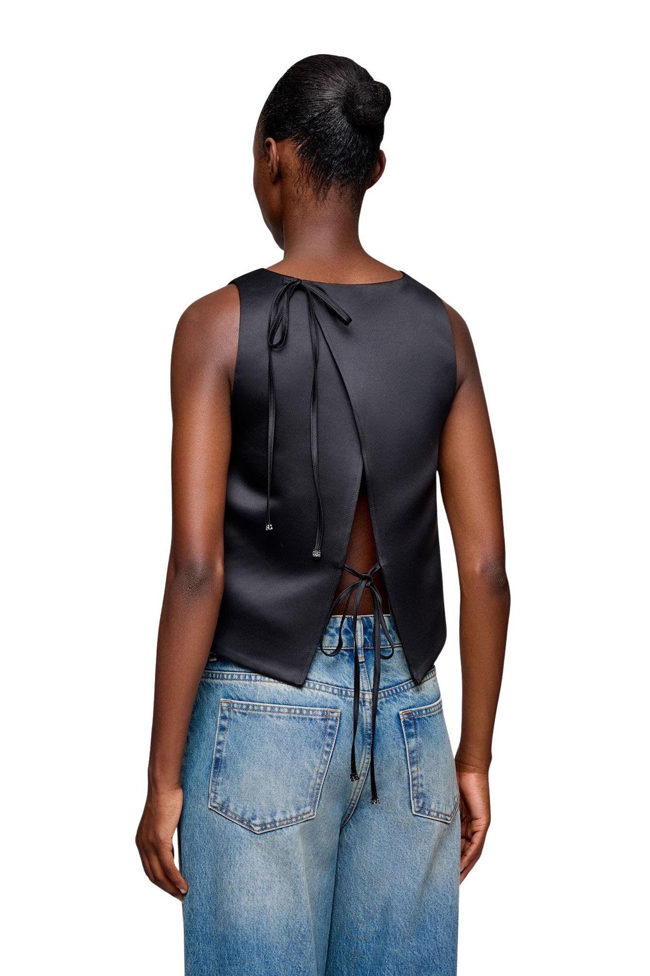 Duchesse Satin Crossover Open Back Top – Sort
