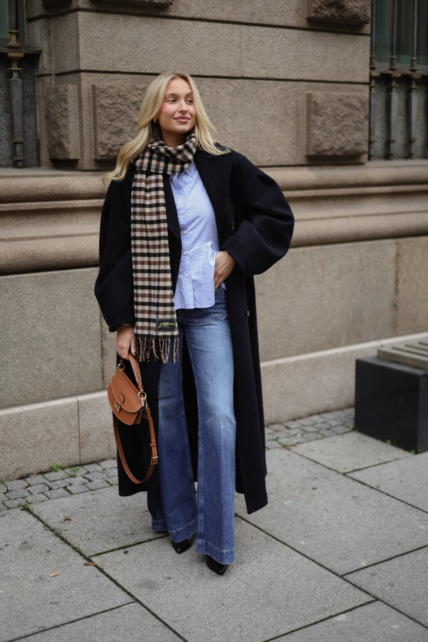 Ullkåpe til dame fra Ganni i en varmende ullblanding med klassisk krage og dobbeltspent knappelukking. Kåpen har to lommer, én innerlomme og en plissert detalj bak. Med sin oversized passform er den perfekt for et avslappet, moderne uttrykk som samtidig varmer.