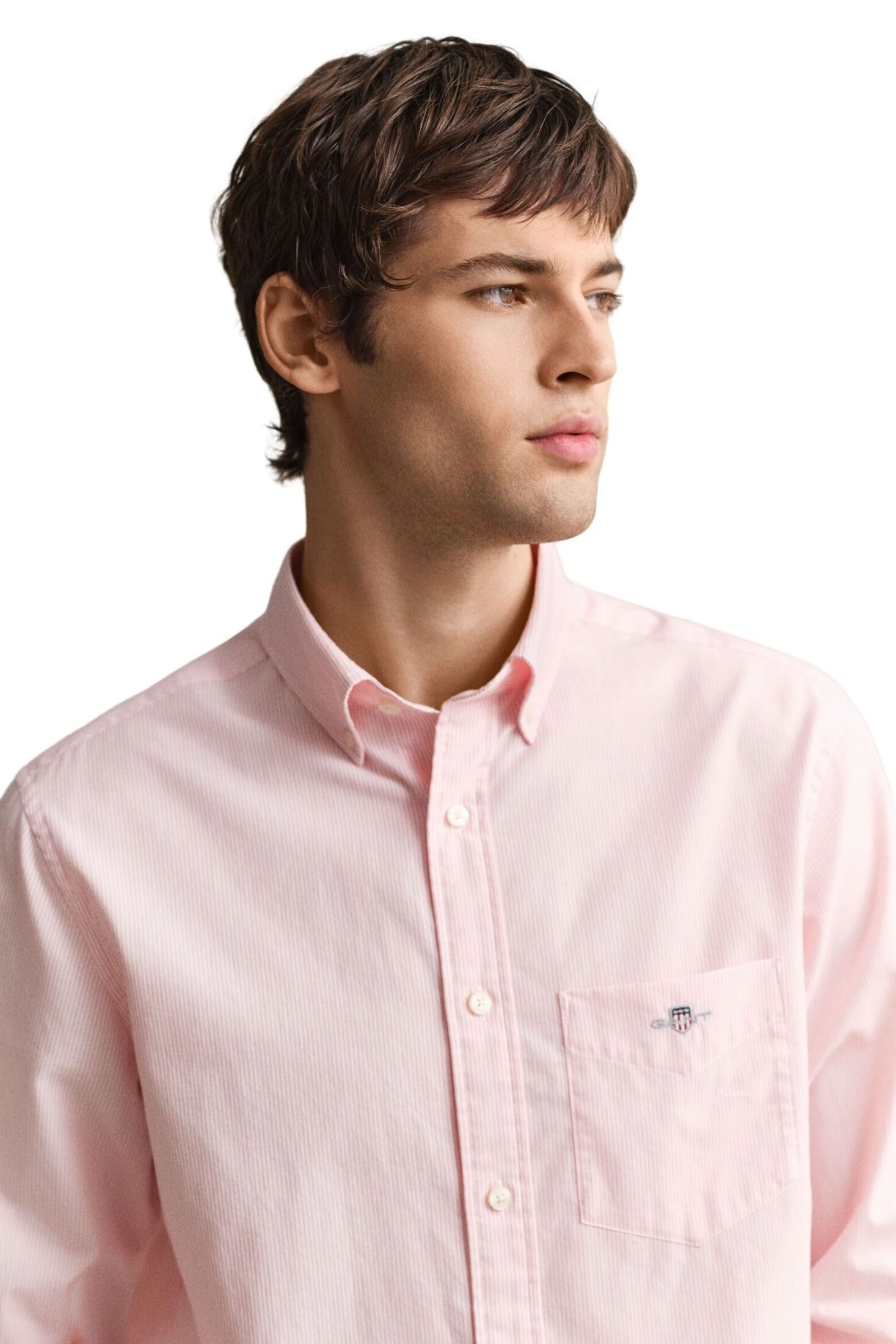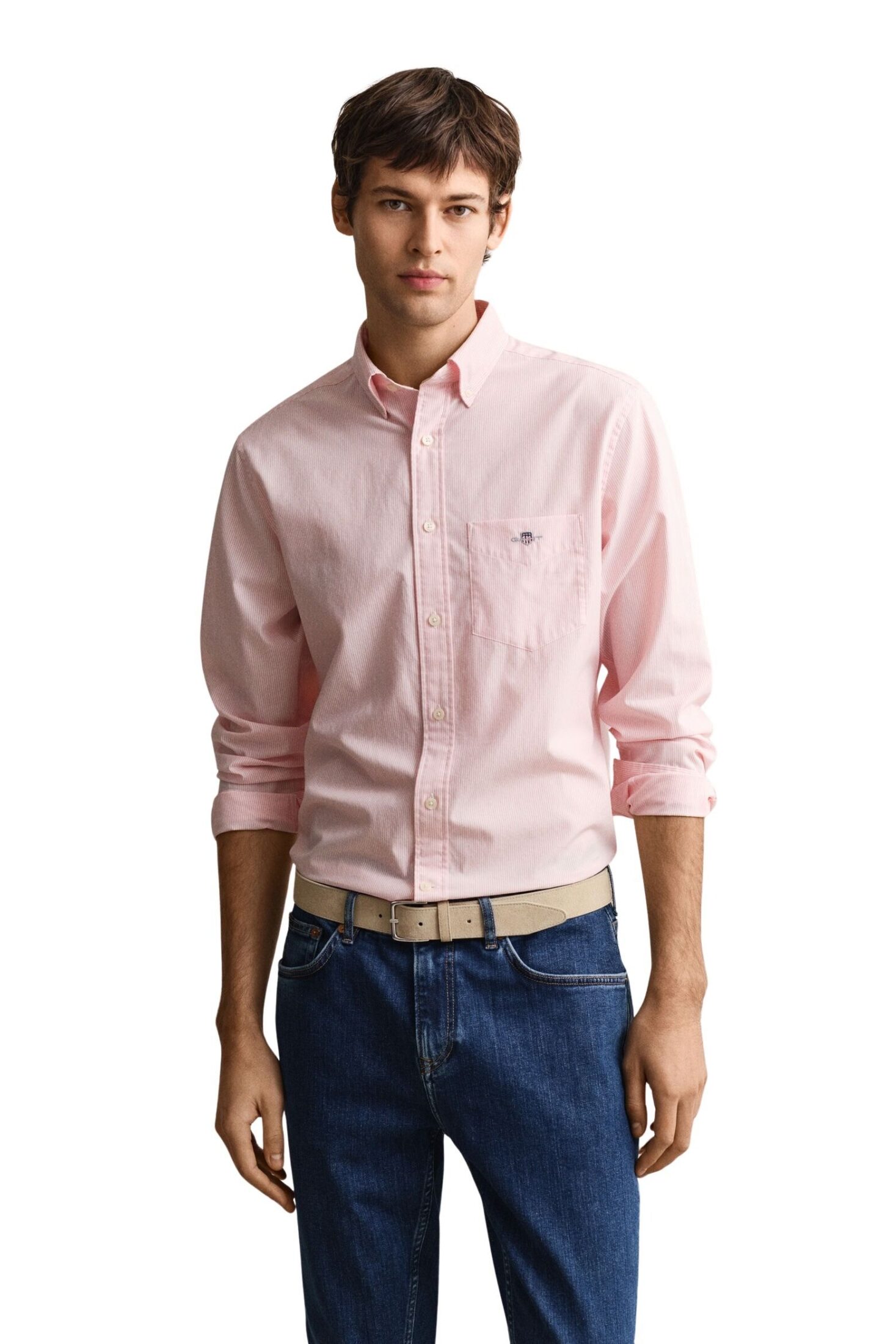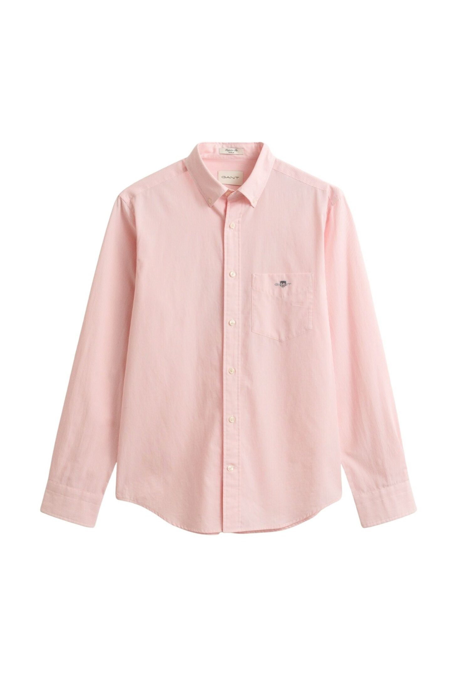 Skjorte til herre fra GANT. En klassisk poplinskjorte med diskrete bankerstriper og tidløst design. Den har button down-krage, normal passform og brystlomme med brodert GANT-logo. Et allsidig valg som fungerer like godt til jobb som til en mer avslappet, pen hverdagsstil.