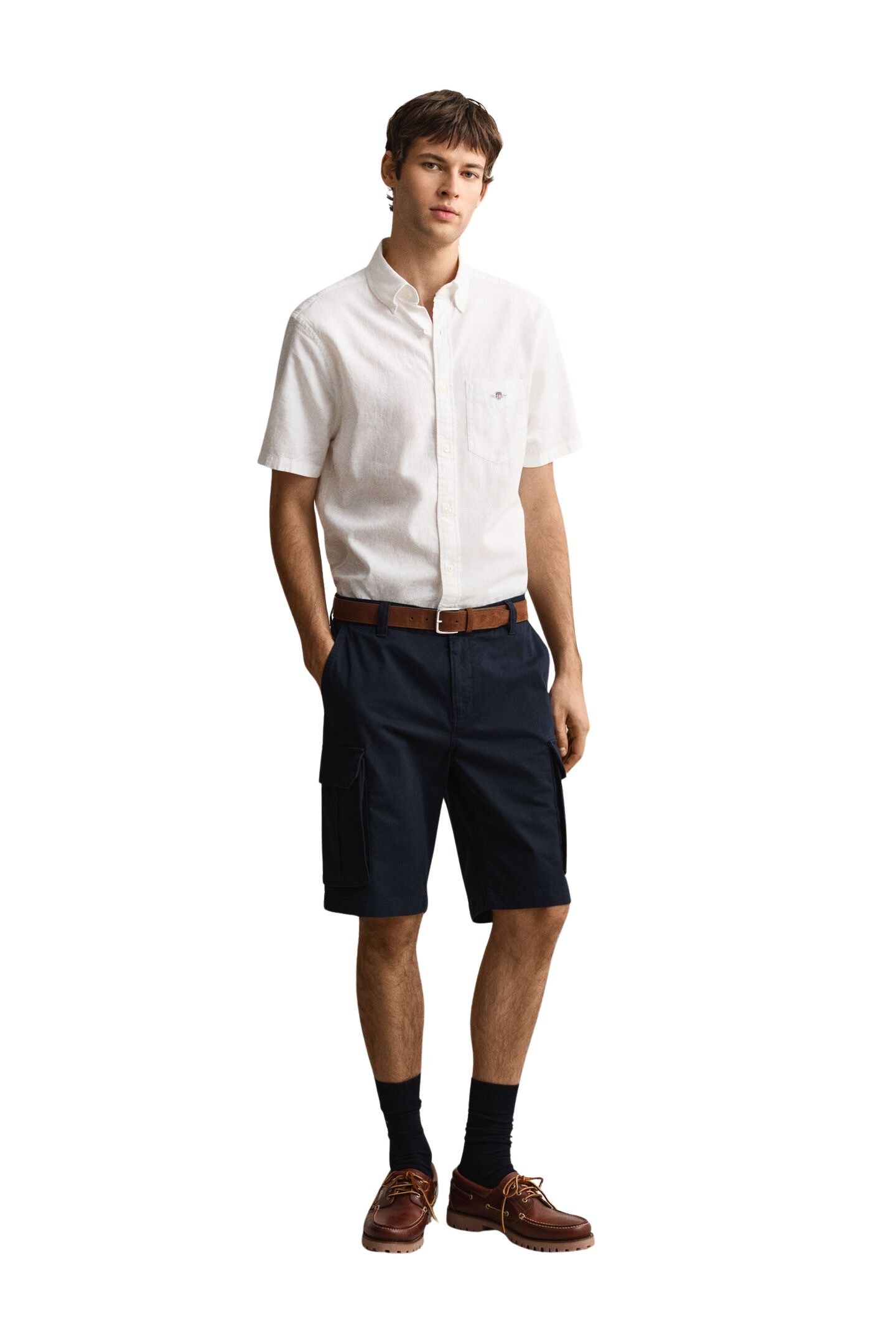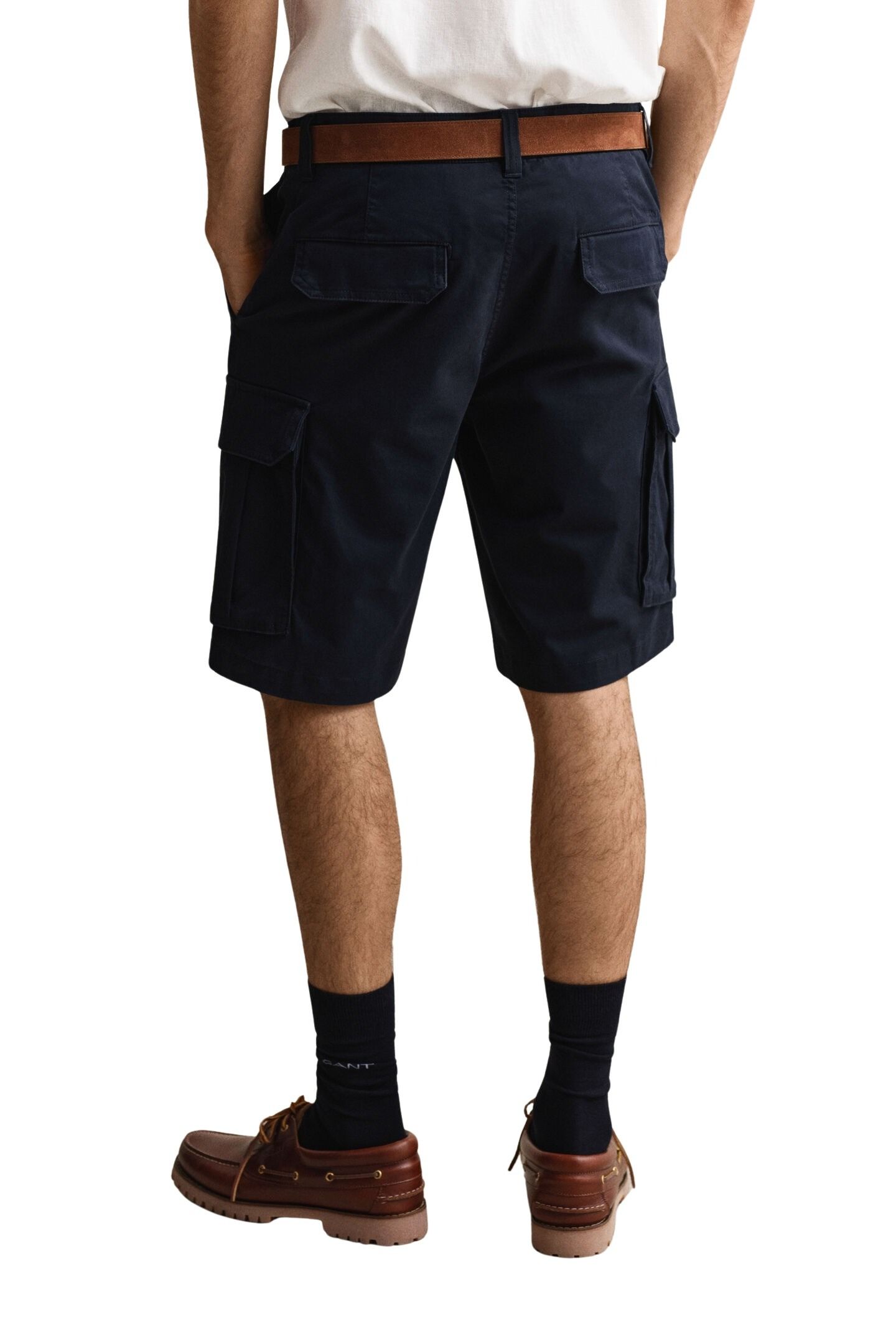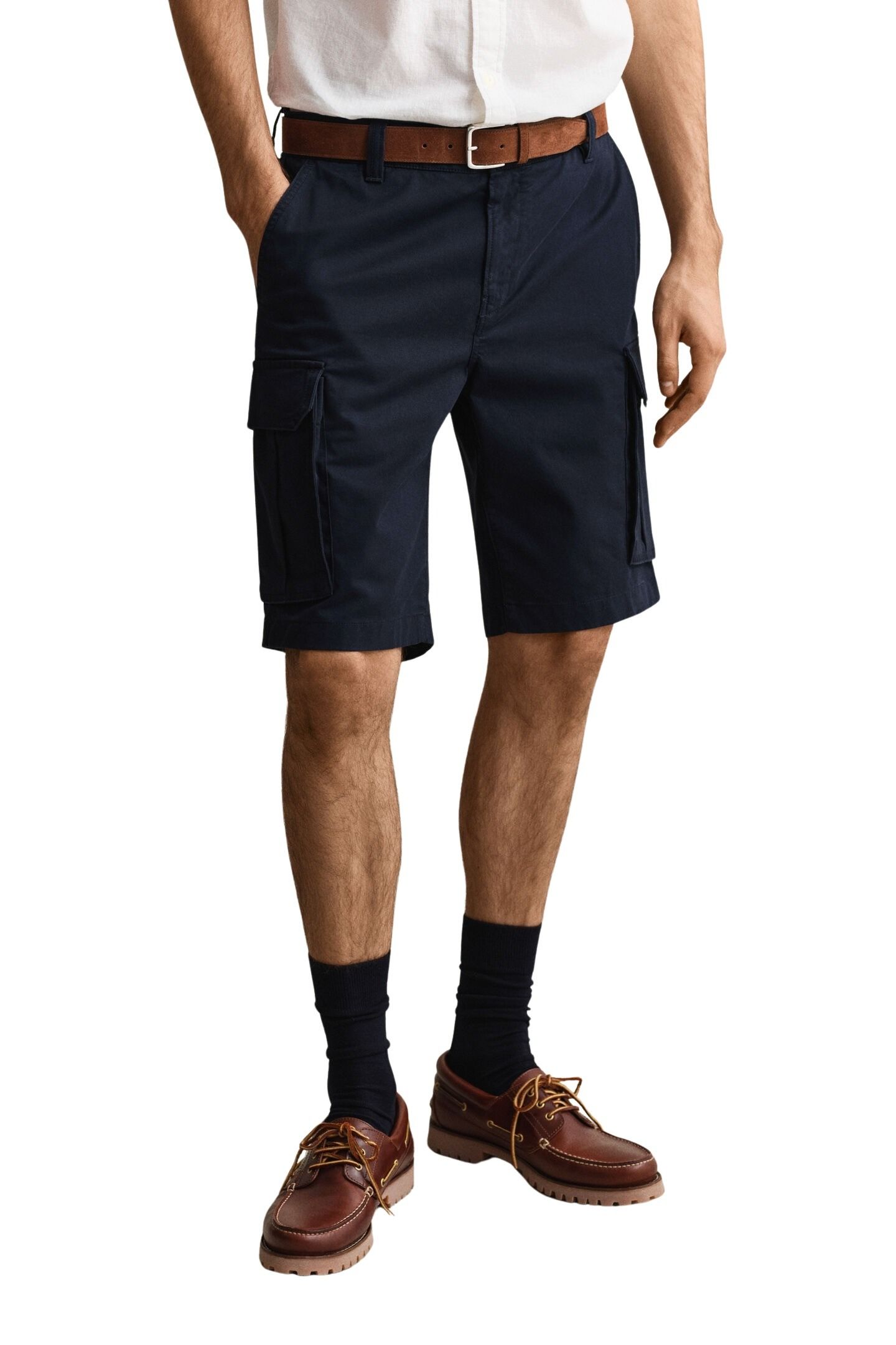 Shorts til herre fra Gant. Komfortable cargoshorts i en myk bomullsblanding med lett stretch. De har normal passform, middels høy midje og en lengde som går til over kneet. Praktiske lommer og klassiske detaljer gjør dem til et funksjonelt valg til hverdagsbruk.