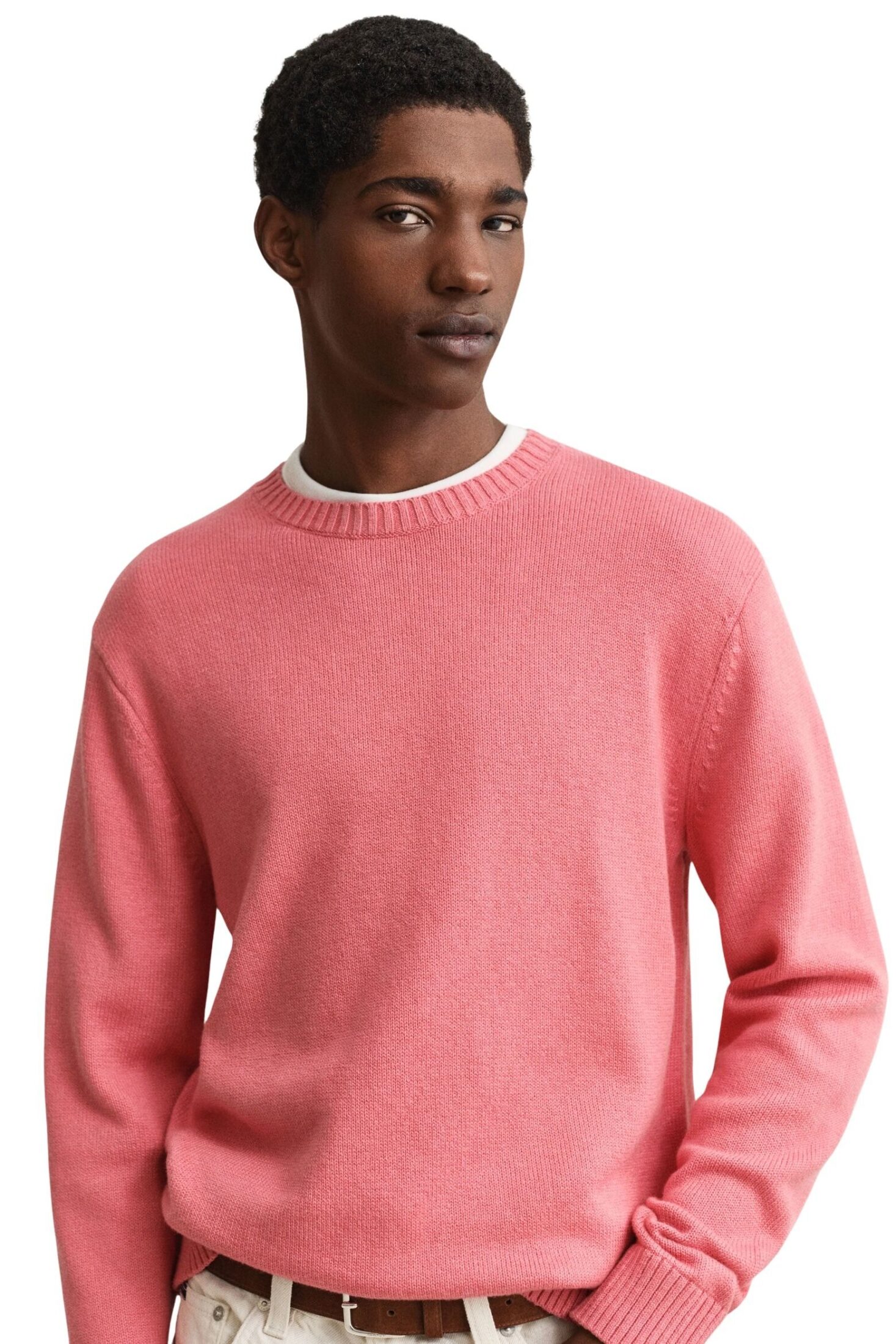 Genser til herre fra GANT. En lett og behagelig genser i en eksklusiv blanding av bomull og kasjmir som gir en myk følelse mot huden. Den har en klassisk rund hals og ribbestrikkede detaljer ved hals, mansjetter og nederkant. En tidløs modell med normal passform som passer perfekt til både jeans og chinos.
