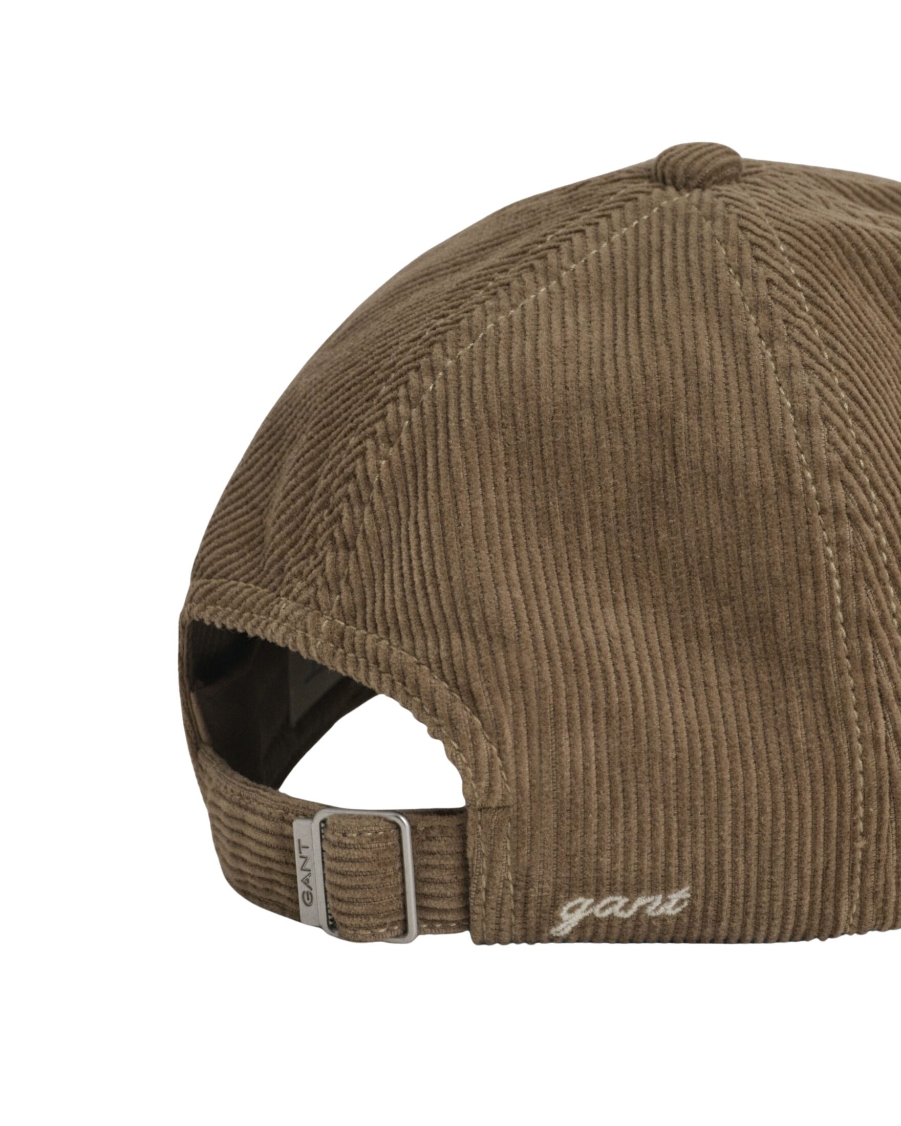 Caps til herre fra Gant. Laget av bomullskordfløyel. Capsen har et universitets-inspirert G-filtmerke foran og en GANT-grafikk brodert bak. Festes med en justerbar stropp bak som er detaljert med en GANT-gravert metallspenne.