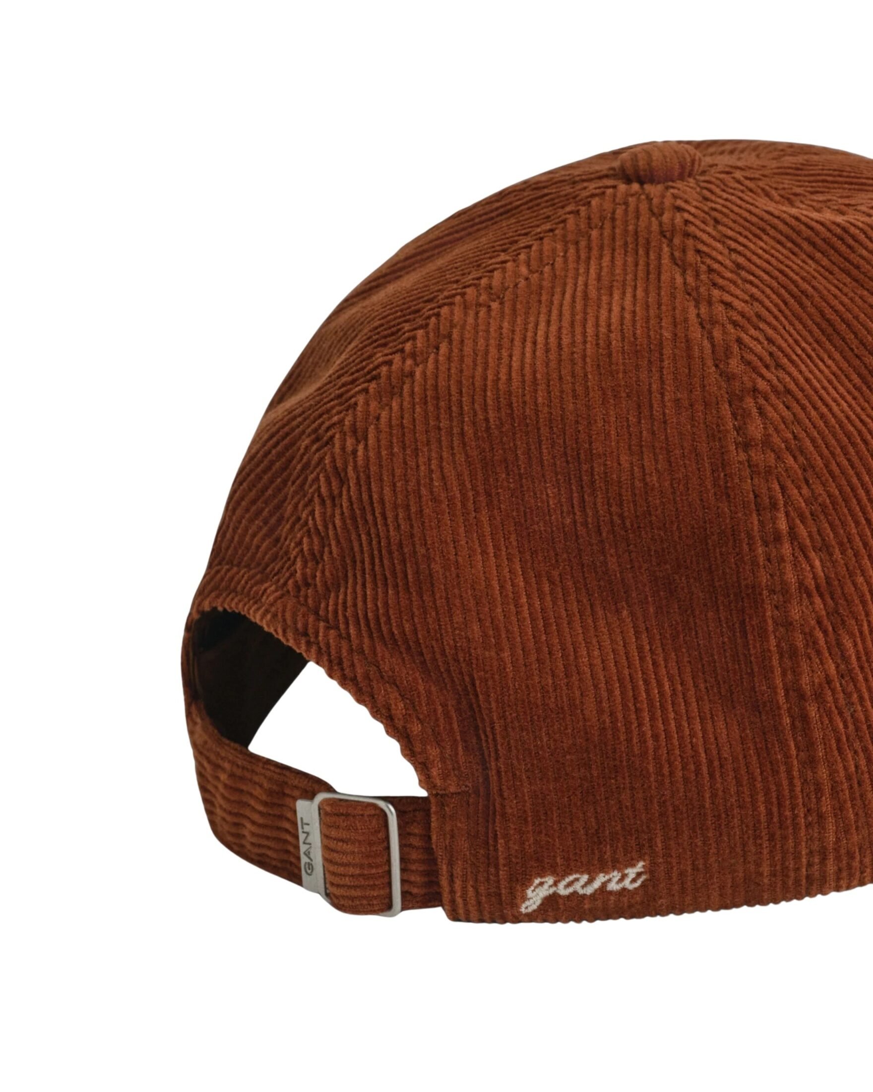 Caps til herre fra Gant. Laget av bomullskordfløyel. Capsen har et universitets-inspirert G-filtmerke foran og en GANT-grafikk brodert bak. Festes med en justerbar stropp bak som er detaljert med en GANT-gravert metallspenne.