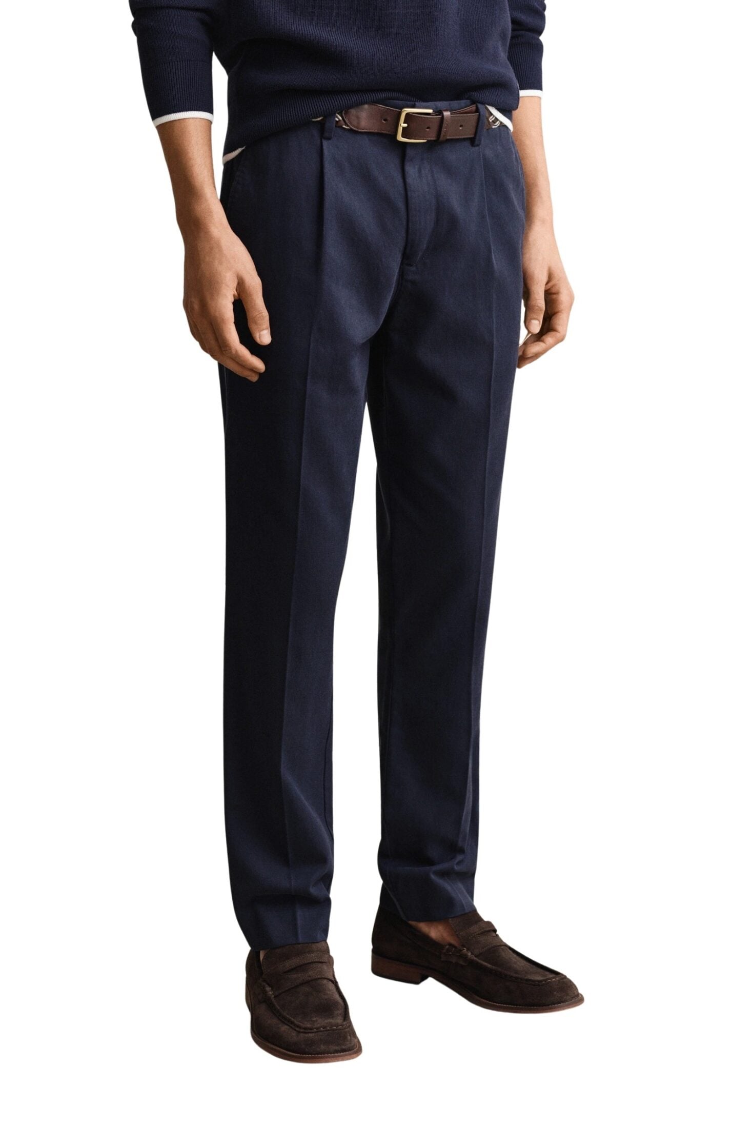 Bukse til herre fra Gant. Stilrene bukser i en myk og lett lyocellblanding med elegant fall. De har en klassisk smal passform med press, beltehemper og tidløst design som gir et velkledd uttrykk. Komfortable og allsidige bukser som passer like godt til jobb som til penere anledninger.