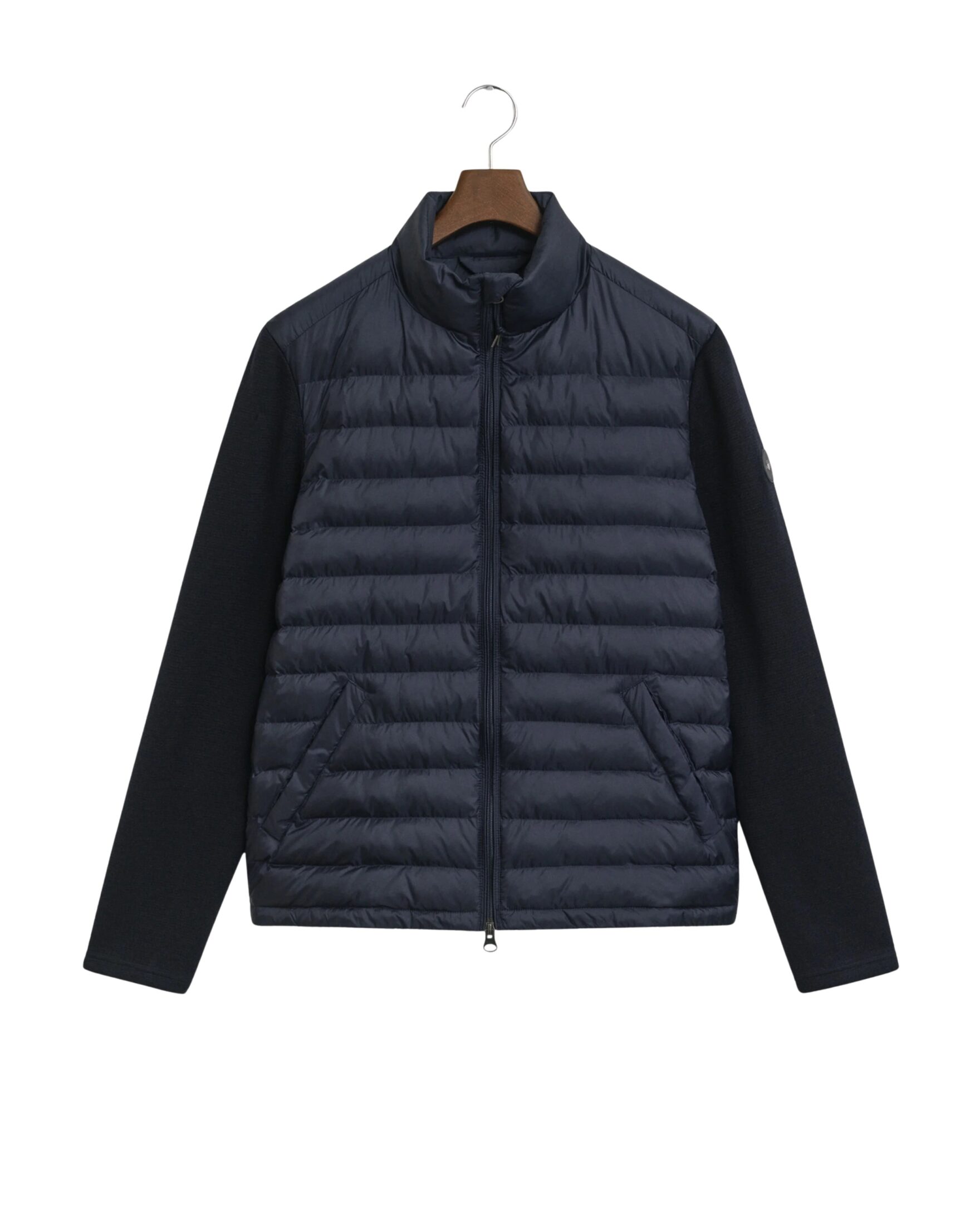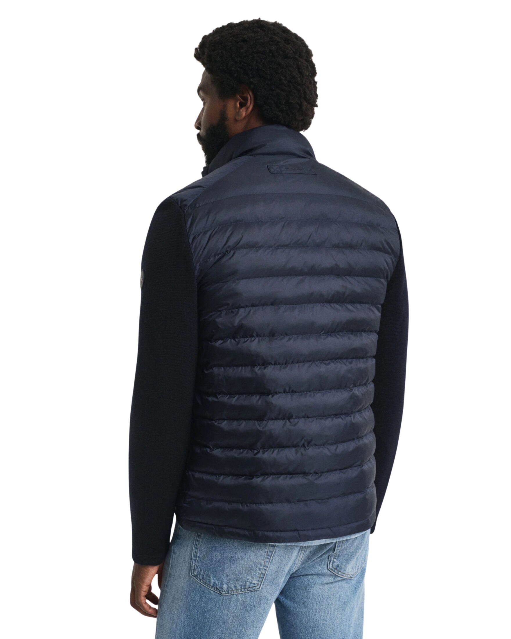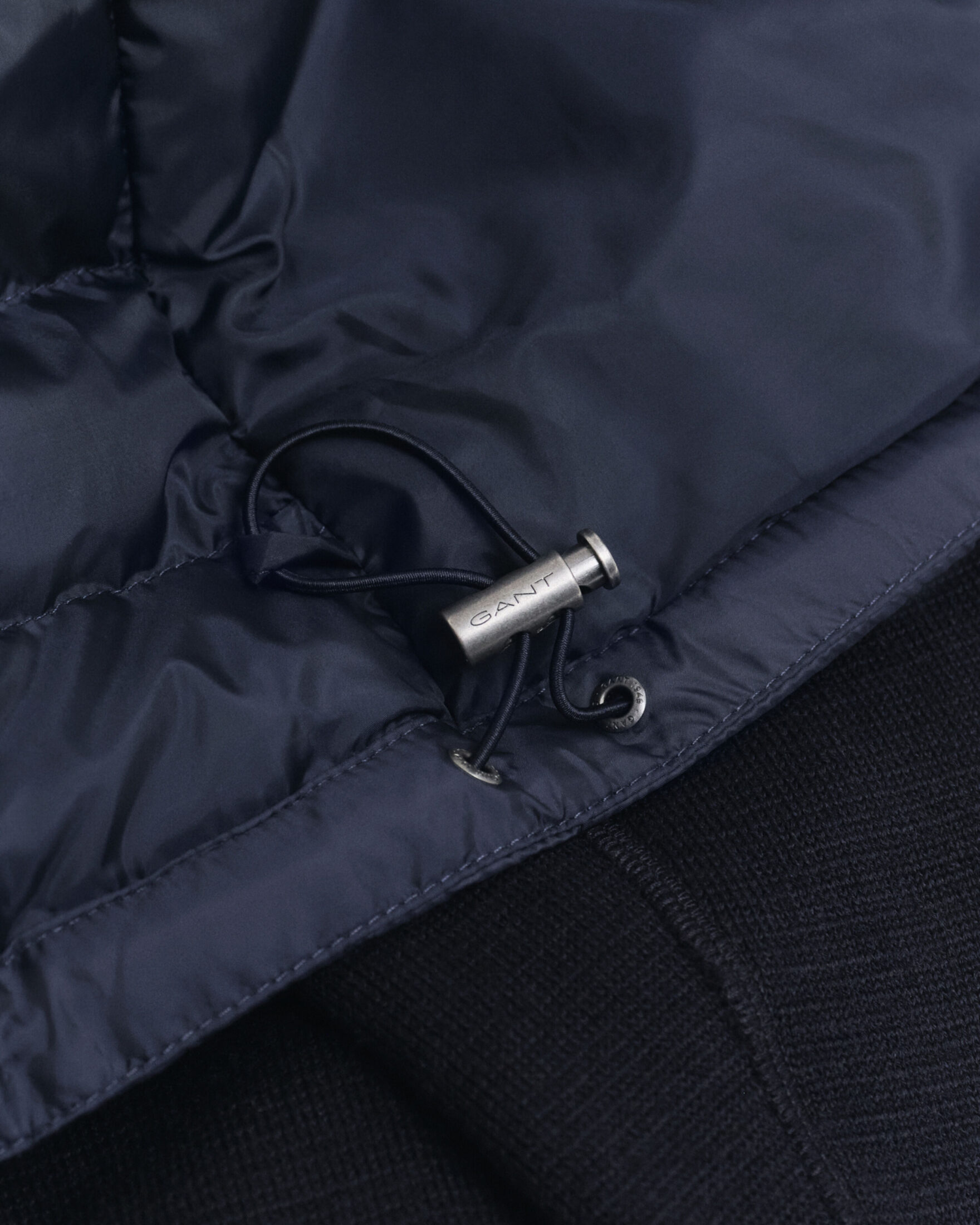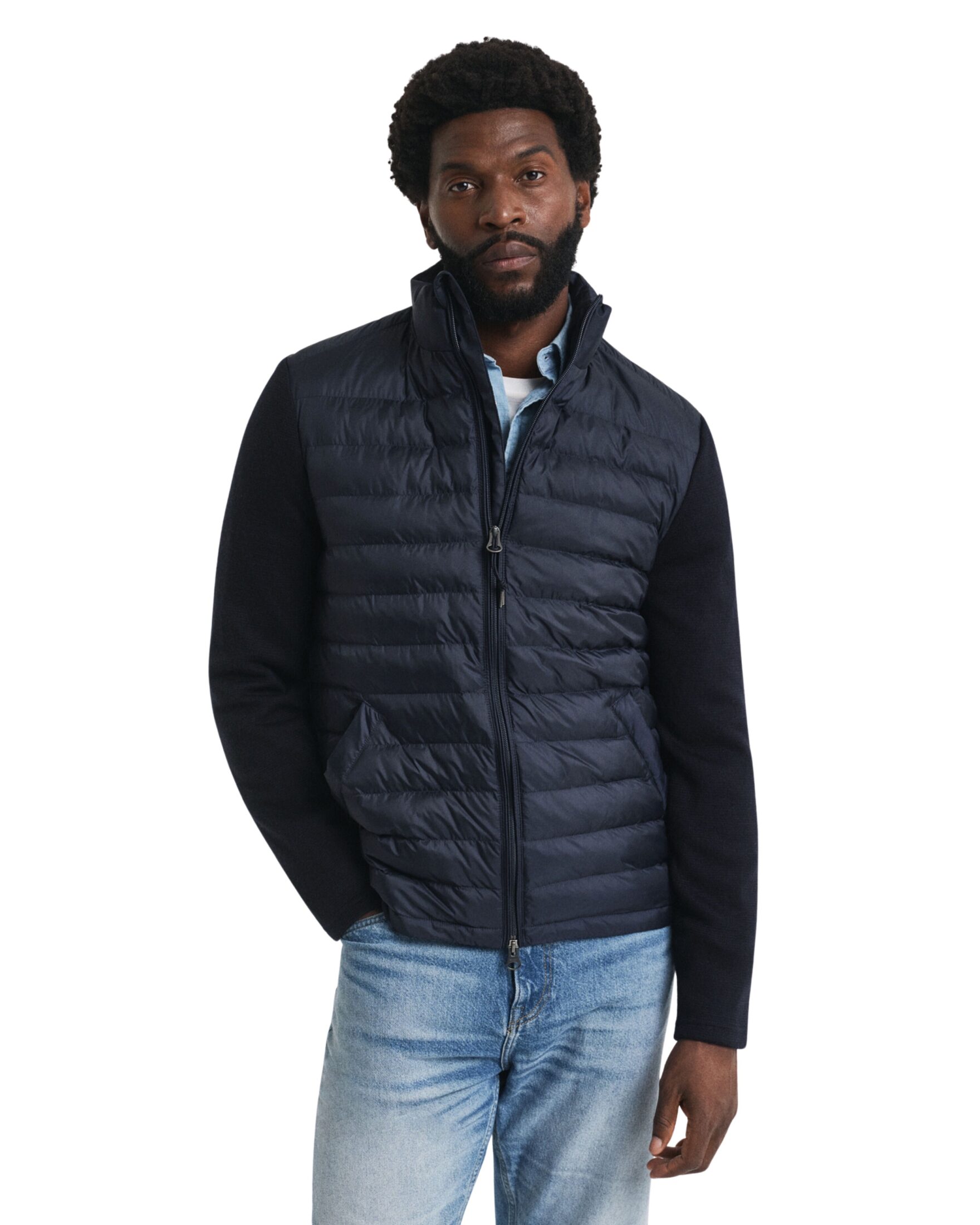 Jakke til herre fra Gant. En moderne og allsidig jakke med strikkede ermer i myk ullblanding og vattert front og rygg i resirkulert polyester. Den kombinerer varme og bevegelighet med et stilrent uttrykk. Perfekt som et lett ytterlag eller under en frakk på kjølige dager.
