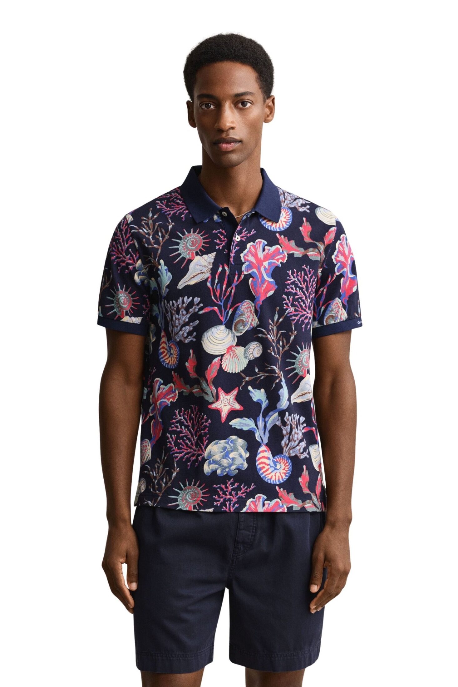 Piqué til herre fra GANT. En klassisk piqué i myk bomull med normal passform. Modellen har knappestolpe, splitter i sidene og et sesongbasert helprint som gir et mer lekent uttrykk. Brodert GANT-logo på ermet setter en diskret signatur på designet.