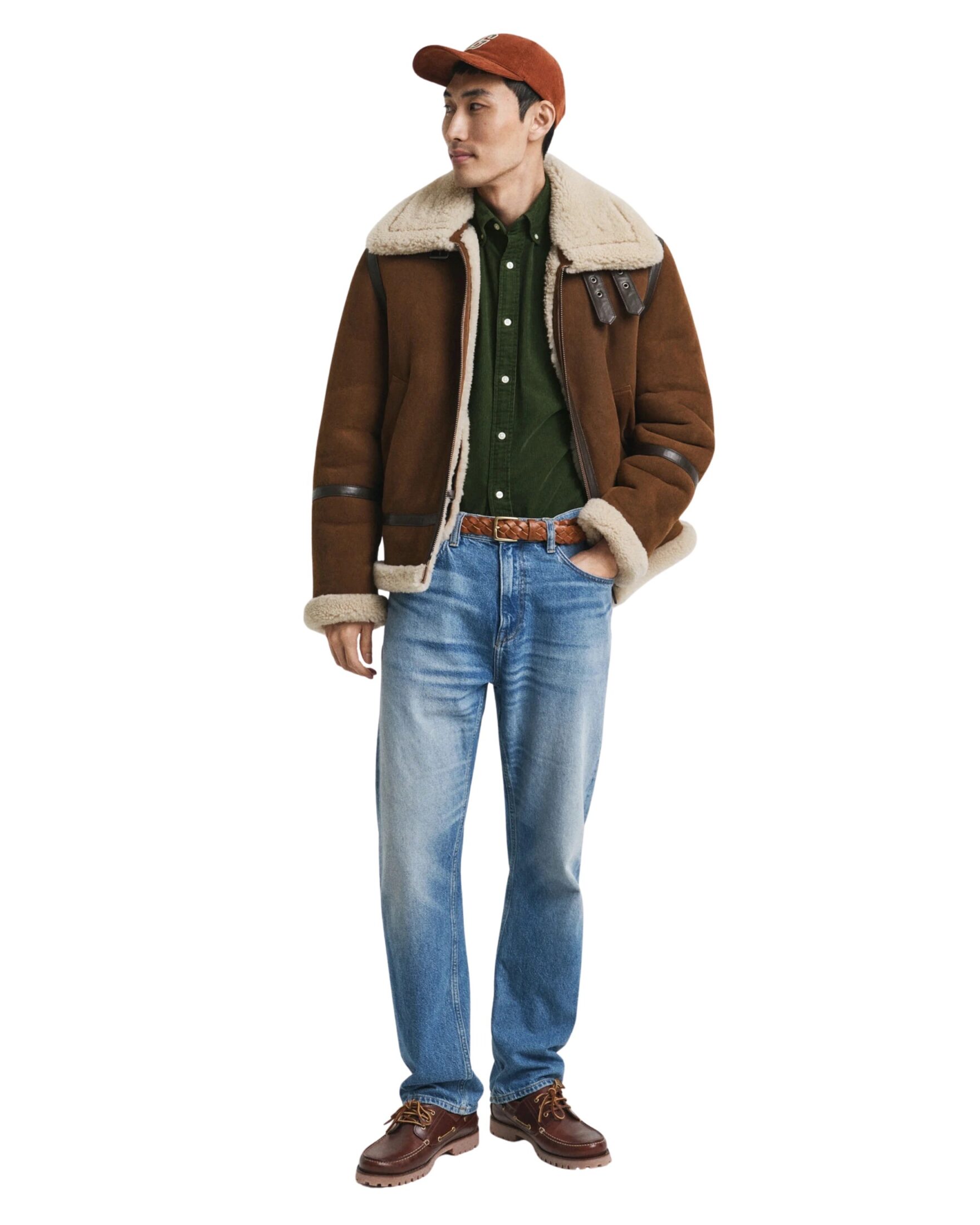 Skjorte til herre fra Gant. Laget av førsteklasses bomullsfløyel, og er et must for høstsesongen. Skjorten har button down-krage, justerbare mansjetter, buet fald, en boksfold og hempe bak, samt et broderi med Gant-skjoldlogo.
