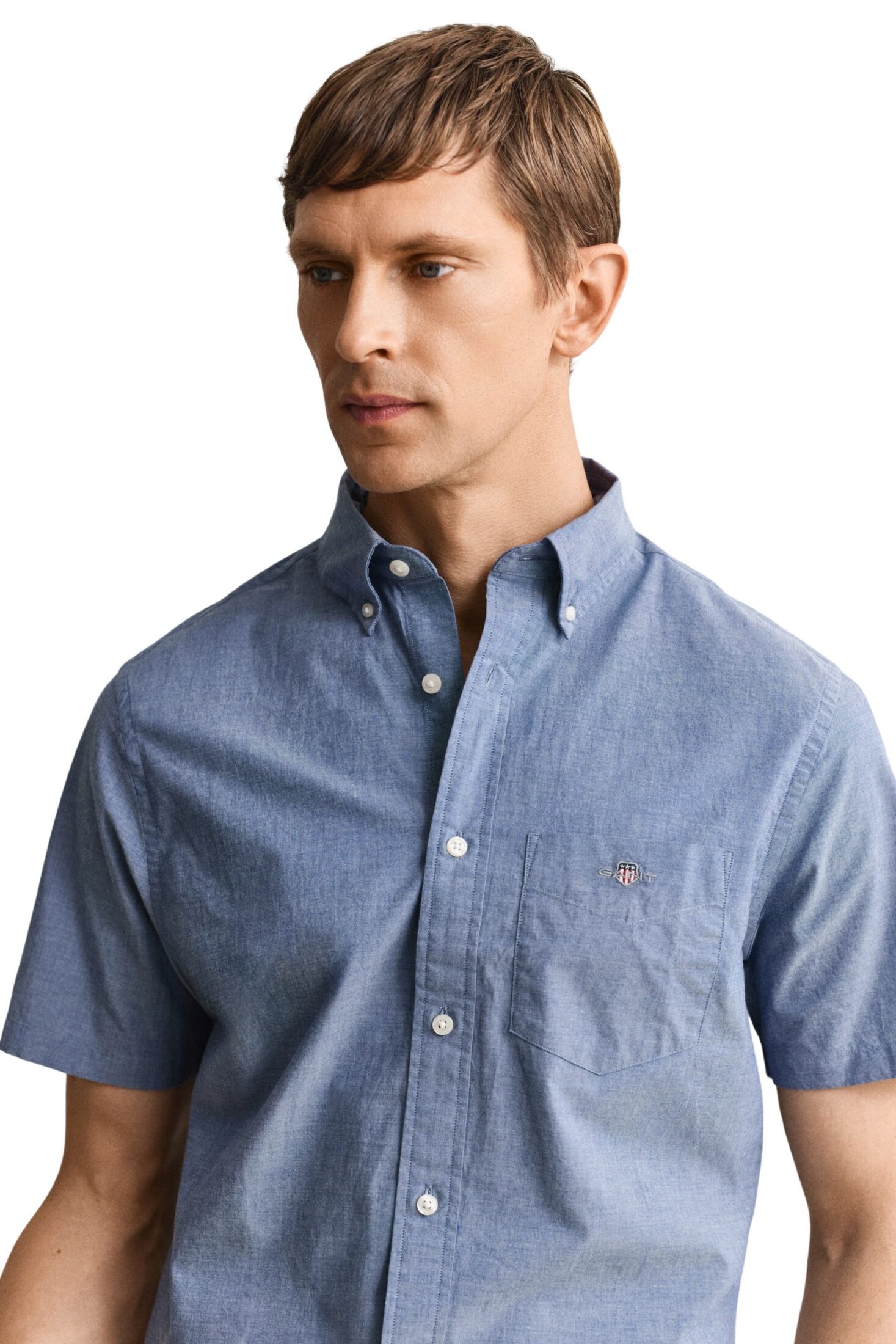 Kortermet skjorte til herre fra Gant. Laget i en slitesterk poplinvev, er denne klassiske bomullsskjorten avgjørende for enhver preppy garderobe. Denne skjorten har en normal passform og er designet med korte ermer for de varmere sommermånedene.