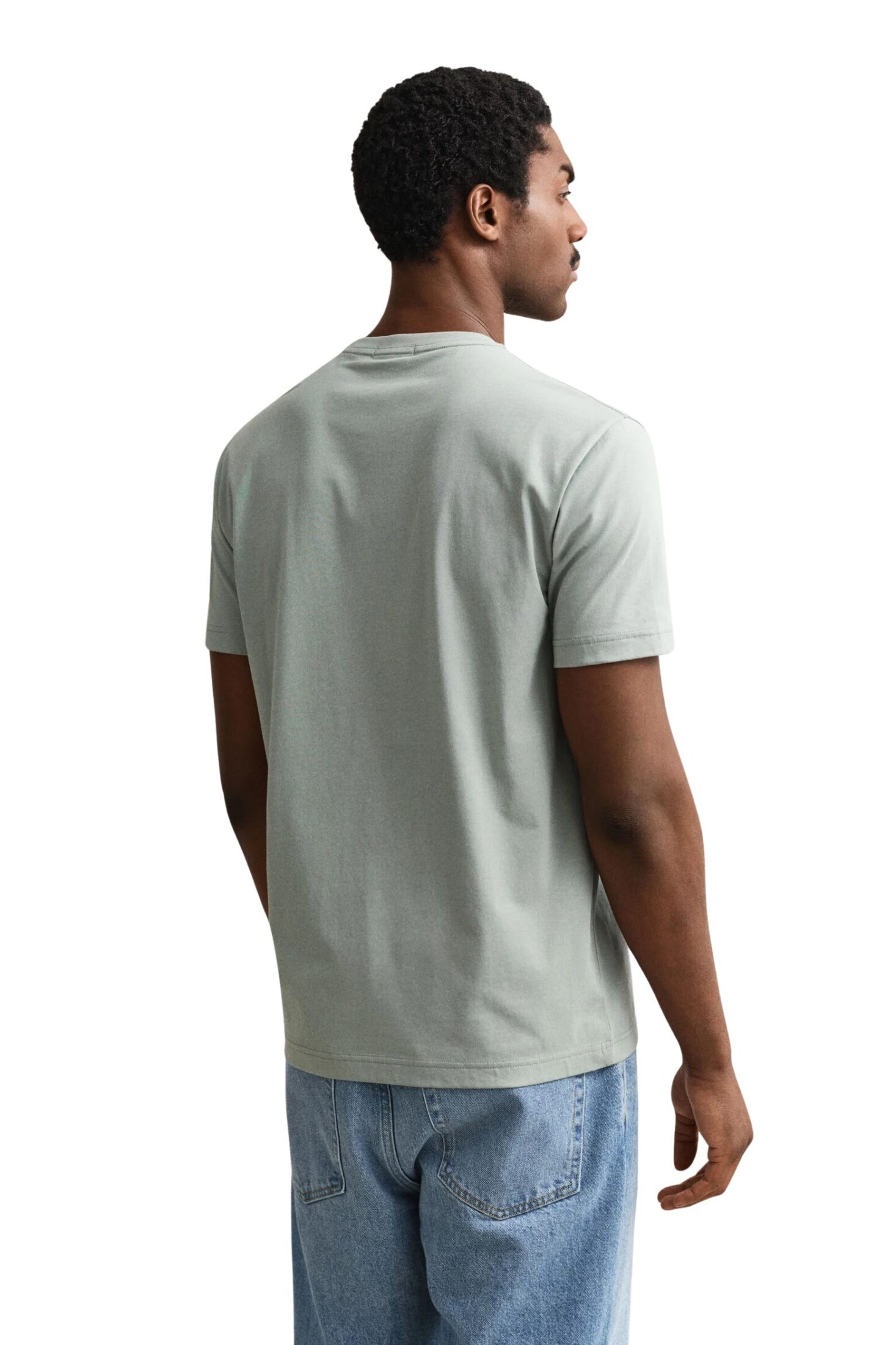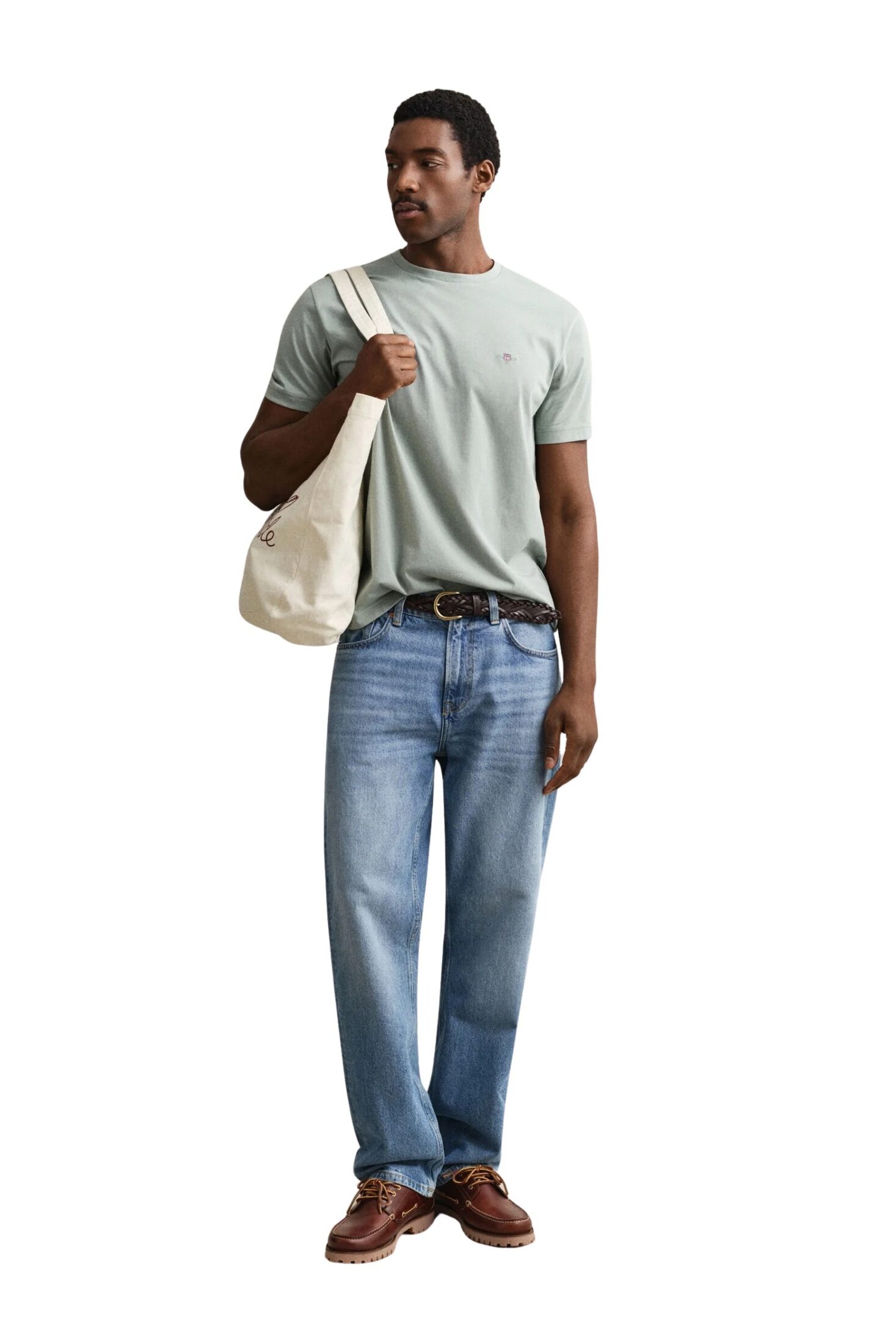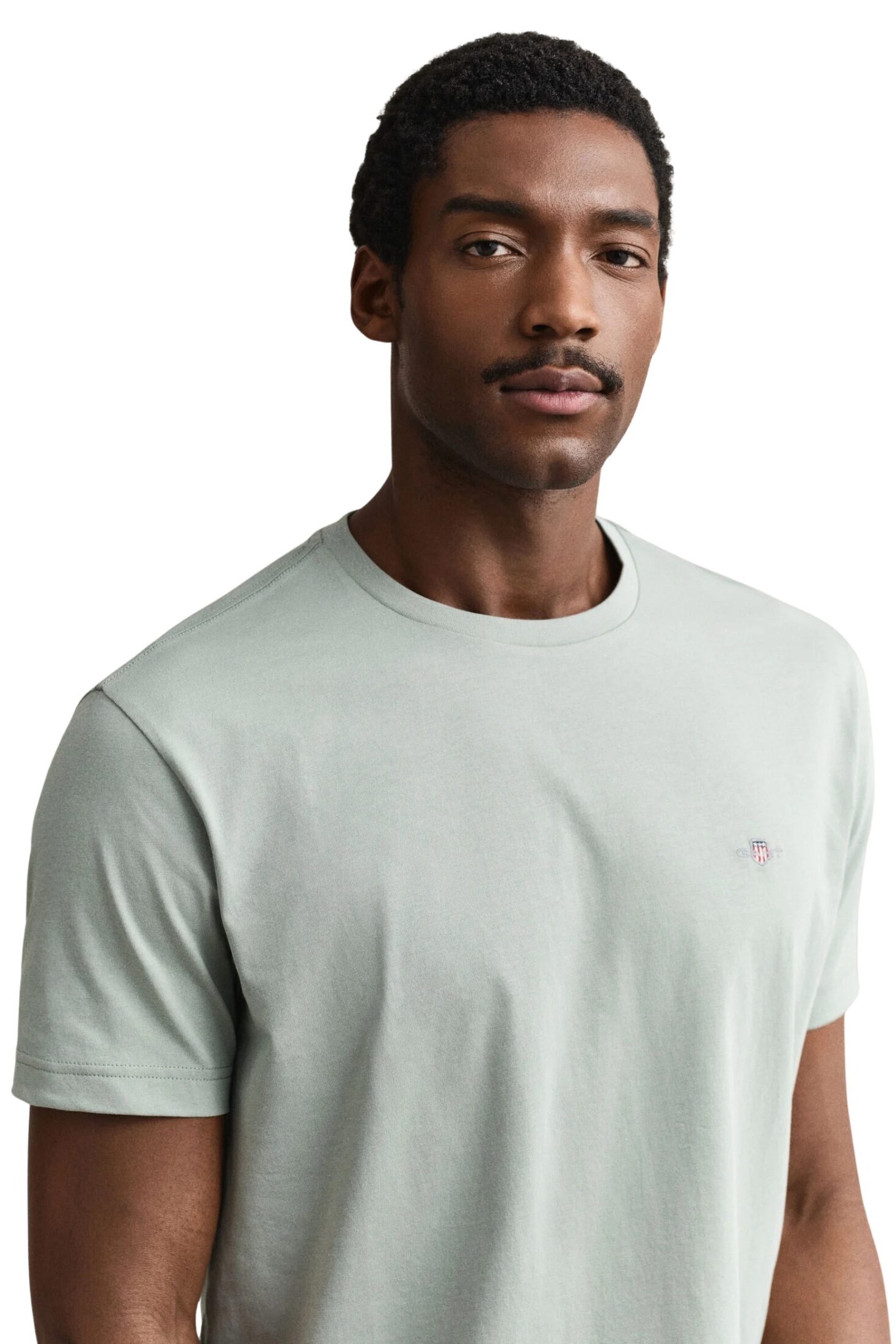 T-skjorte til herre fra Gant. En klassisk T-skjorte i myk bomull med normal passform og rund hals. Den har et diskret GANT Shield-broderi på brystet og et rent, tidløst uttrykk. Et allsidig basisplagg som passer like godt alene som under skjorte eller genser.