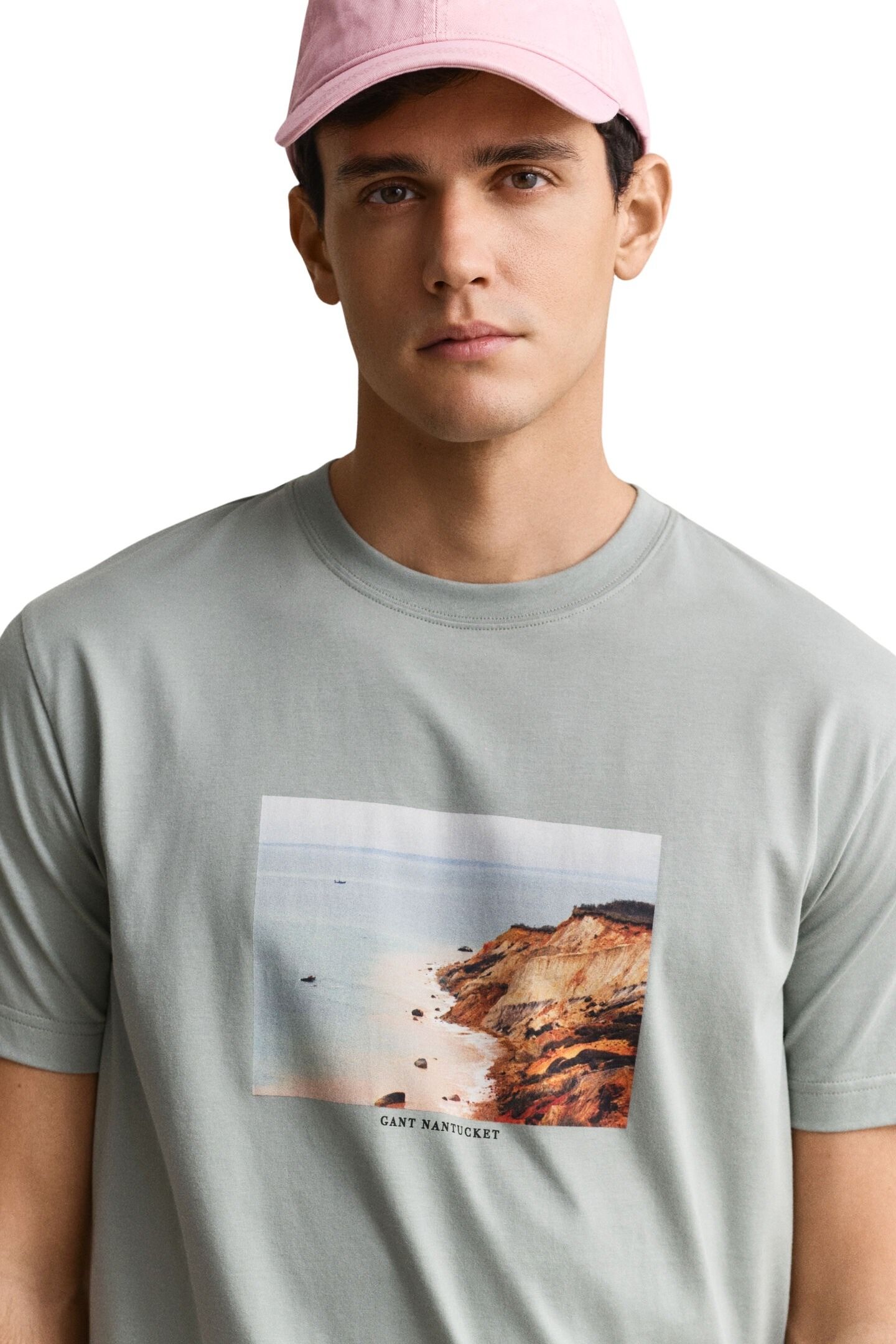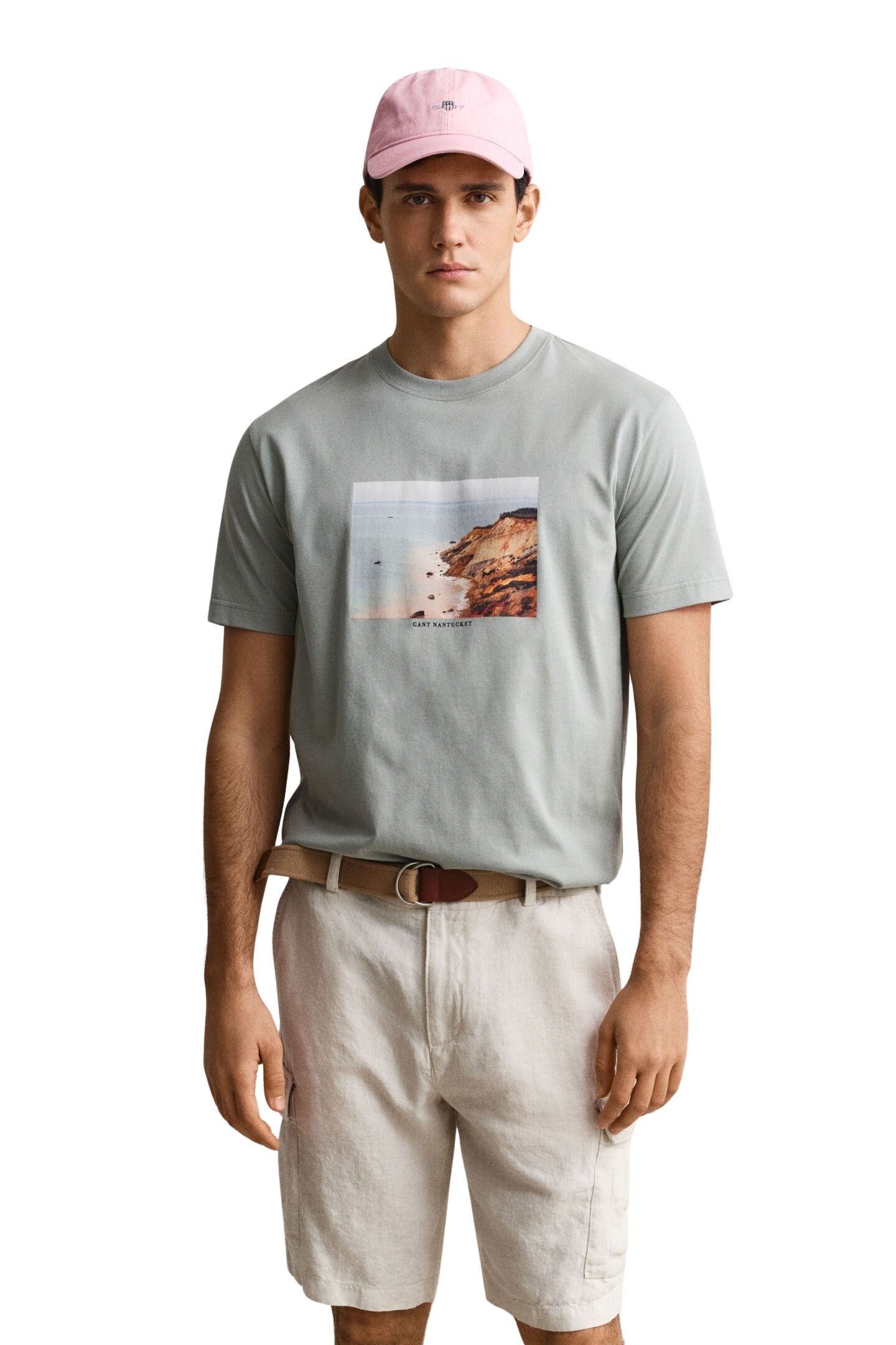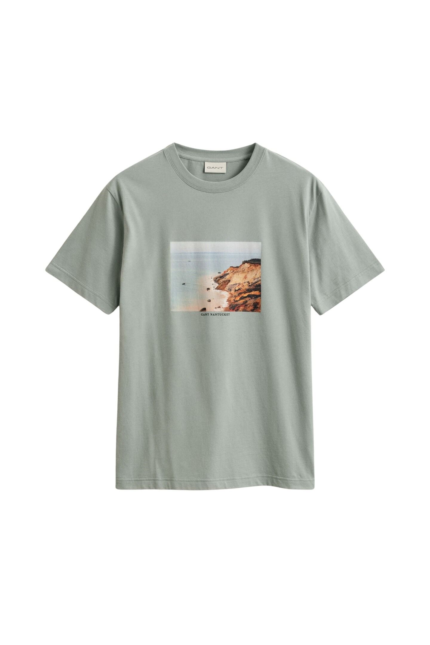 T-skjorte til herre fra Gant. T-skjorte i myk bomull med en behagelig passform. Den har klassisk rund hals og et sesongbasert print på brystet. Et enkelt og stilrent valg til hverdags.