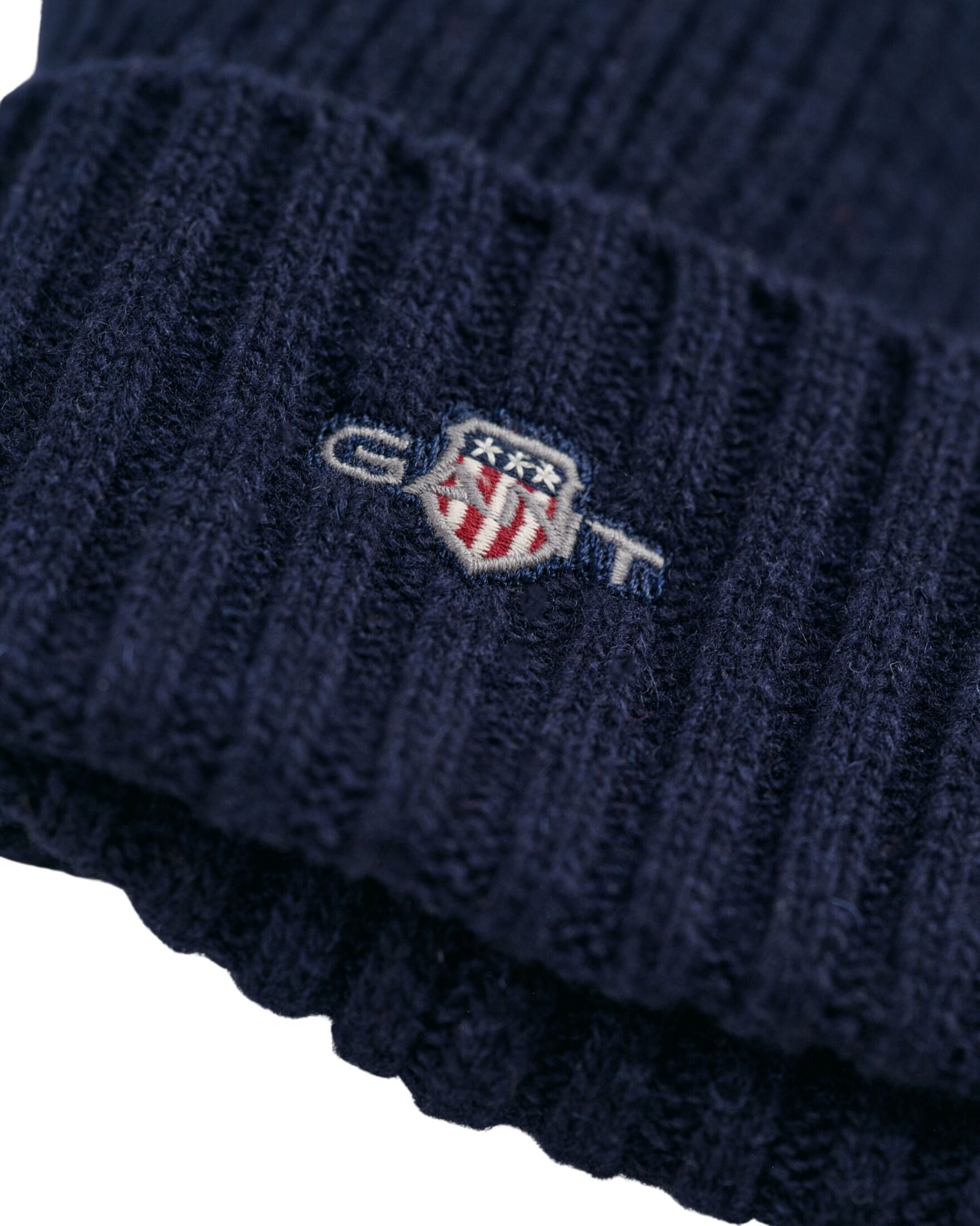 Lue til herre fra Gant. Laget i en luksuriøs ullblanding med fôr av mykt jerseystoff for ekstra varme og komfort. Luen har et lite og klassisk GANT-skjold  front og gir et stilfullt preg til vinterantrekket.