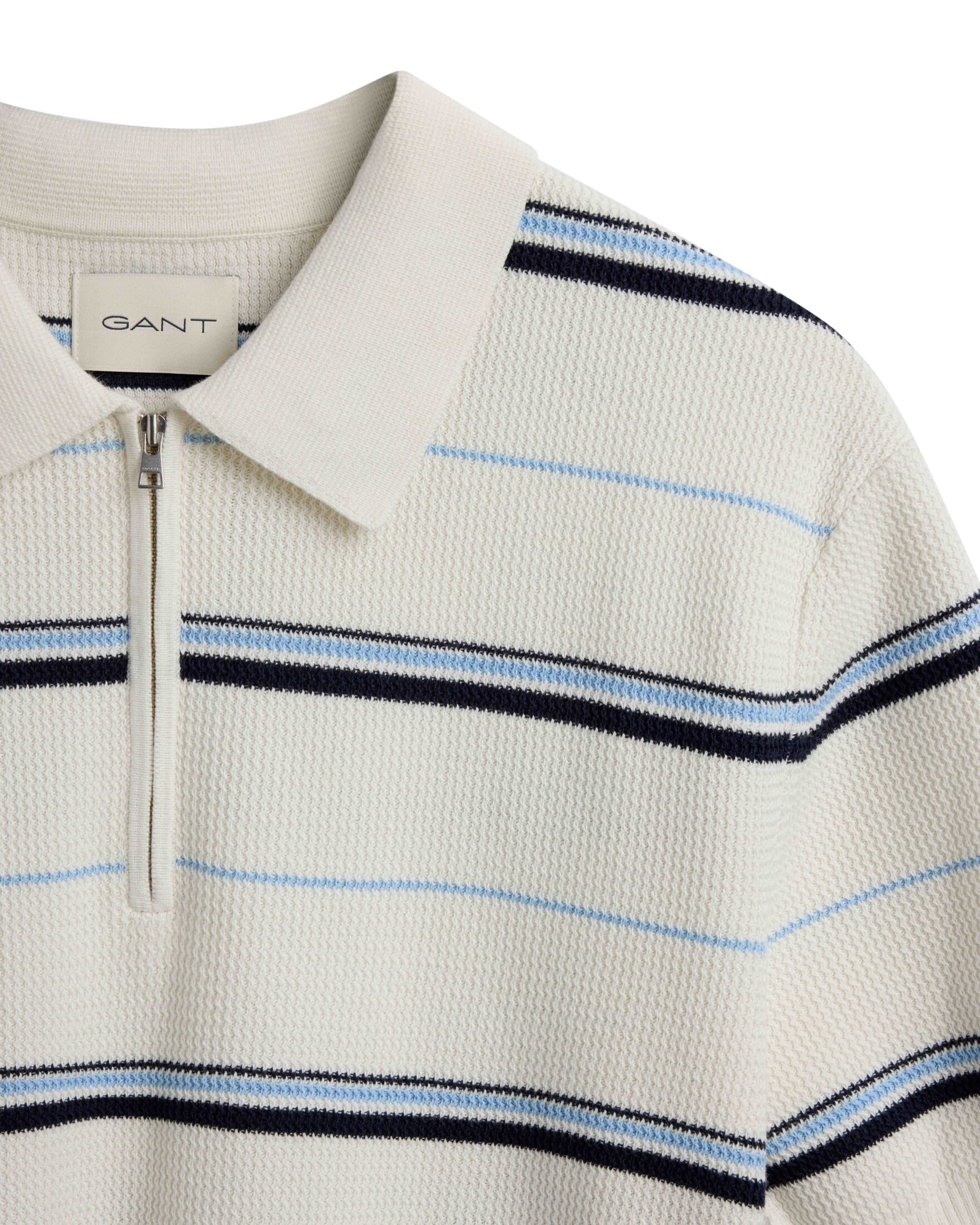 Strikket poloskjorte til herre fra GANT. Laget i en myk bomullskvalitet med komfortabel rett passform. Den har krage med kort glidelås og et klassisk stripemønster. Et stilrent valg som passer både til hverdags og fritid.