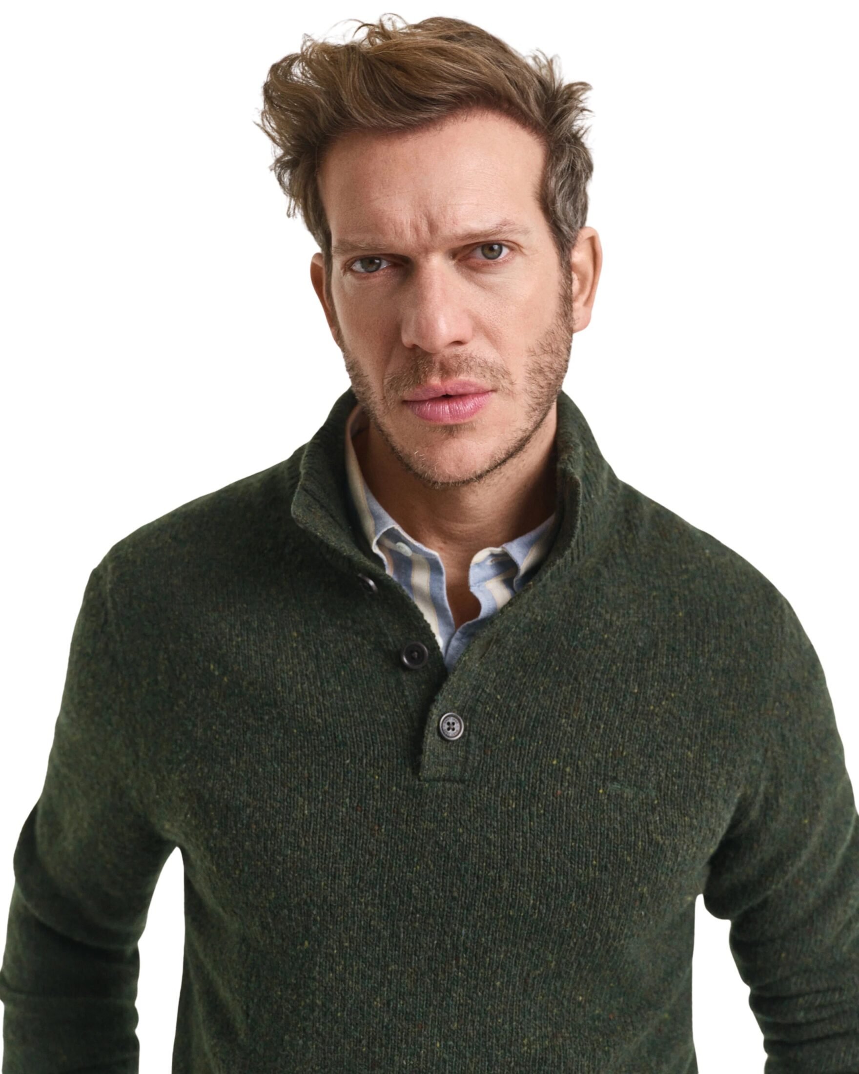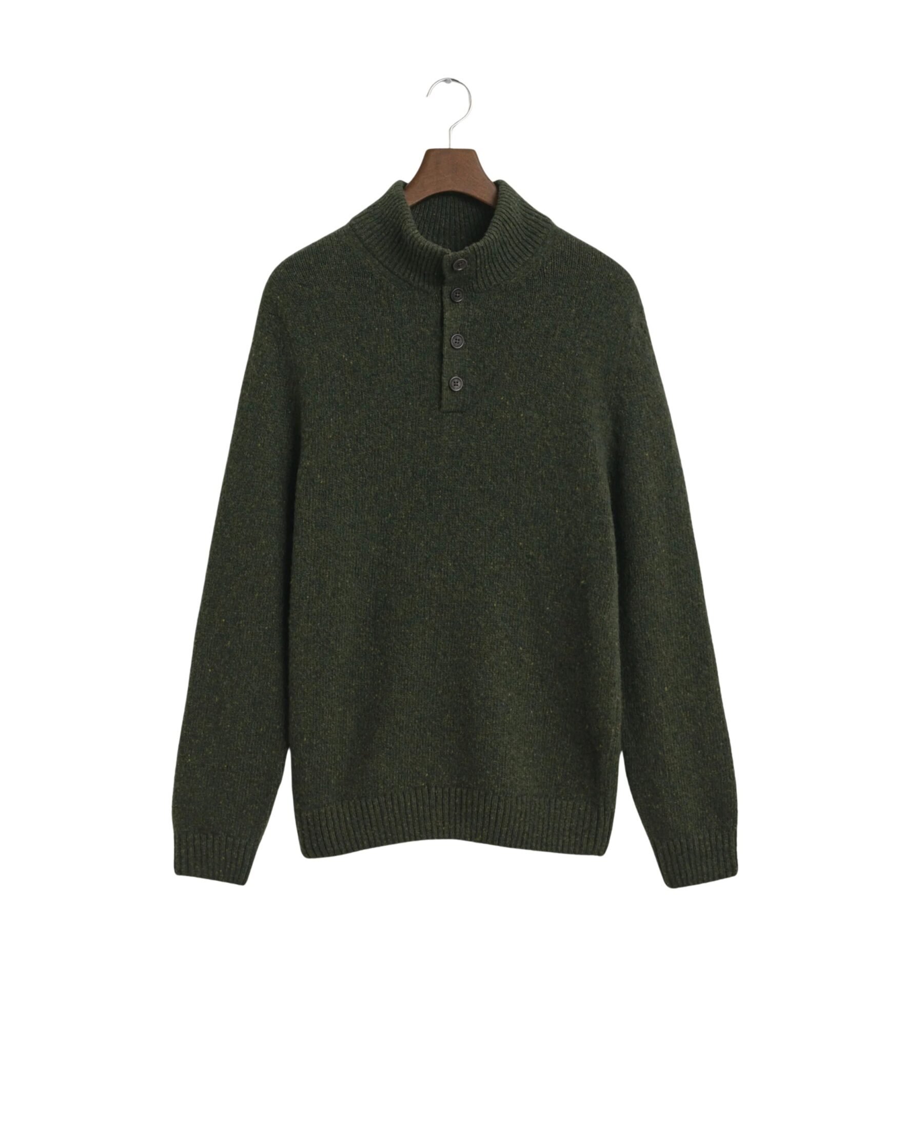 Wool Blend Nepps Half-Buttoned Sweater – Grønn