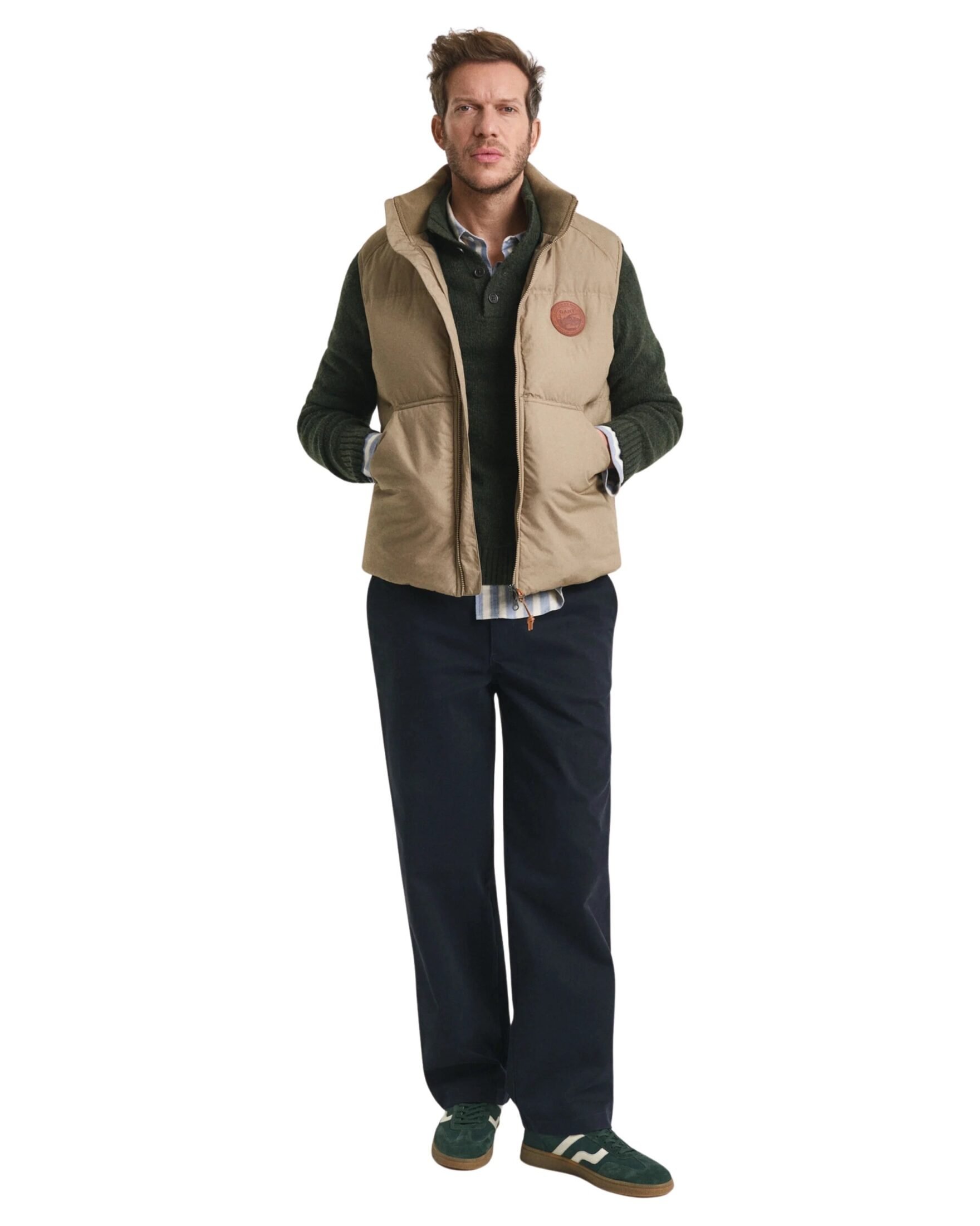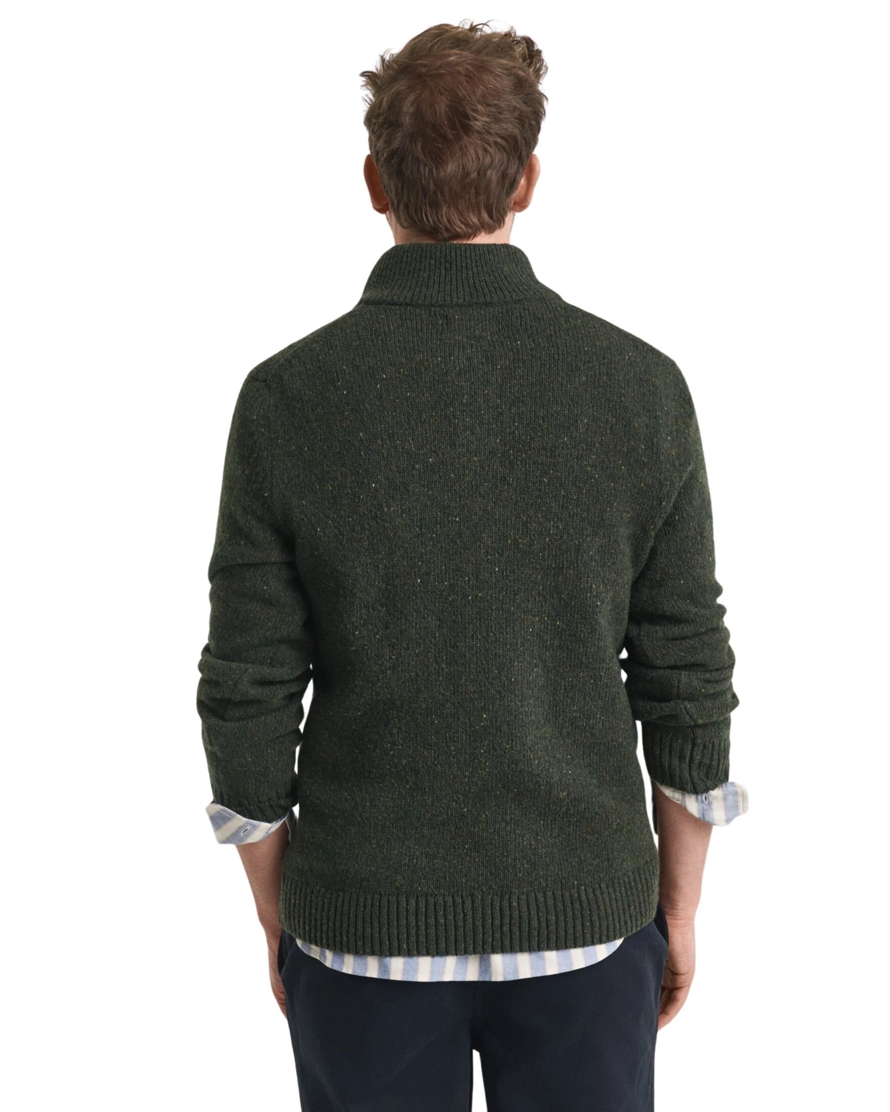 Genser til herre fra Gant. Strikket i en eksklusiv italiensk ullblanding med nepps-garn som gir en elegant, spettet tekstur. Den har en klassisk halvknepping med korozo-knapper, ribbestrikkede kanter og en subtil Gant-logo brodert på brystet. En tidløs favoritt som kombinerer komfort, kvalitet og et avslappet, sofistikert uttrykk. Perfekt både til jeans og chinos.