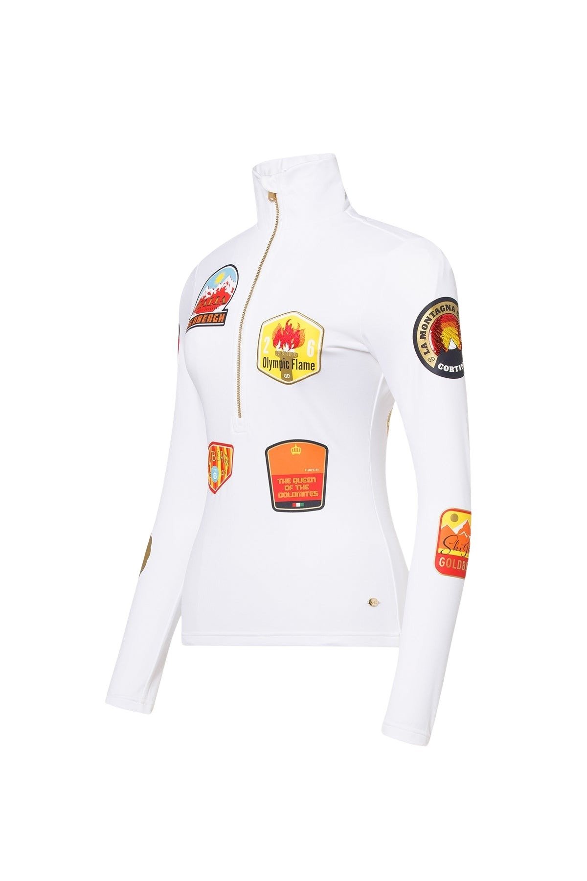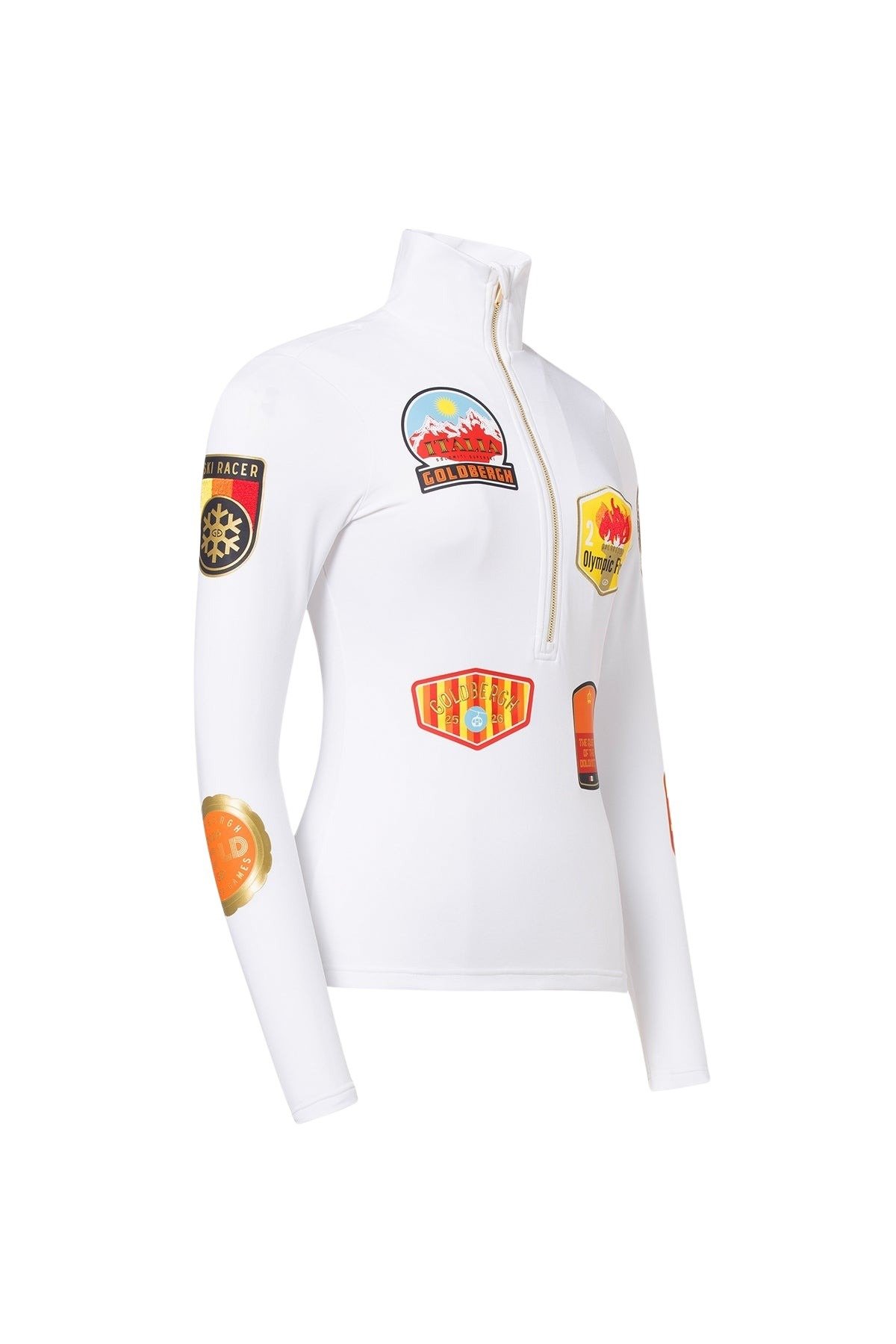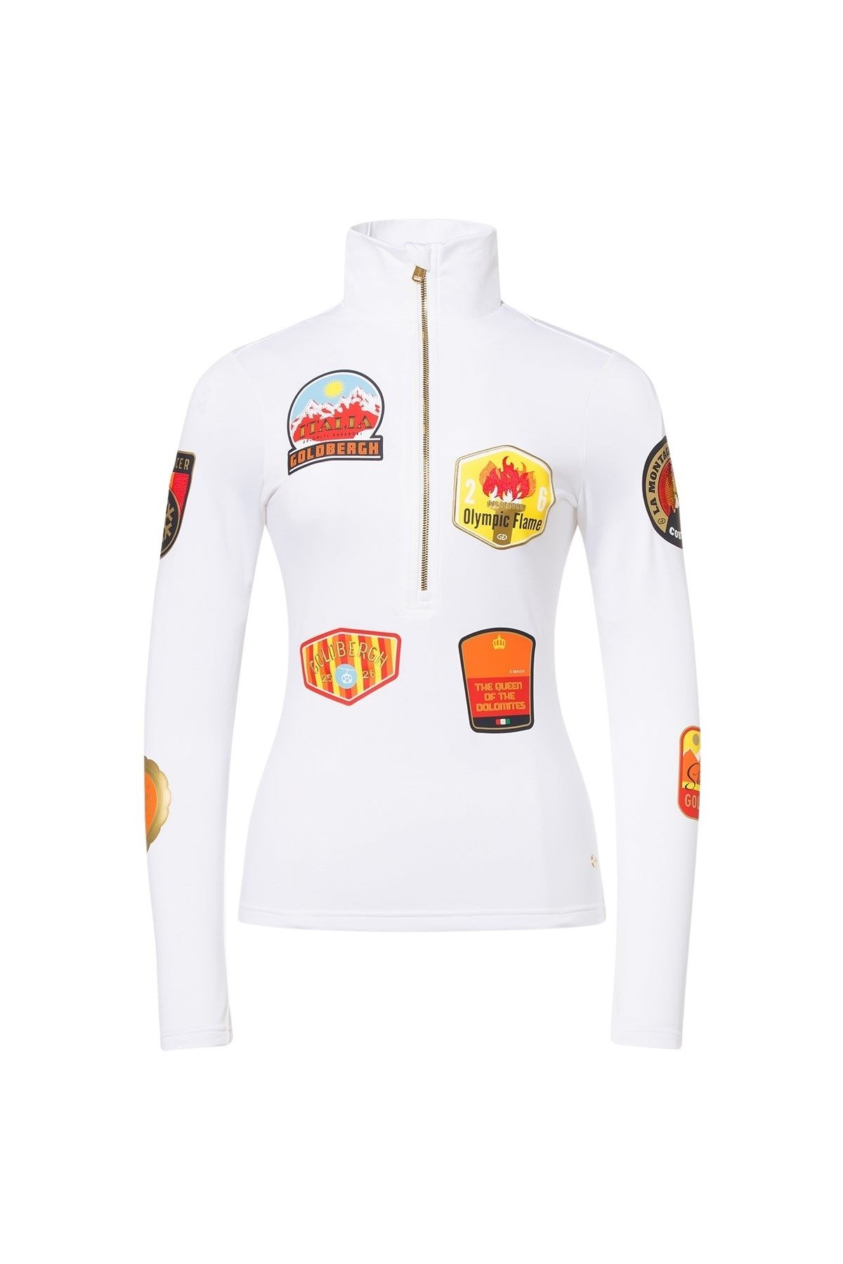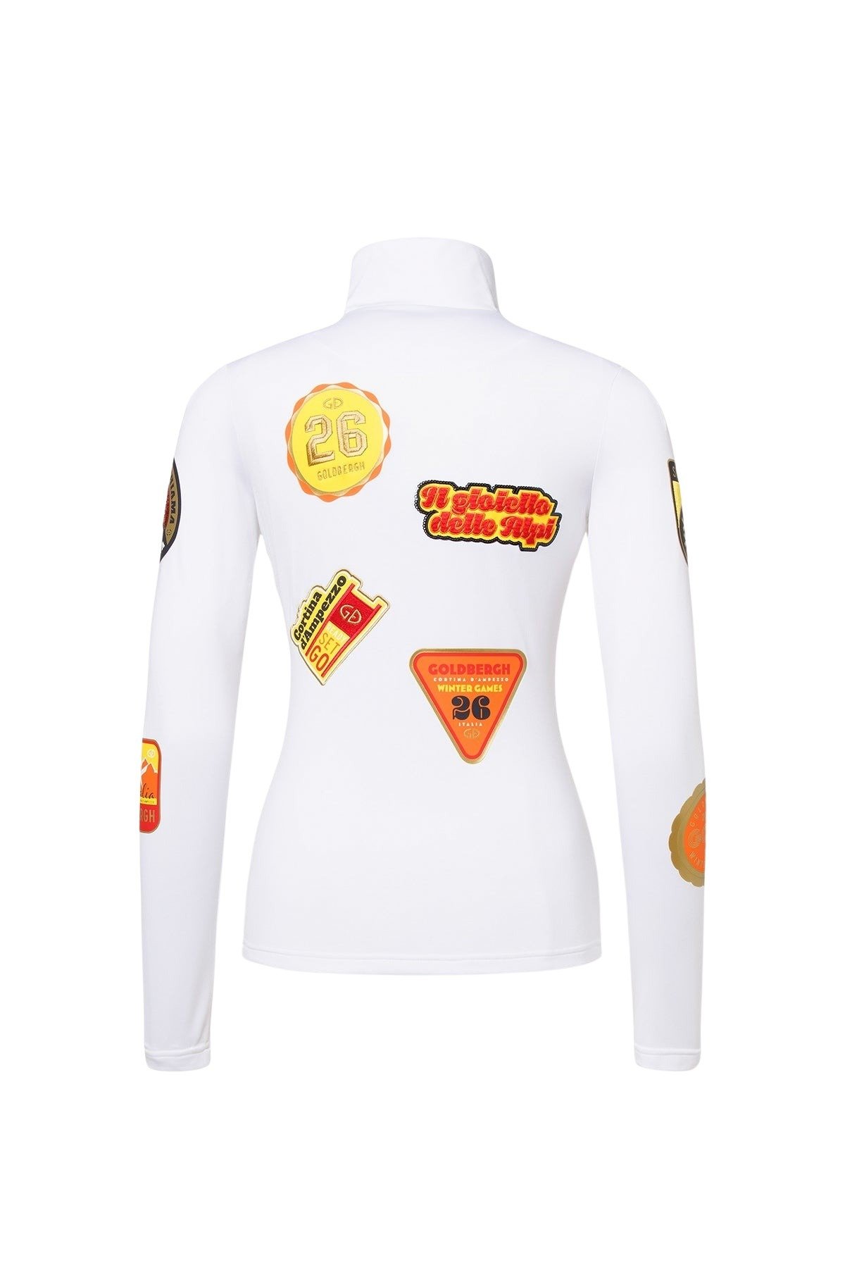 Skitopp til dame fra Goldbergh. Triumph er en teknisk og grafisk skitopp med heldekkende print og broderte merker. Laget i myk stretch-jersey med børstet innside for ekstra varme og komfort. Fukttransporterende og hurtigtørkende materiale med anti-odour gjør den perfekt som mellomlag til aktive dager i bakken.