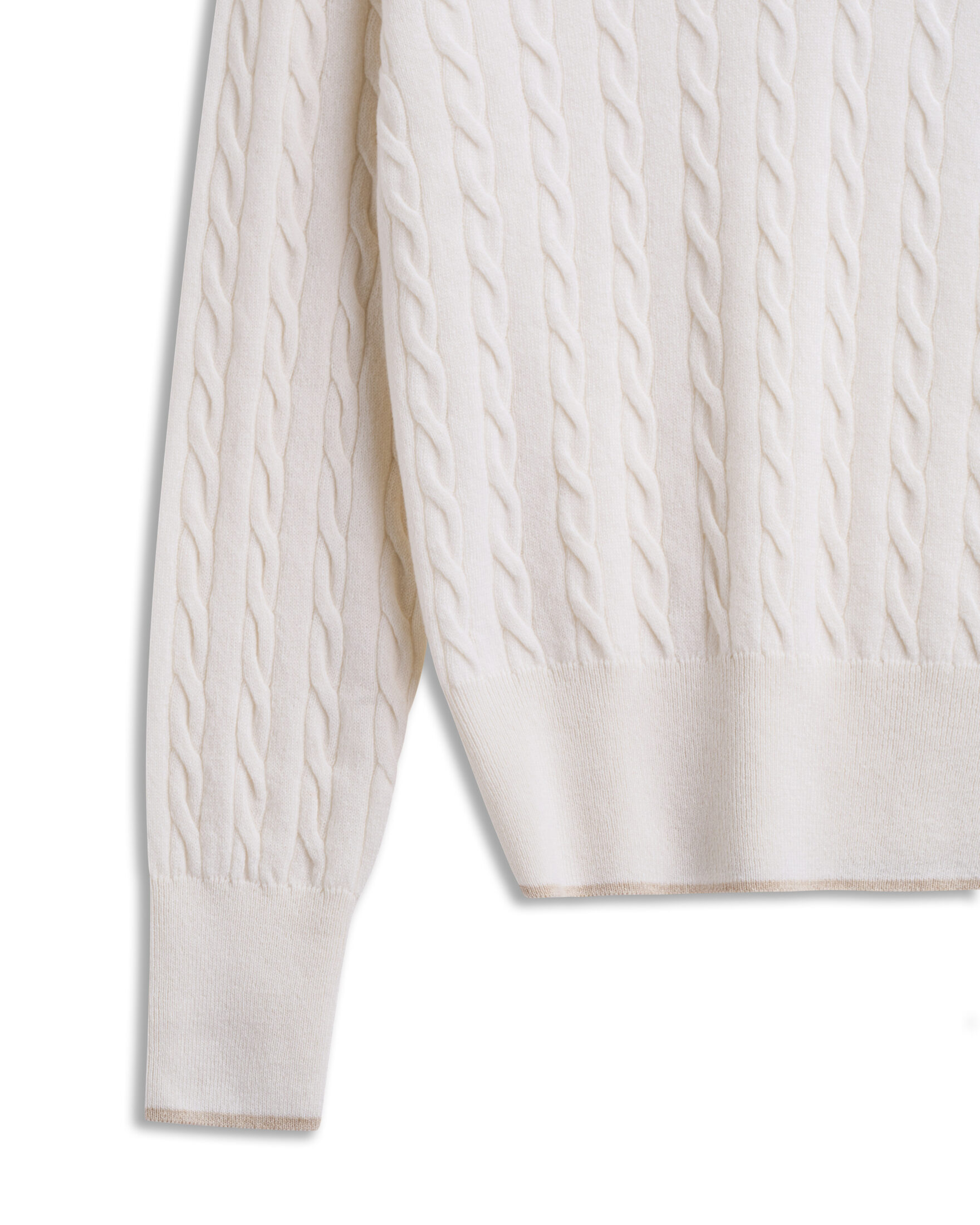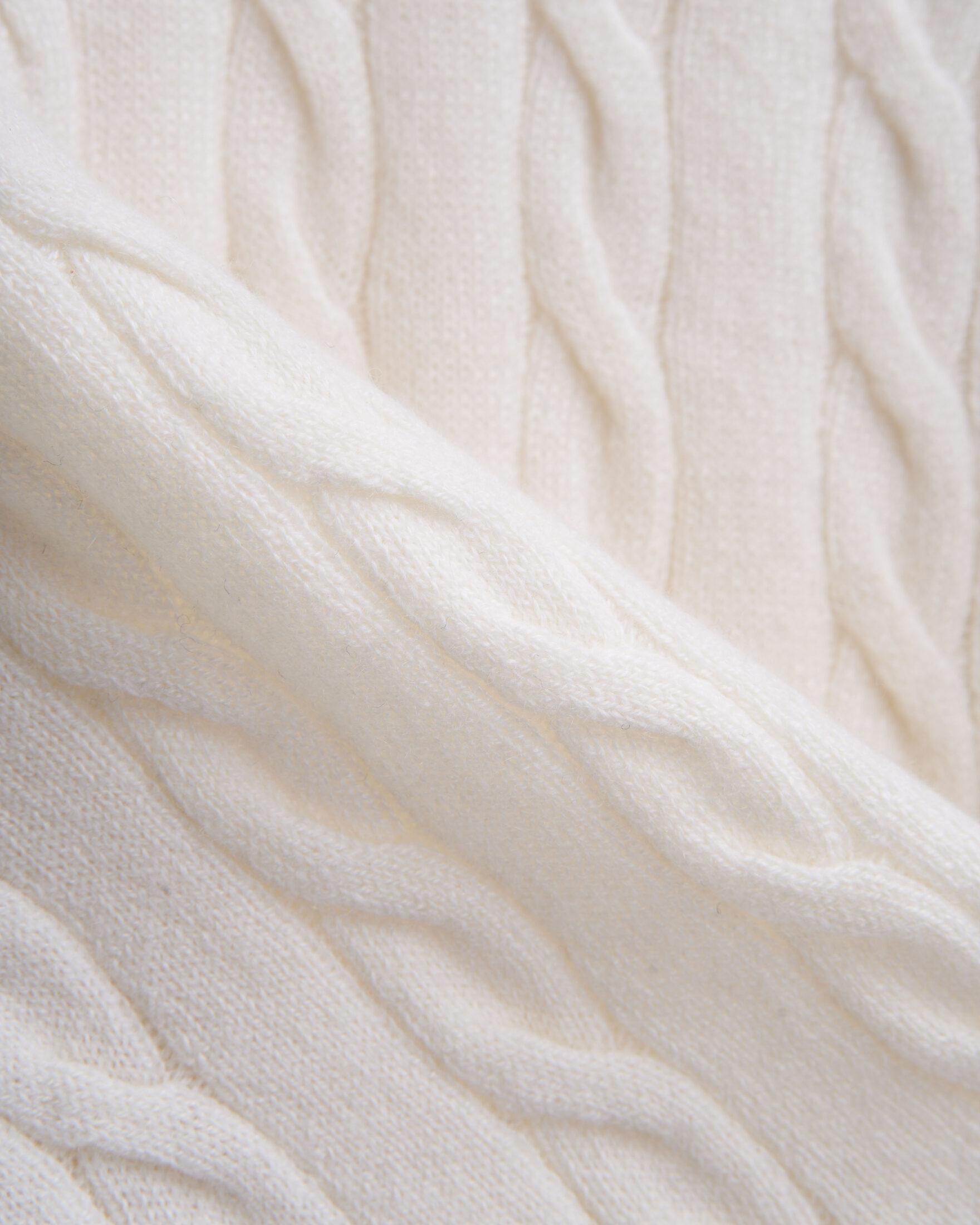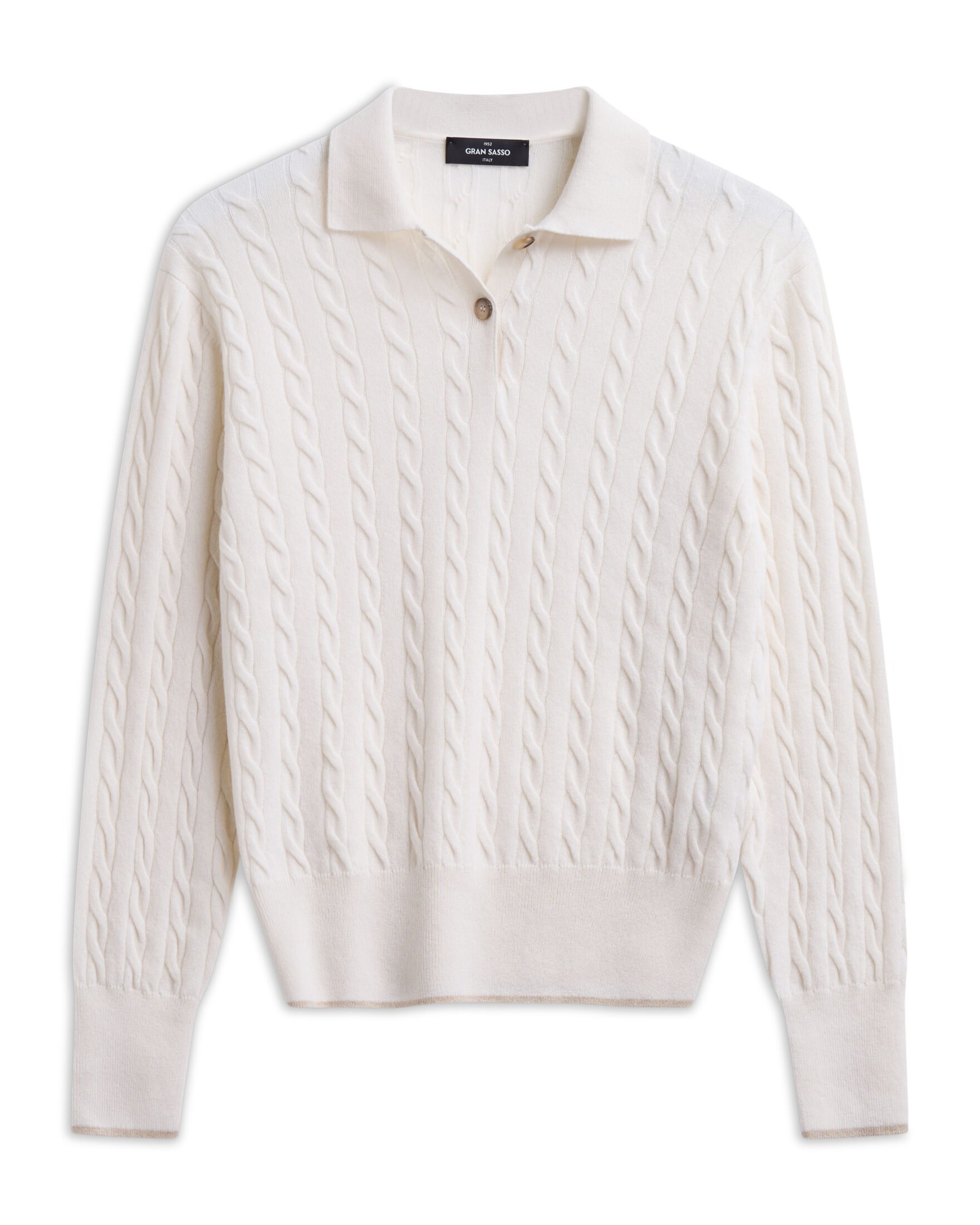 En elegant genser til dame fra Gran Sasso, laget i 100% kasjmir. Den klassiske kabelstrikken gir et tidløst og eksklusivt uttrykk, mens den myke kvaliteten sikrer maksimal komfort og varme. Med polokrage og knappestolpe fremstår genseren både raffinert og avslappet. Et luksuriøst basisplagg som passer perfekt til både hverdagsbruk og mer pyntede anledninger.