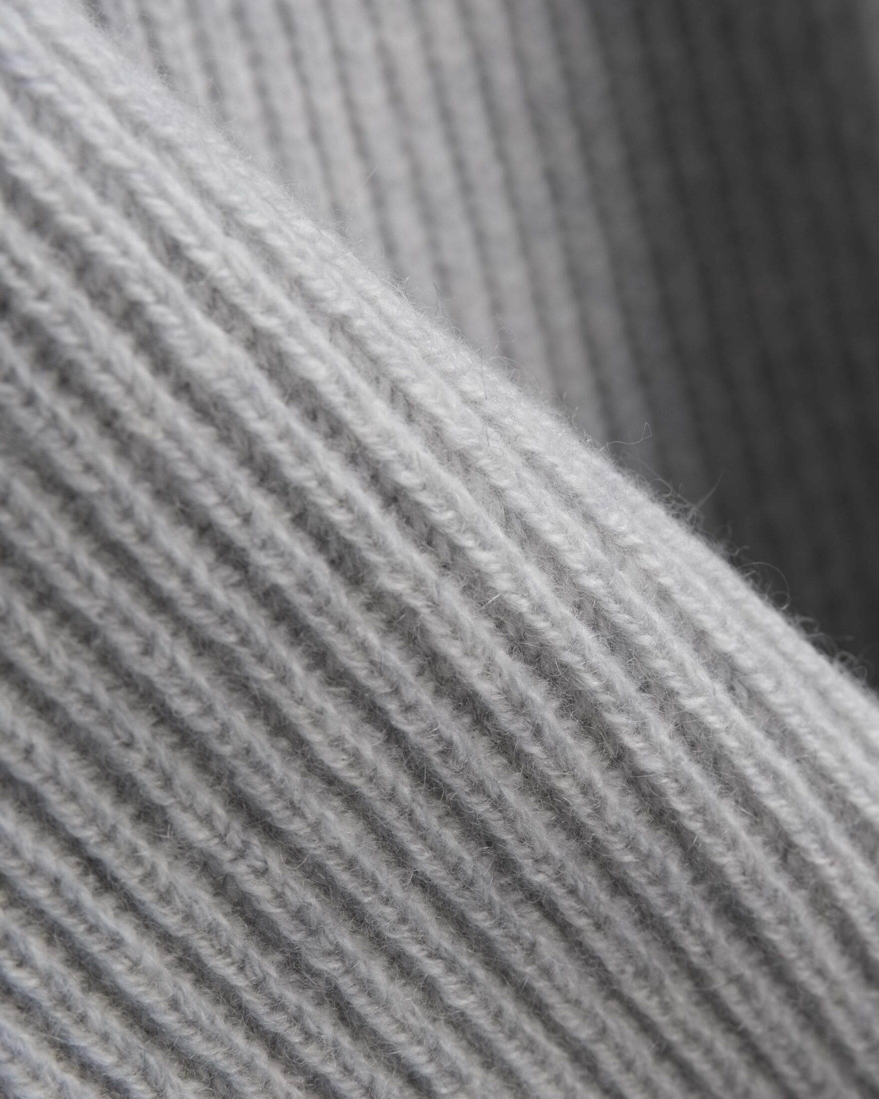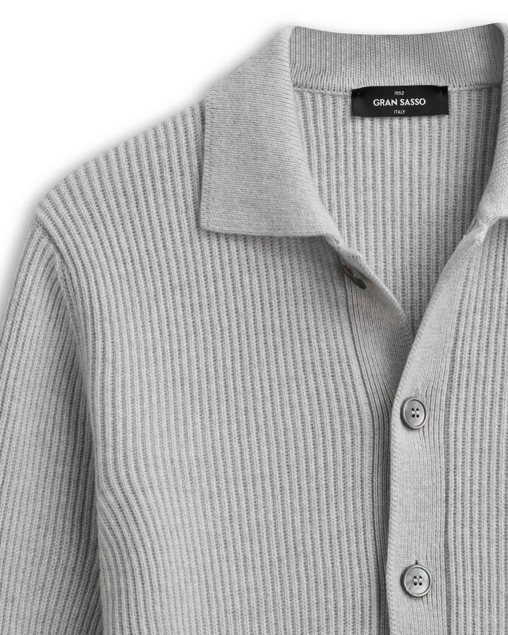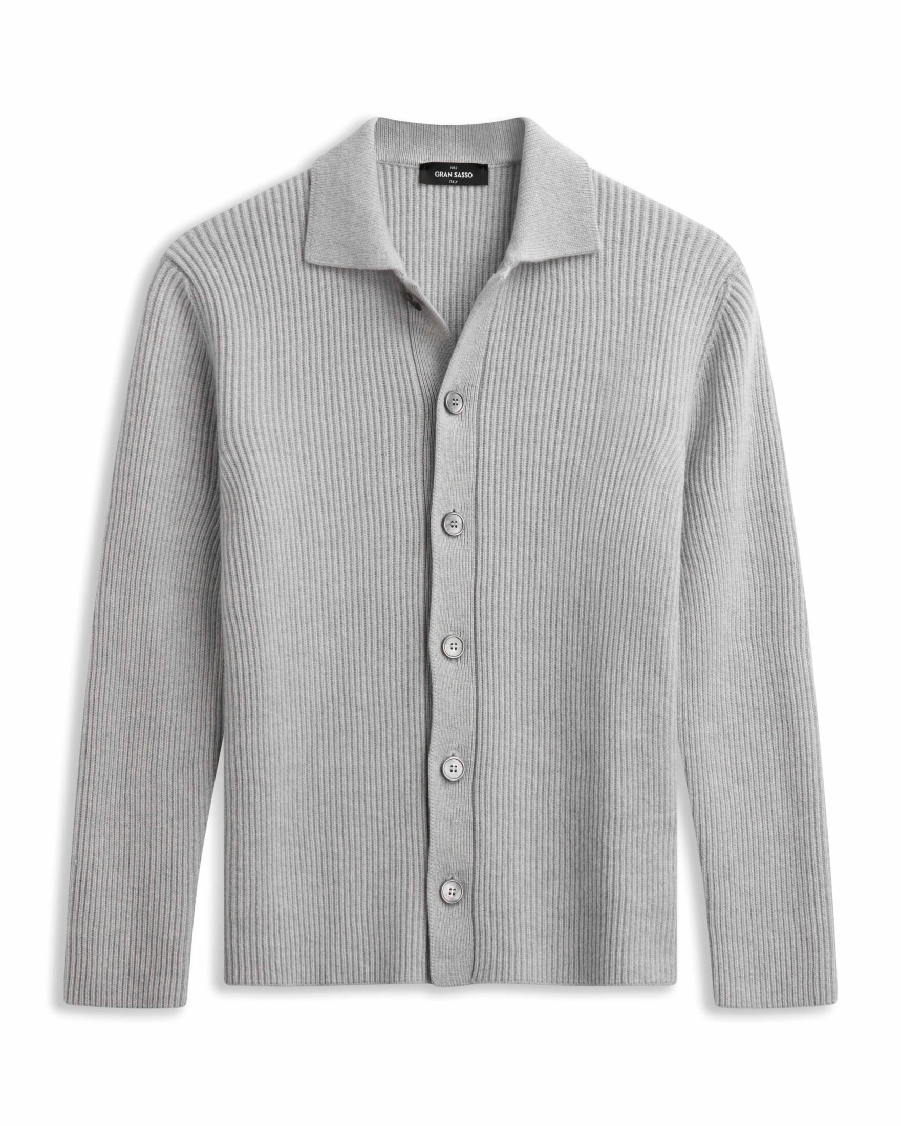 En eksklusiv cardigan fra Gran Sasso, strikket i 100% kasjmir. Den ribbestrikkede strukturen gir en sofistikert tekstur, mens den klassiske kragen og knappelukningen gjør plagget både tidløst og anvendelig. Den lette, men varme kvaliteten i kasjmir gir maksimal komfort og luksus, perfekt både til hverdags og mer formelle anledninger.