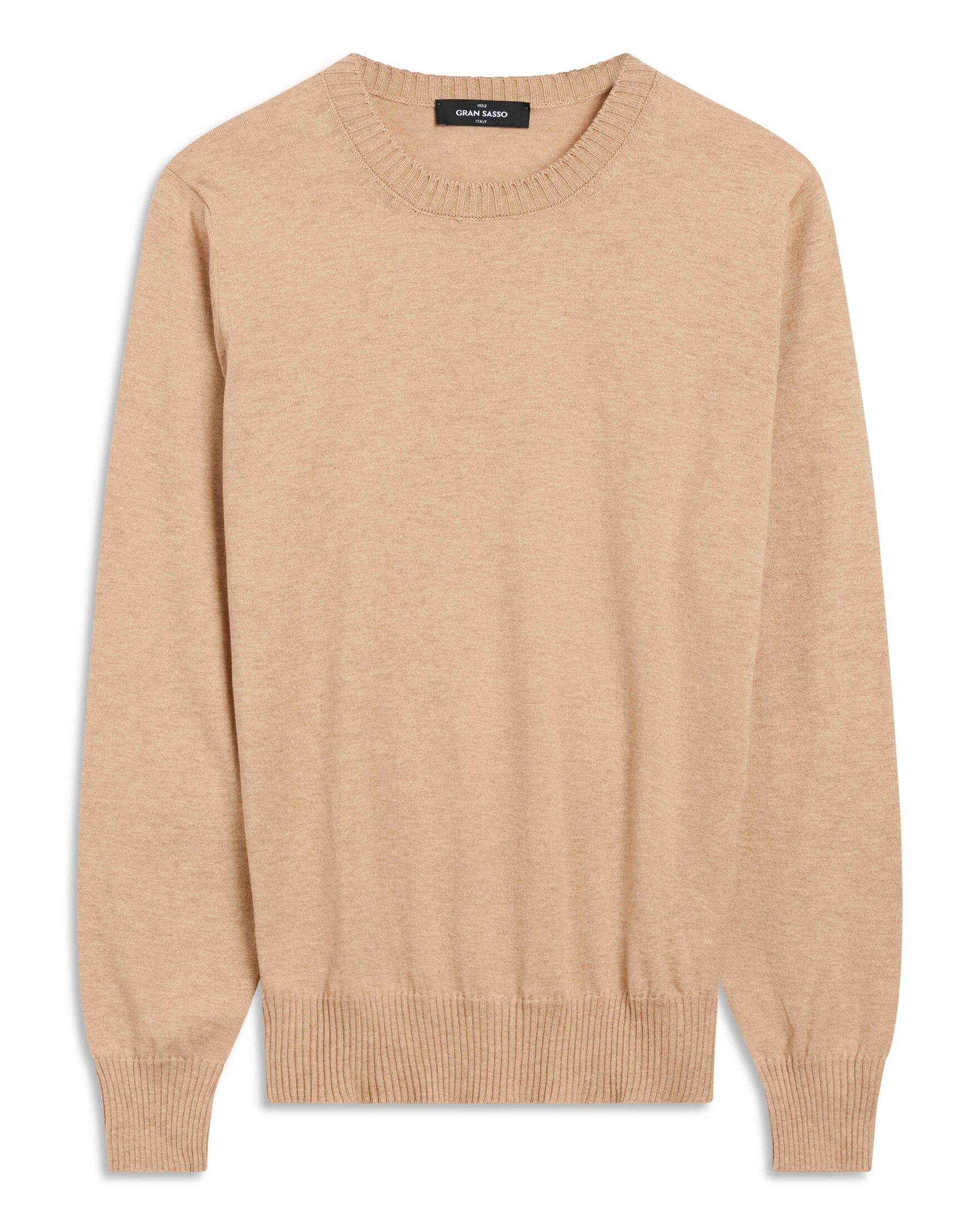 Eksklusiv strikkegenser fra Gran Sasso i en myk og behagelig blanding av bomull og kasjmir. Modellen har rund hals og ribbestrikkede kanter som gir en klassisk og velbalansert silhuett. En lett og luksuriøs genser som kombinerer komfort med et raffinert uttrykk. Perfekt til både hverdags og mer formelle anledninger.