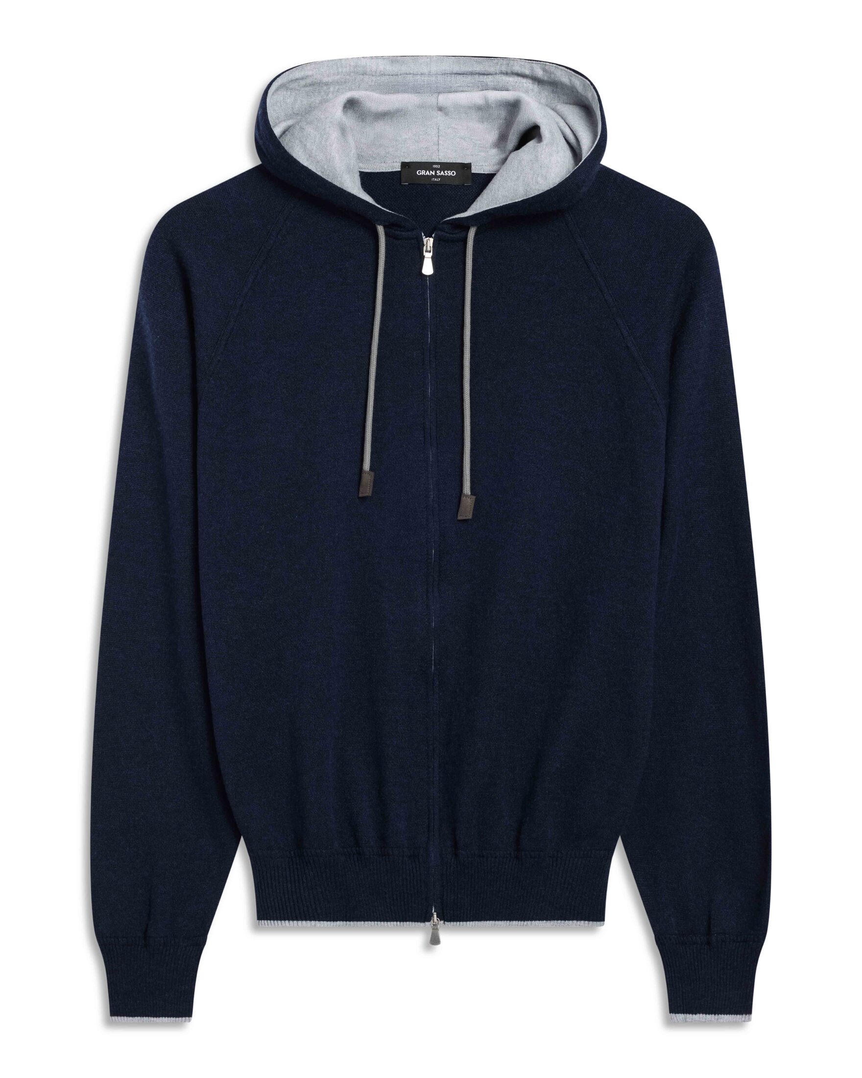 Strikket hettejakke fra Gran Sasso i en eksklusiv blanding av bomull og kasjmir. Modellen har toveis glidelås, hette med snøring og ribbestrikkede avslutninger for en komfortabel passform. En myk og luksuriøs zip-hoodie som kombinerer avslappet stil med raffinert kvalitet.