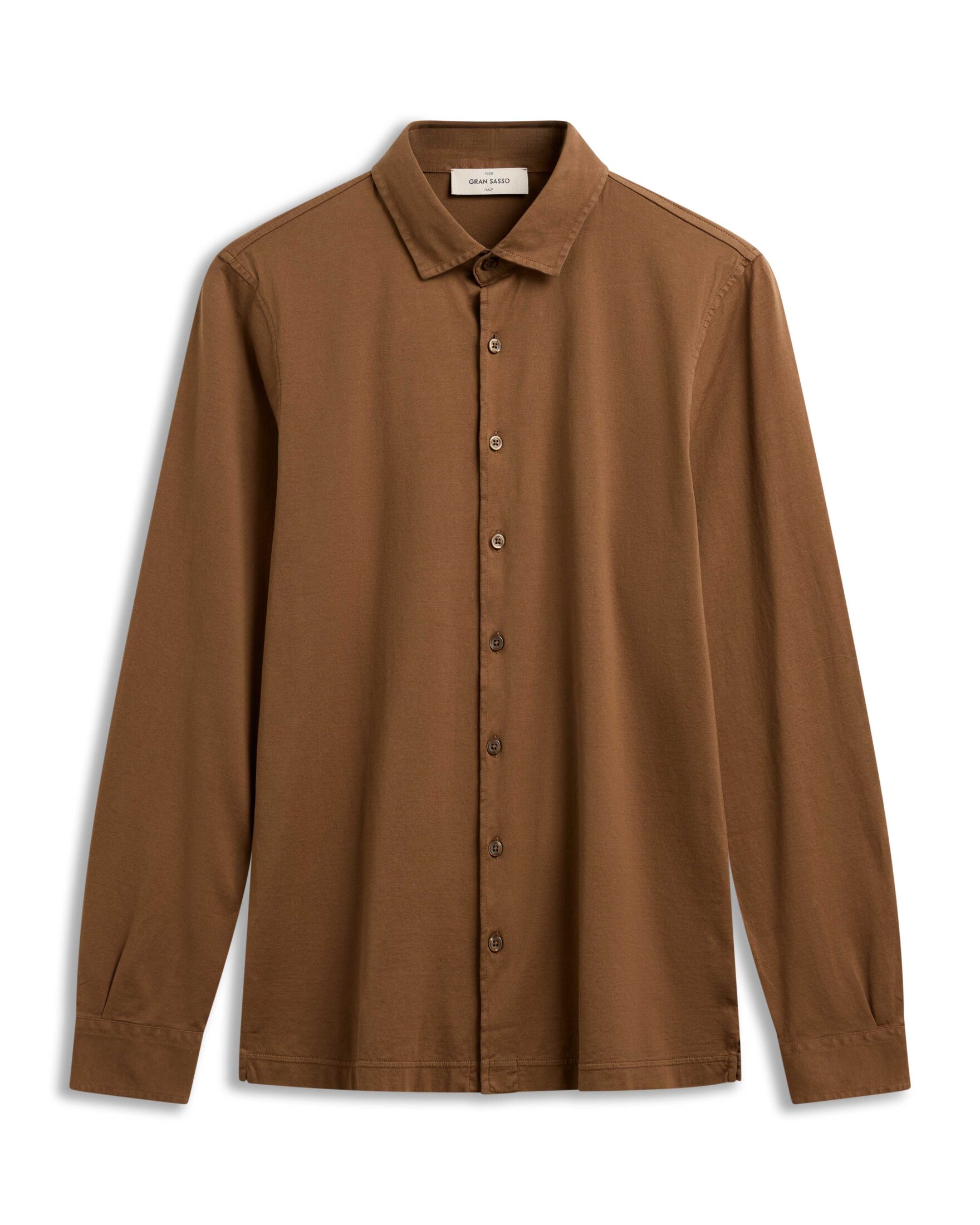 Elegant skjorte fra Gran Sasso laget i myk og komfortabel bomullsjersey. Modellen har klassisk krage, knappelukking i front og en glatt, lett elastisk kvalitet som gir en behagelig passform. En stilren skjorte som kombinerer komforten fra jersey med et sofistikert uttrykk. Perfekt både til dress og mer avslappede antrekk.