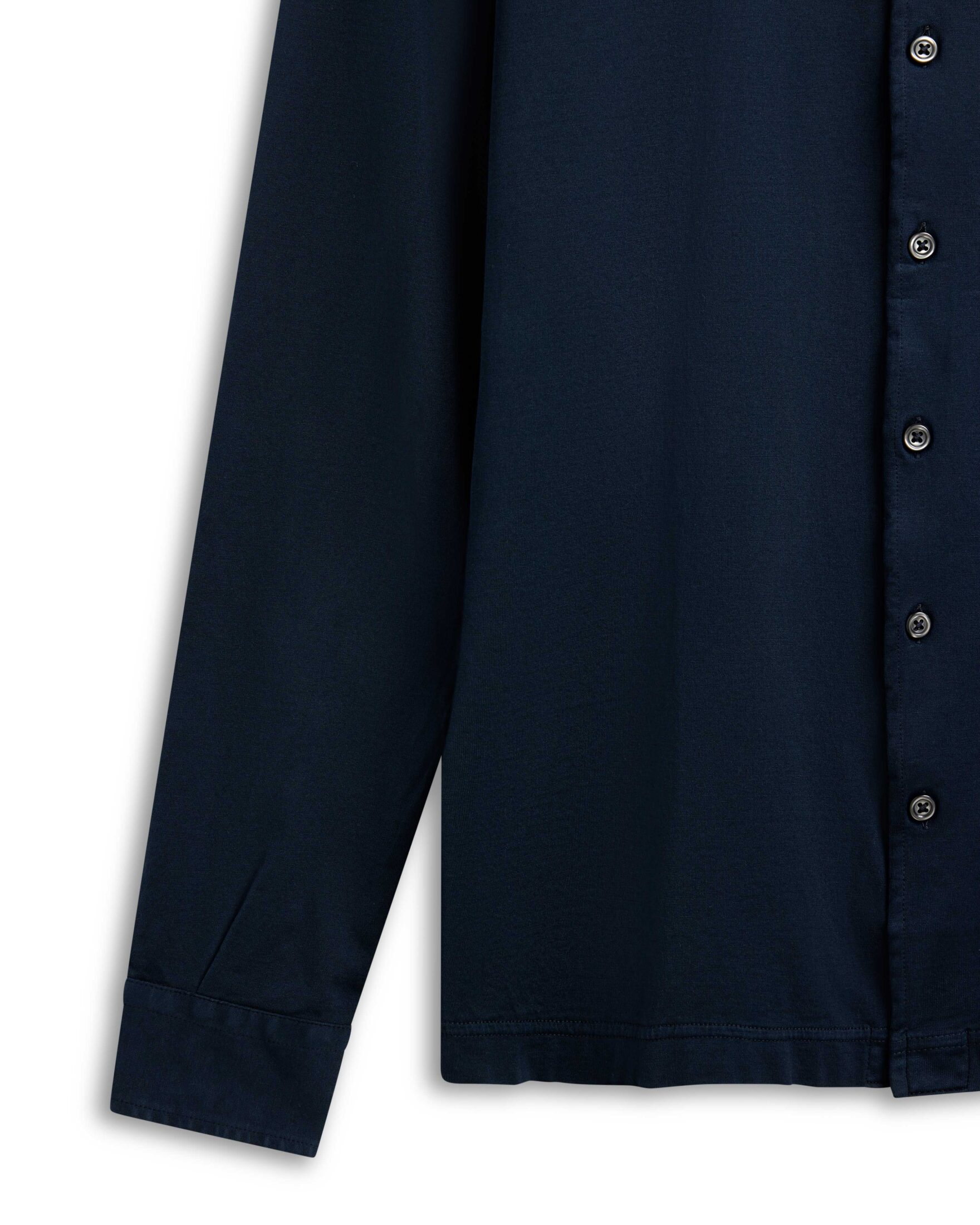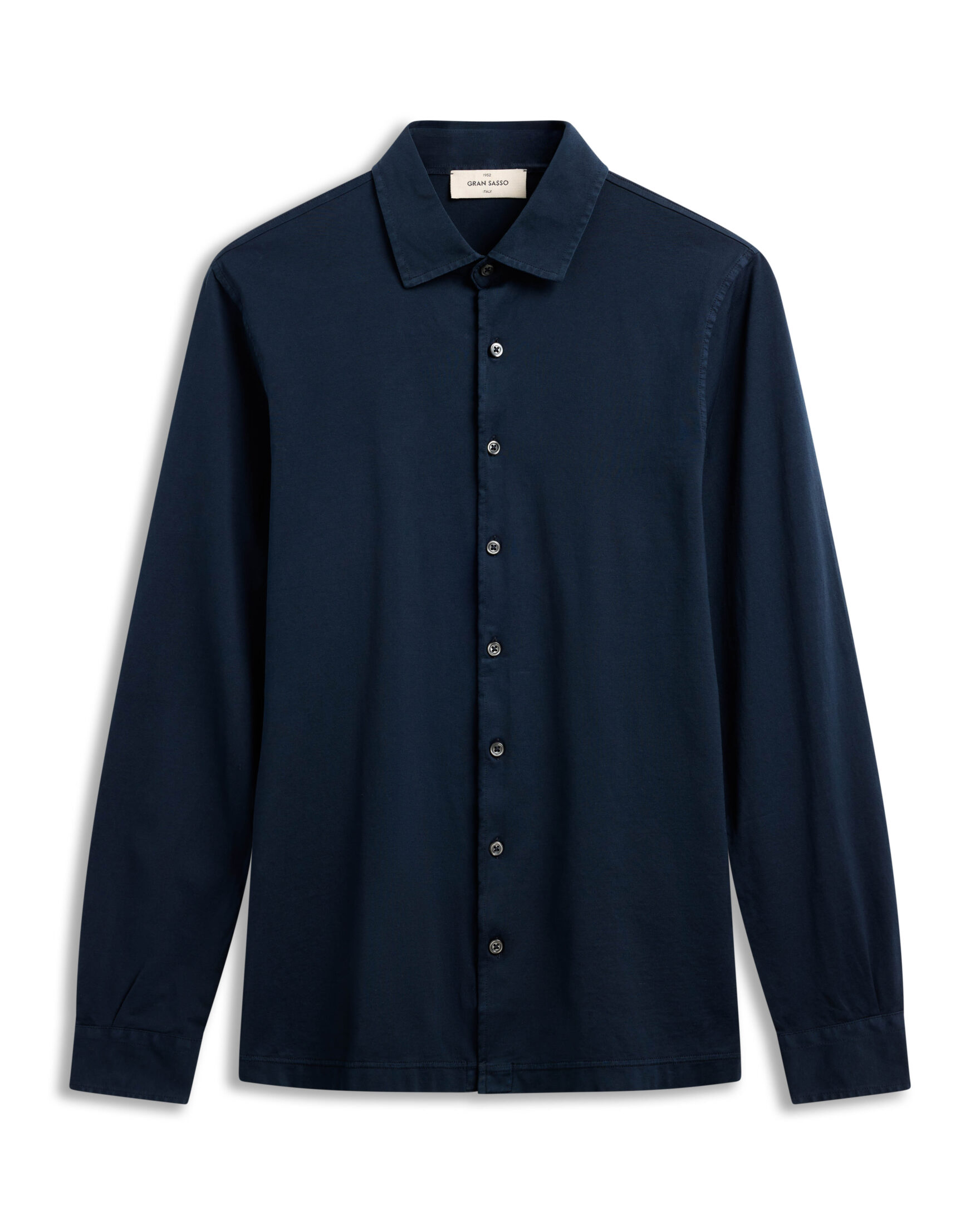 Elegant skjorte fra Gran Sasso laget i myk og komfortabel bomullsjersey. Modellen har klassisk krage, knappelukking i front og en glatt, lett elastisk kvalitet som gir en behagelig passform. En stilren skjorte som kombinerer komforten fra jersey med et sofistikert uttrykk. Perfekt både til dress og mer avslappede antrekk.