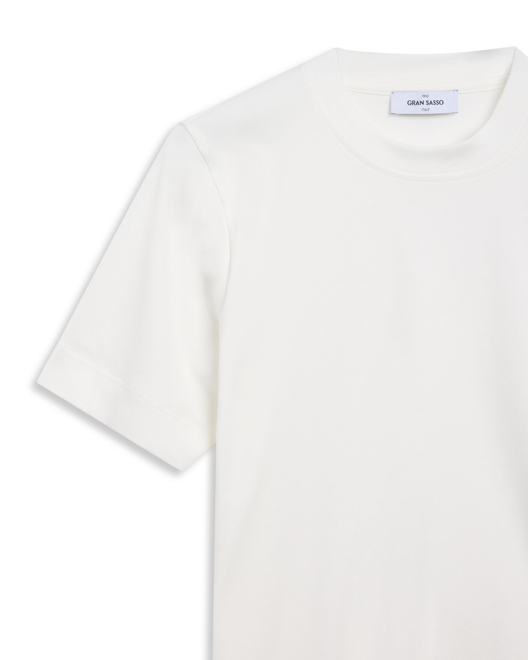Klassisk T-skjorte fra Gran Sasso i myk og behagelig bomull. Modellen har rund hals, korte ermer og en ren, minimalistisk design som gjør den enkel å kombinere. En tidløs bomulls-T-skjorte som fungerer som et solid baseplagg i enhver garderobe.
